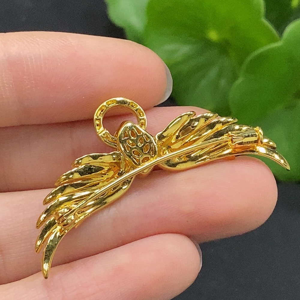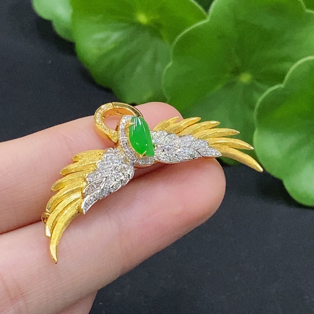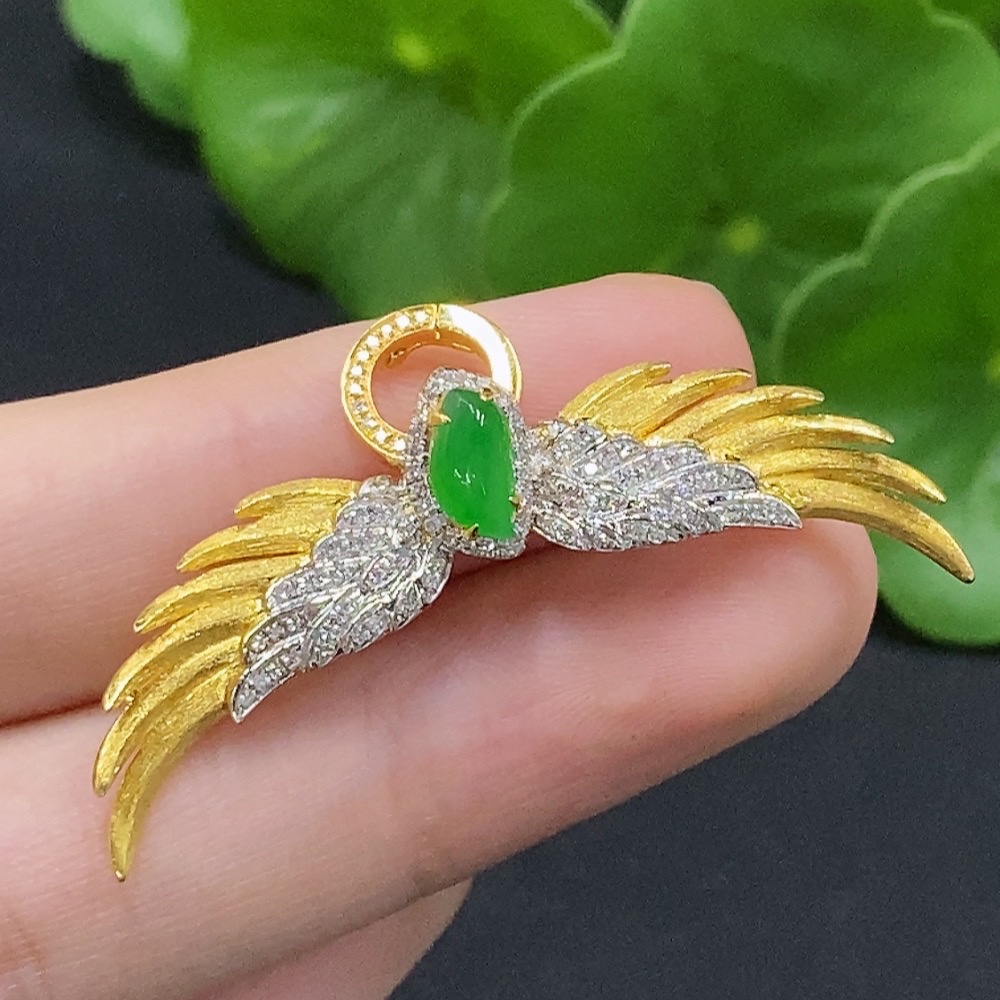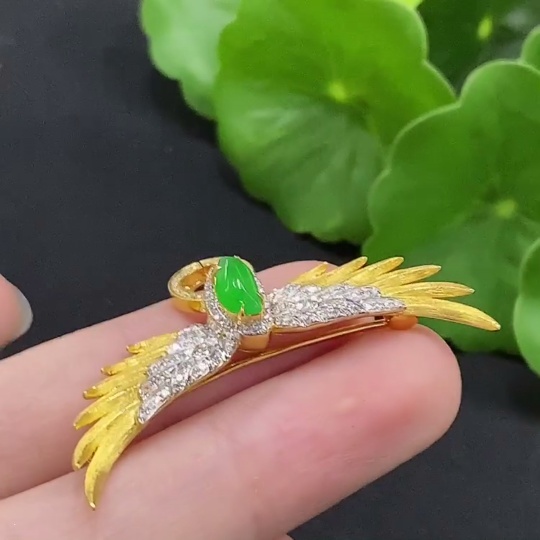Jadeite Inlaid Brooch 18K Gold with Diamond Accent Total Weight Approx. 5.6g