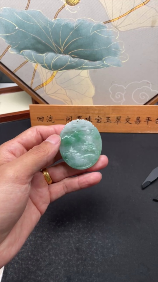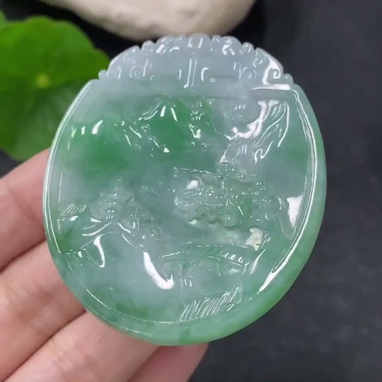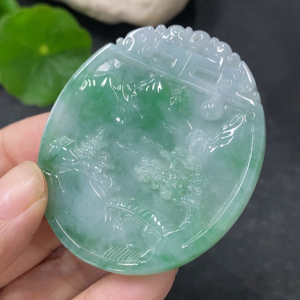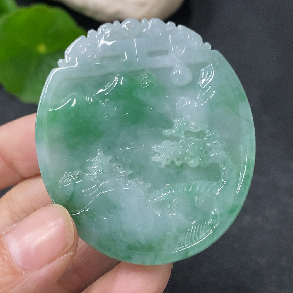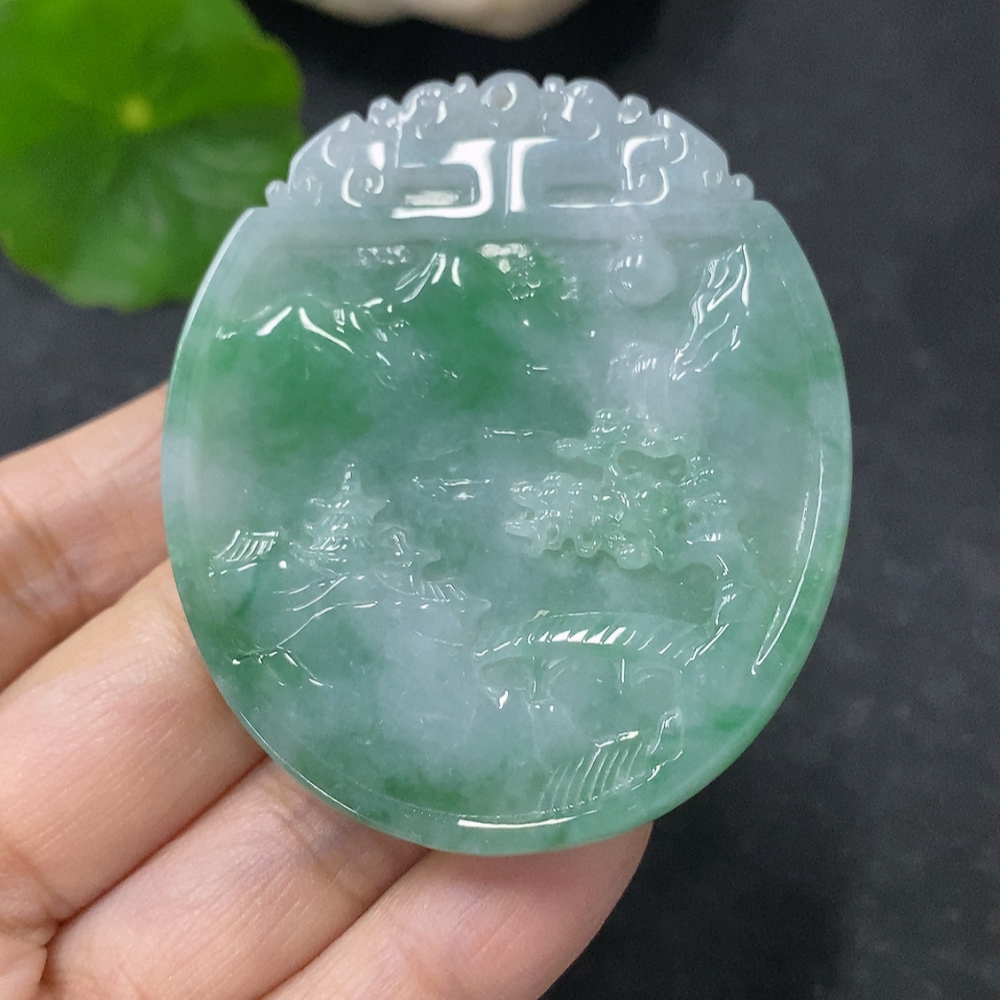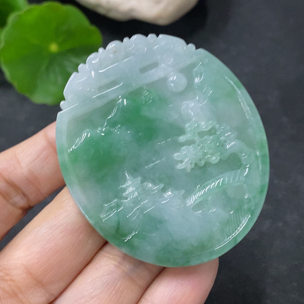 Trezaar - Jadeite landscape pendant, total weight about 32.27g