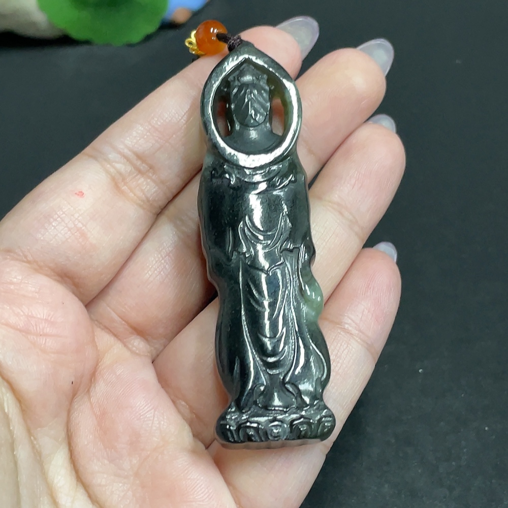 Hetian Jade Pendant Guanyin Total Weight [with rope] 31.2g