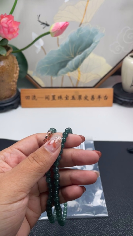 Jadeite Bead Necklace Approx. 6mm Total Weight Approx. 42.12g Non-Gold Inlaid