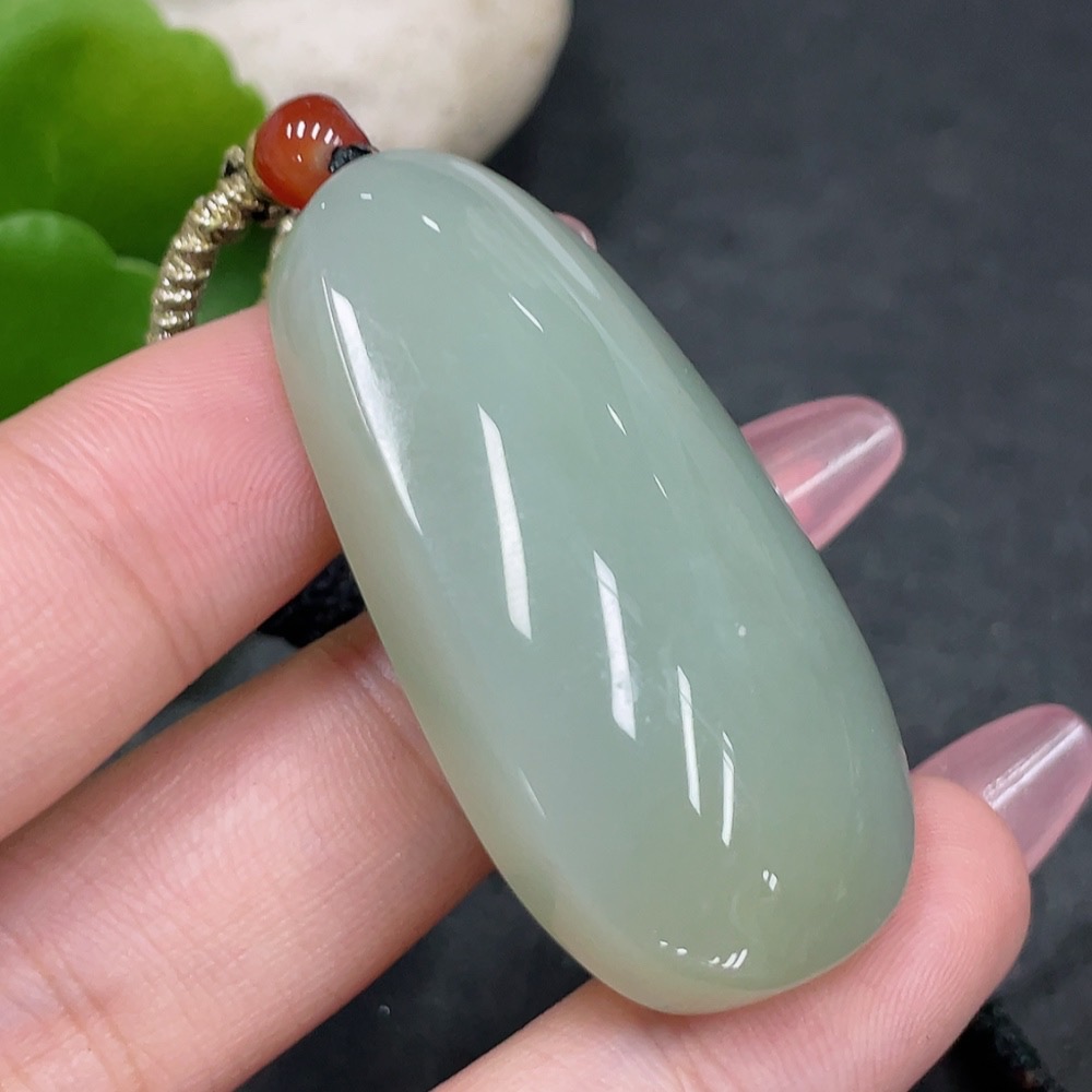 Hetian Jade Pendant, Plain Pendant, Total Weight (including rope): 23.5g
