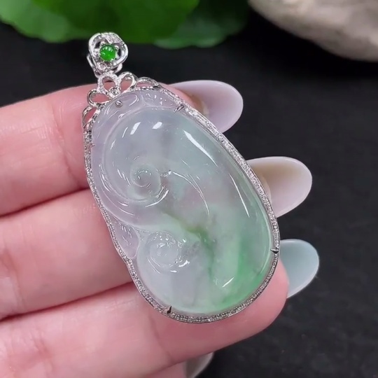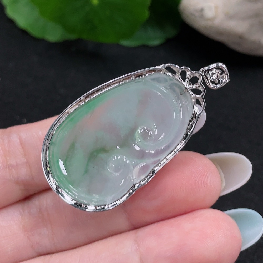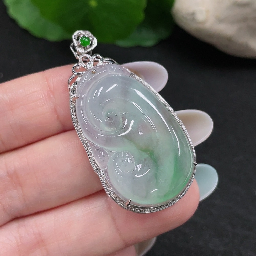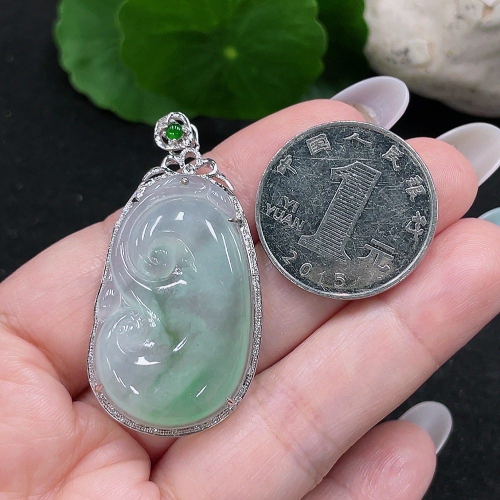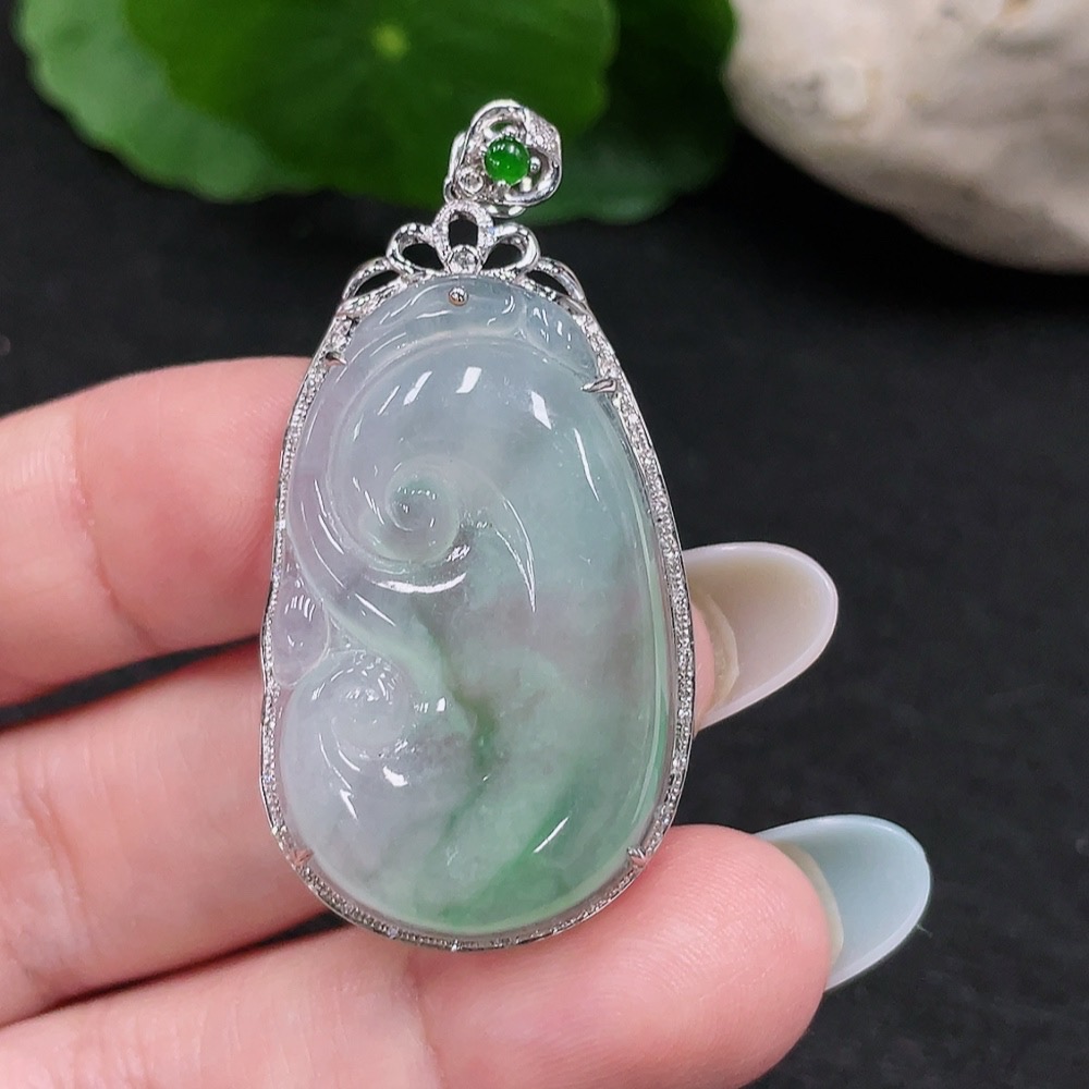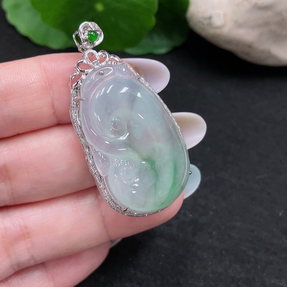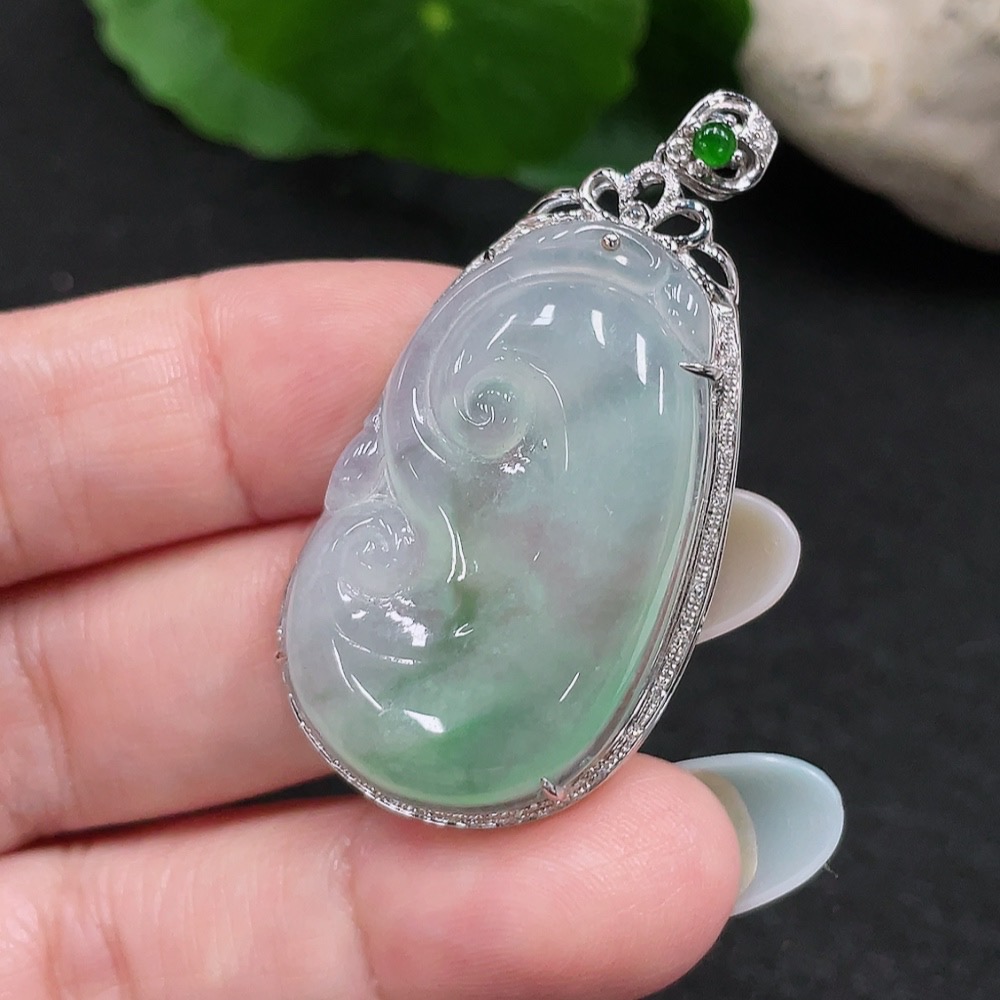 Jadeite Ruyi Pendant 18K Gold Total Weight Approx. 8.3g