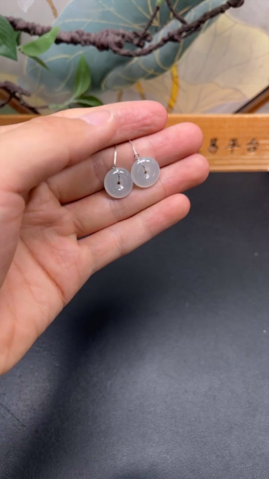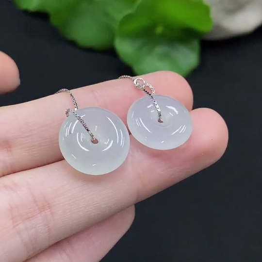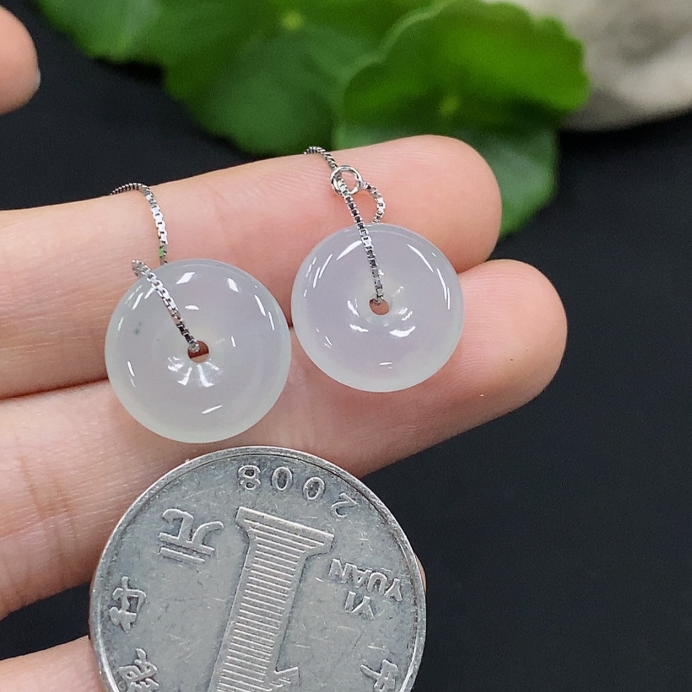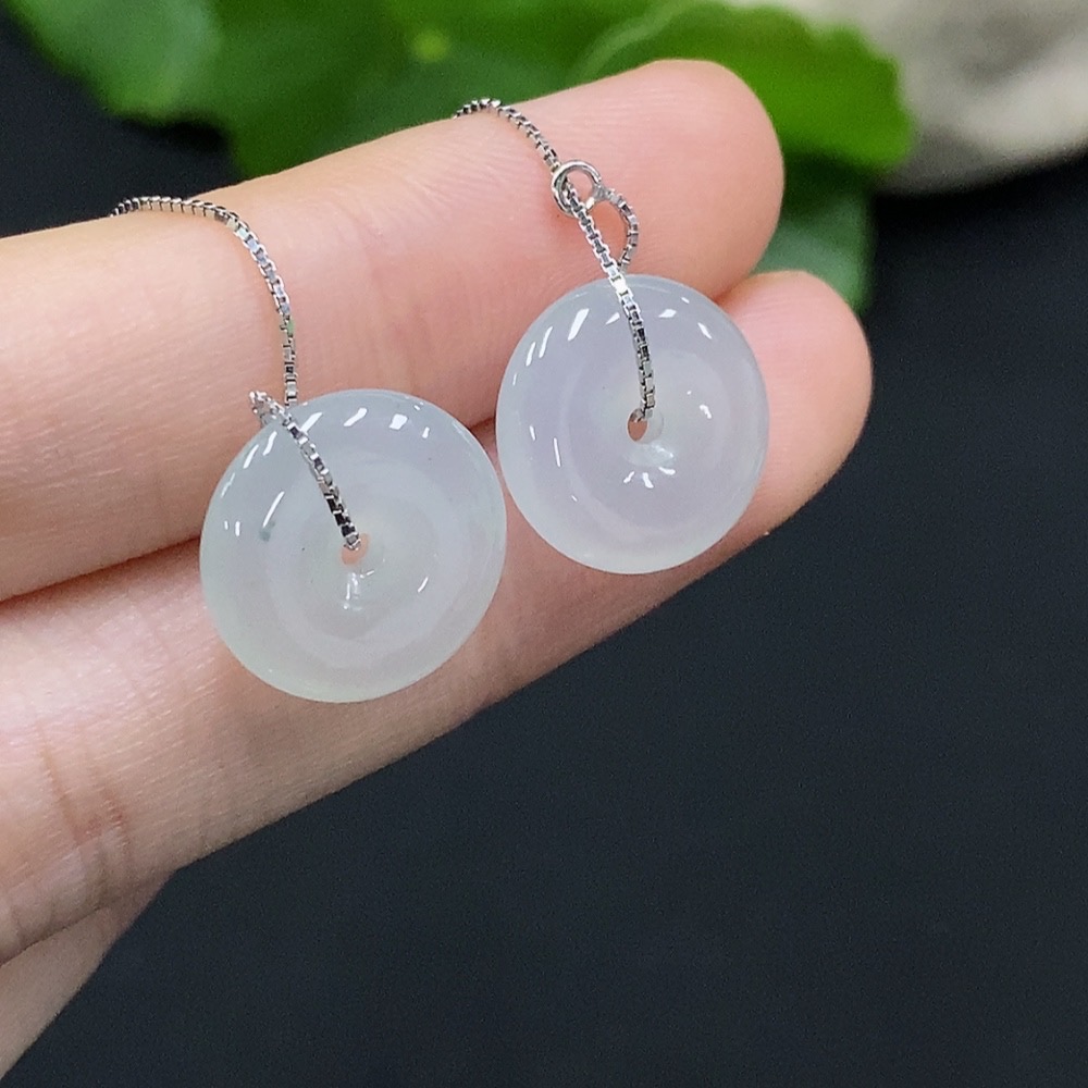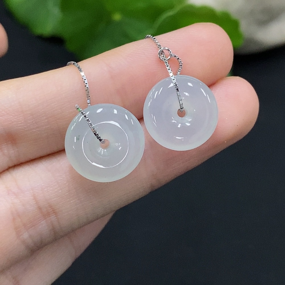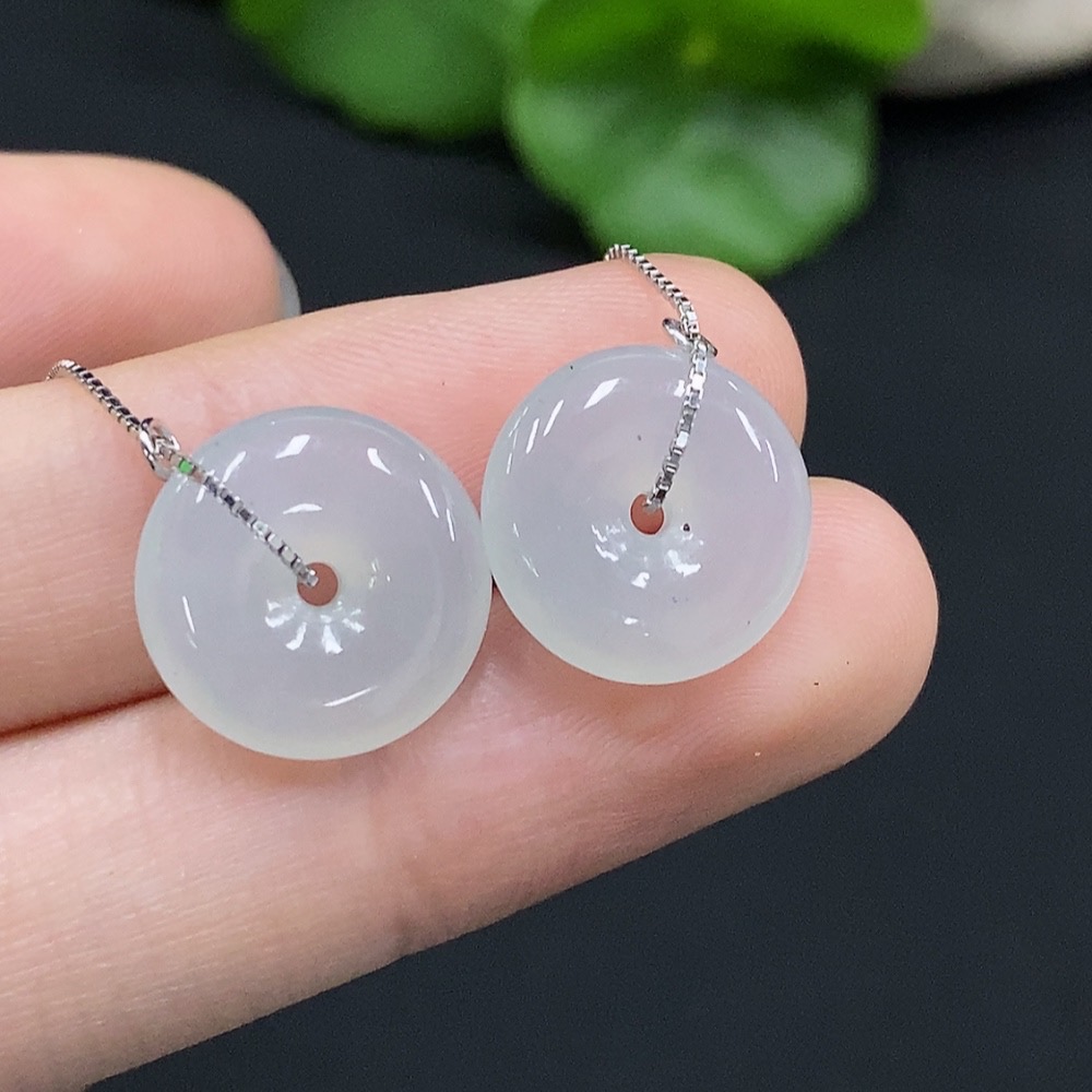 Jadeite Safety Button Earrings Non-Gold Inlaid Total Weight Approx. 3.44g Including Ear Stoppers