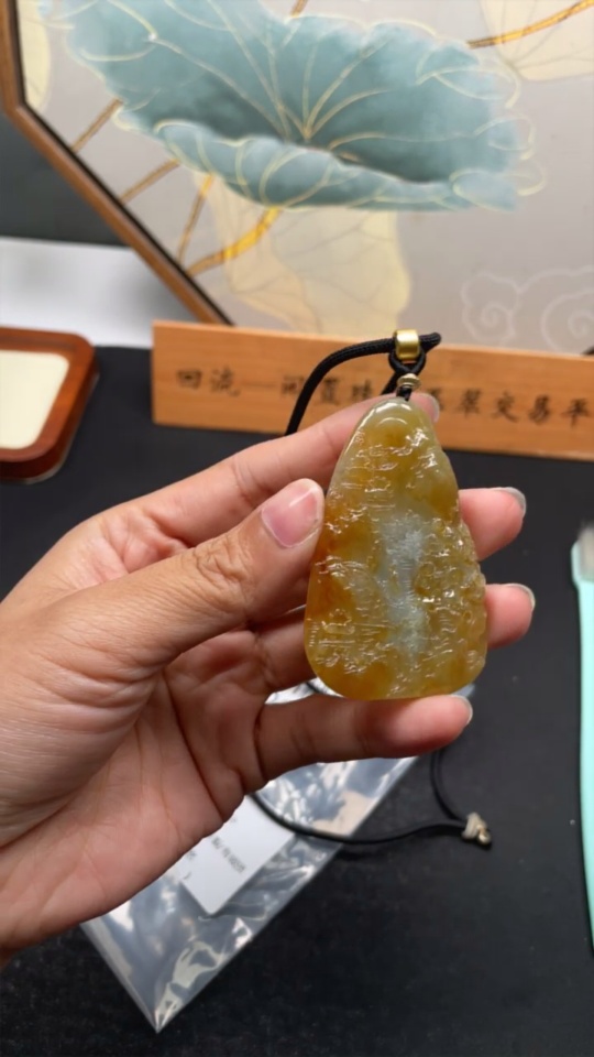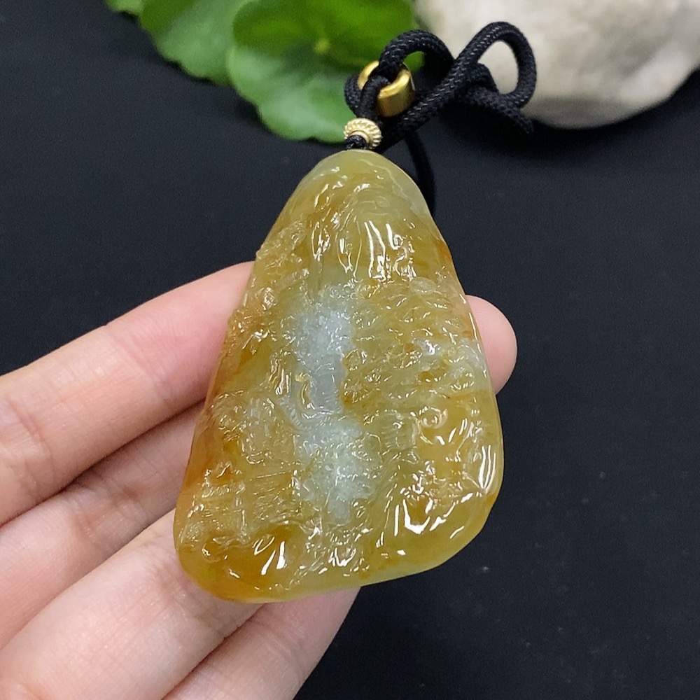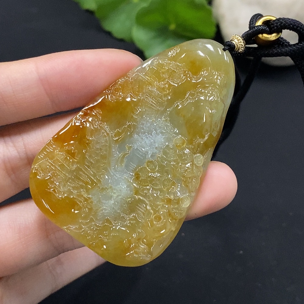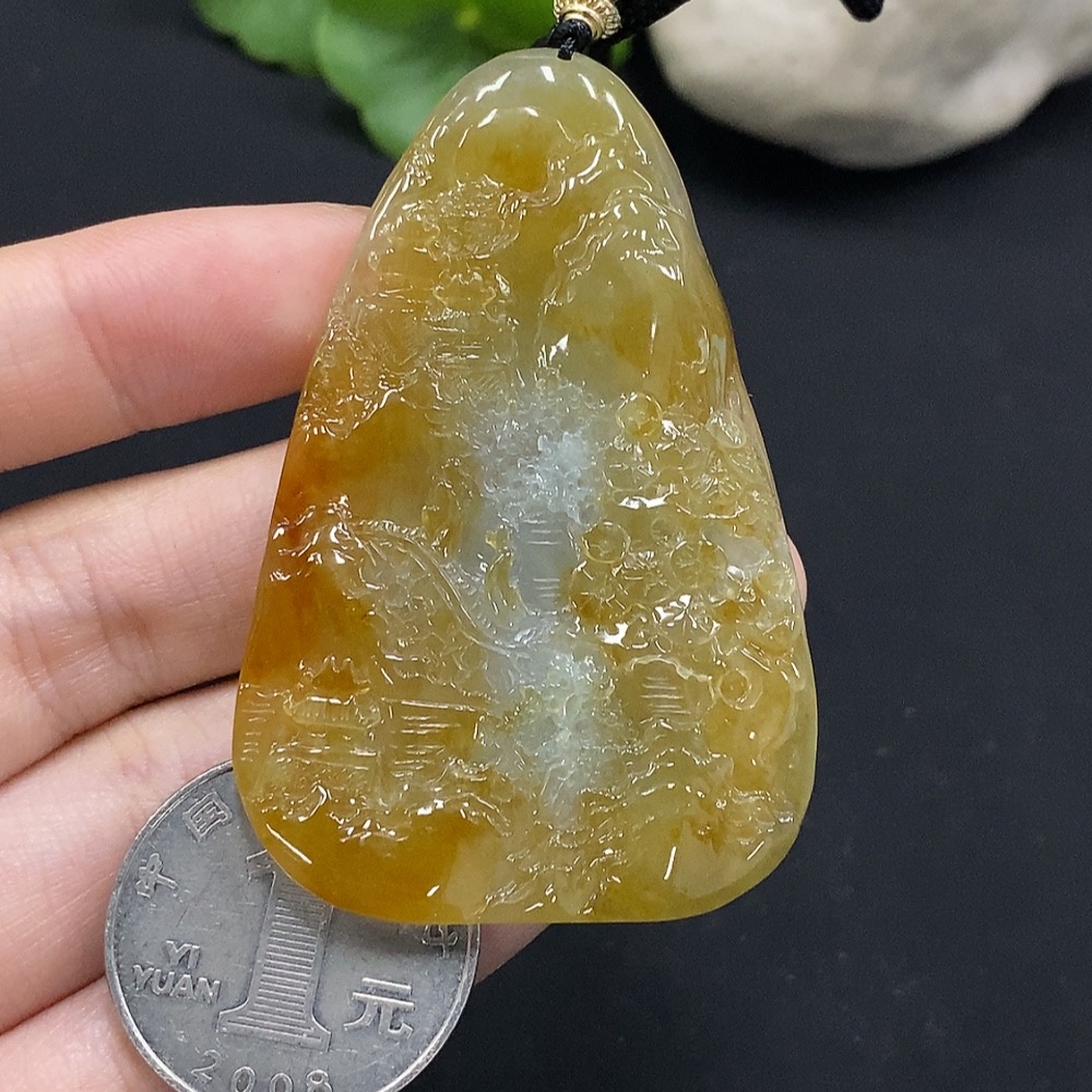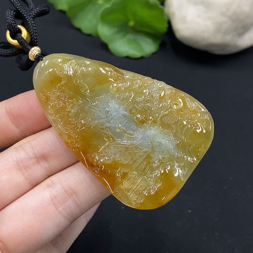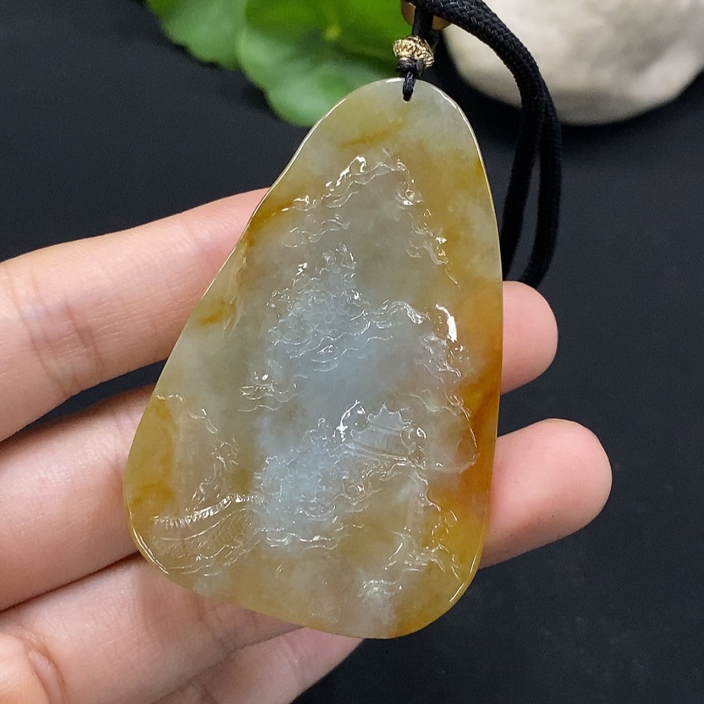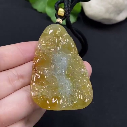 Jadeite Landscape Pendant Total Weight Approx. 29.34g Yellow Color Origin Undetermined