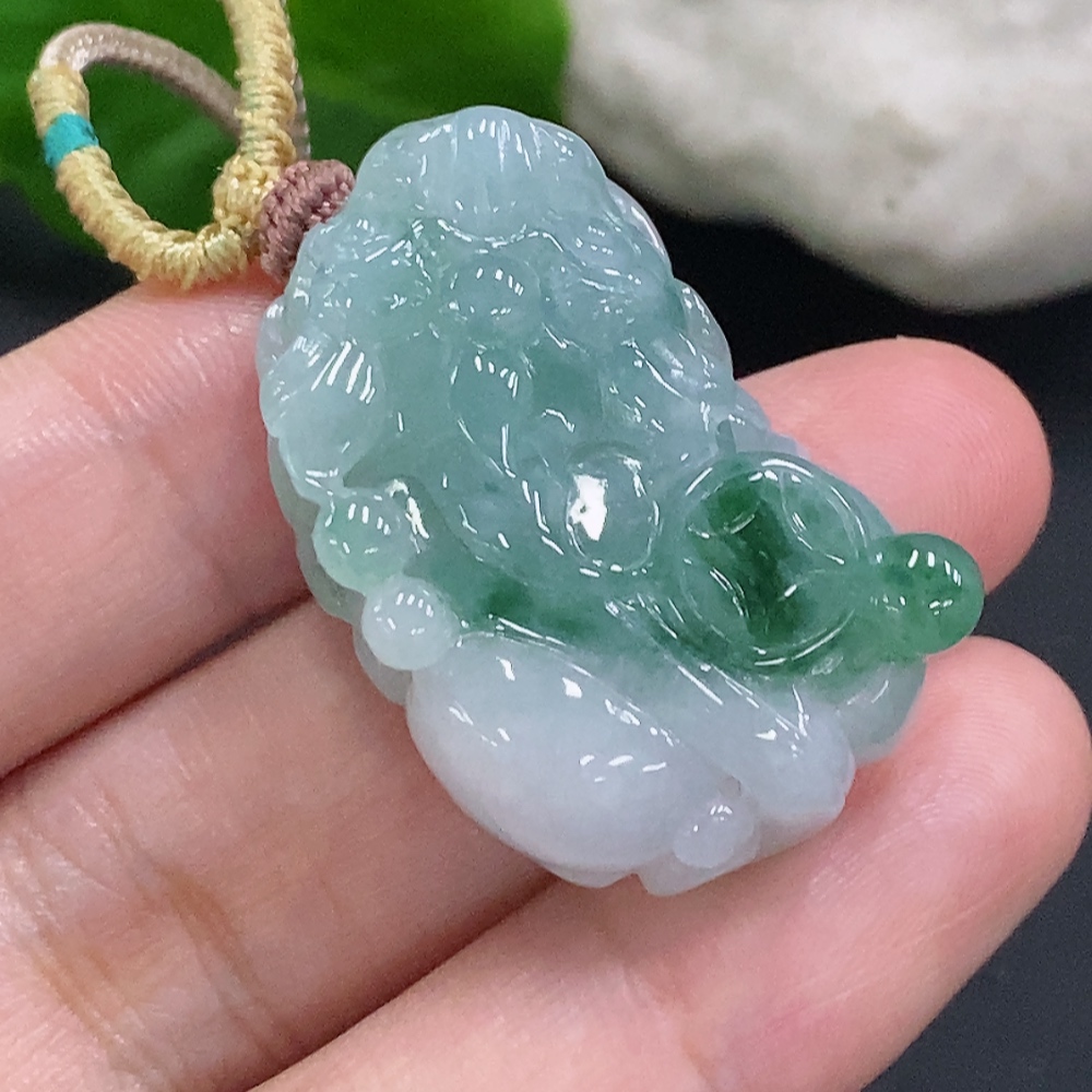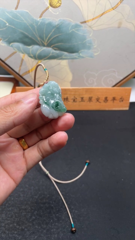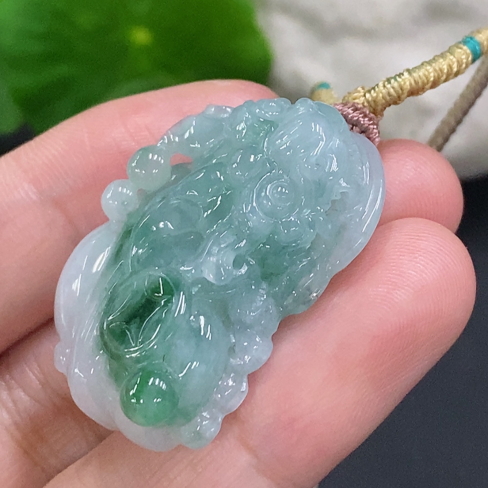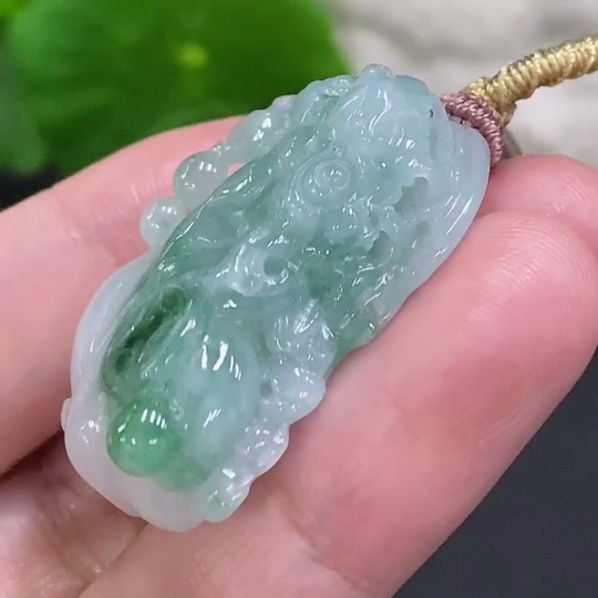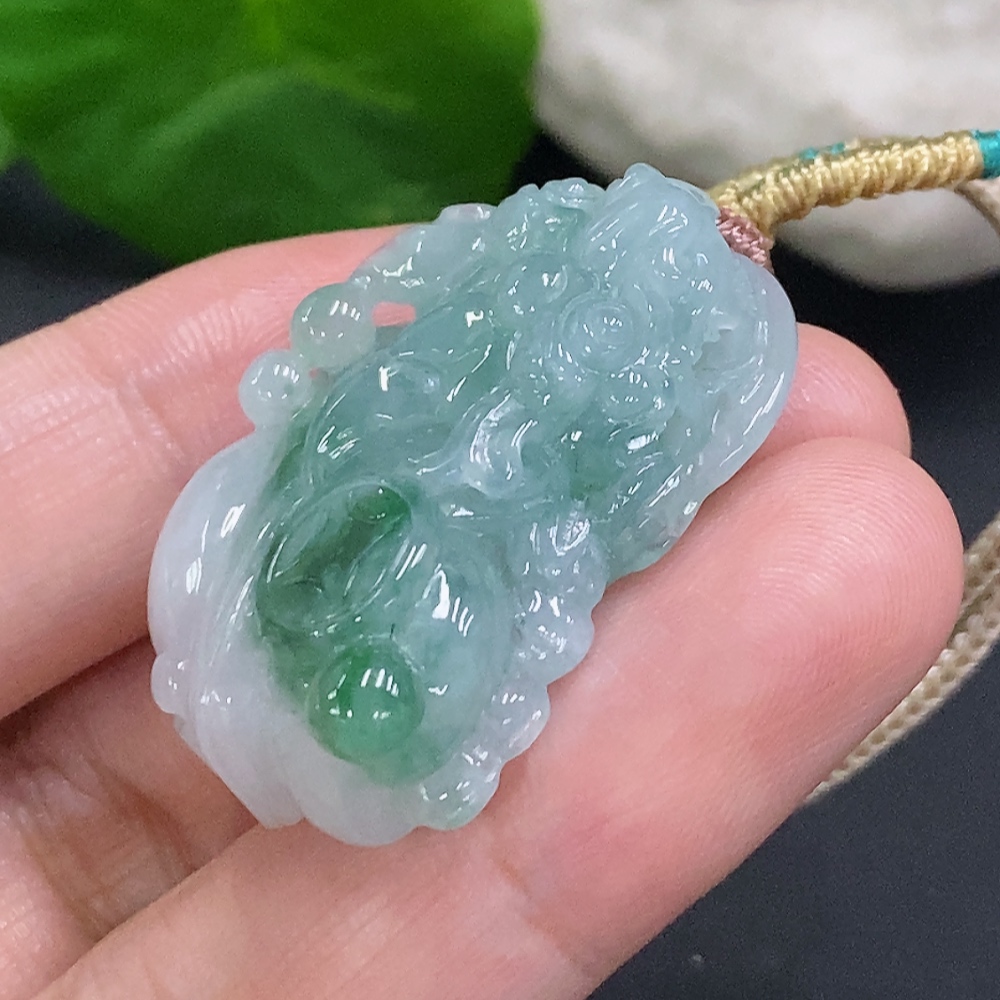 Jadeite Pixiu Pendant Total Weight Including Rope Approximately 17.7g