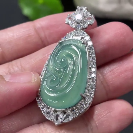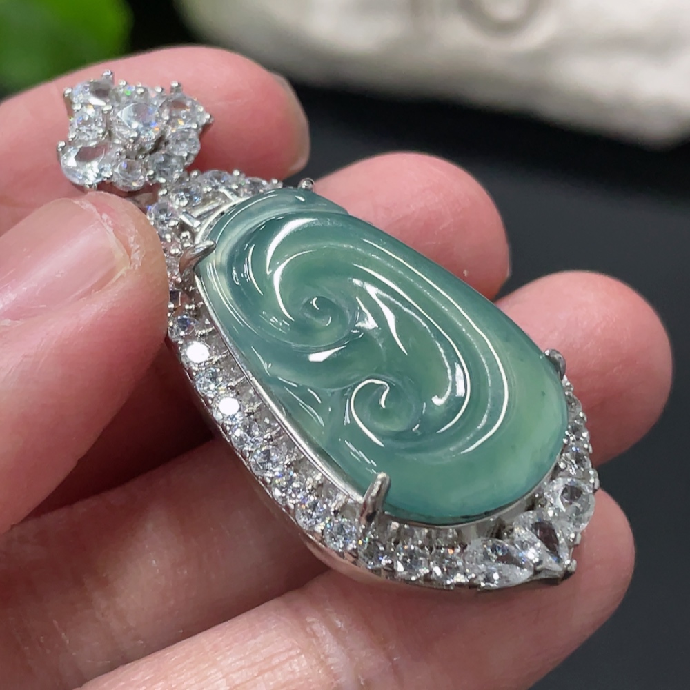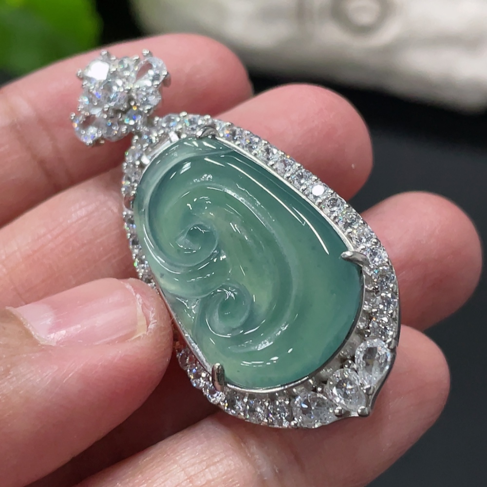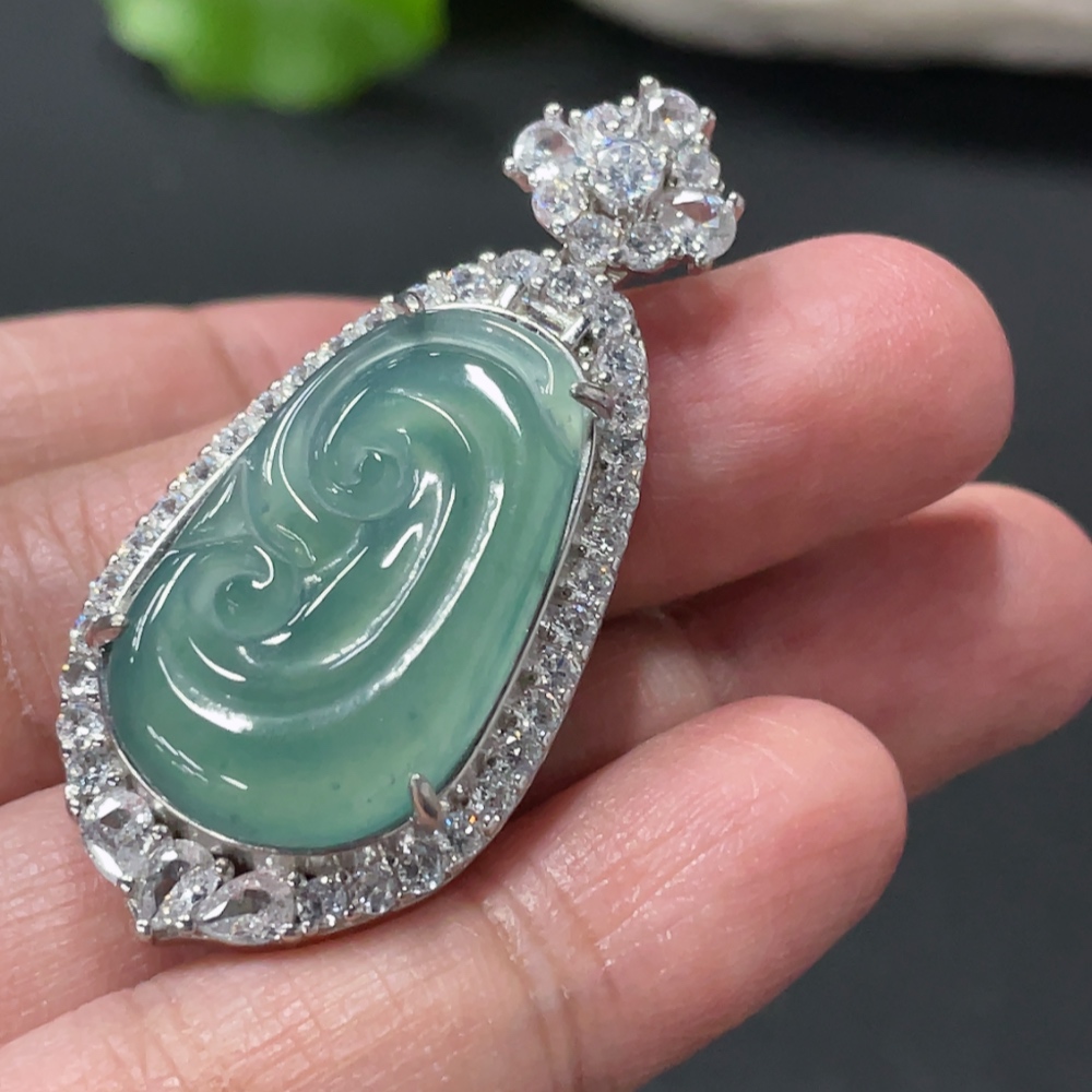 Jadeite Ruyi Inlaid Pendant Non-Gold Inlaid Total Weight About 10.1g