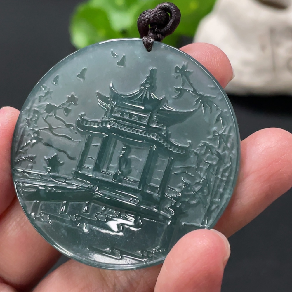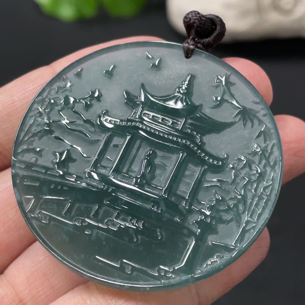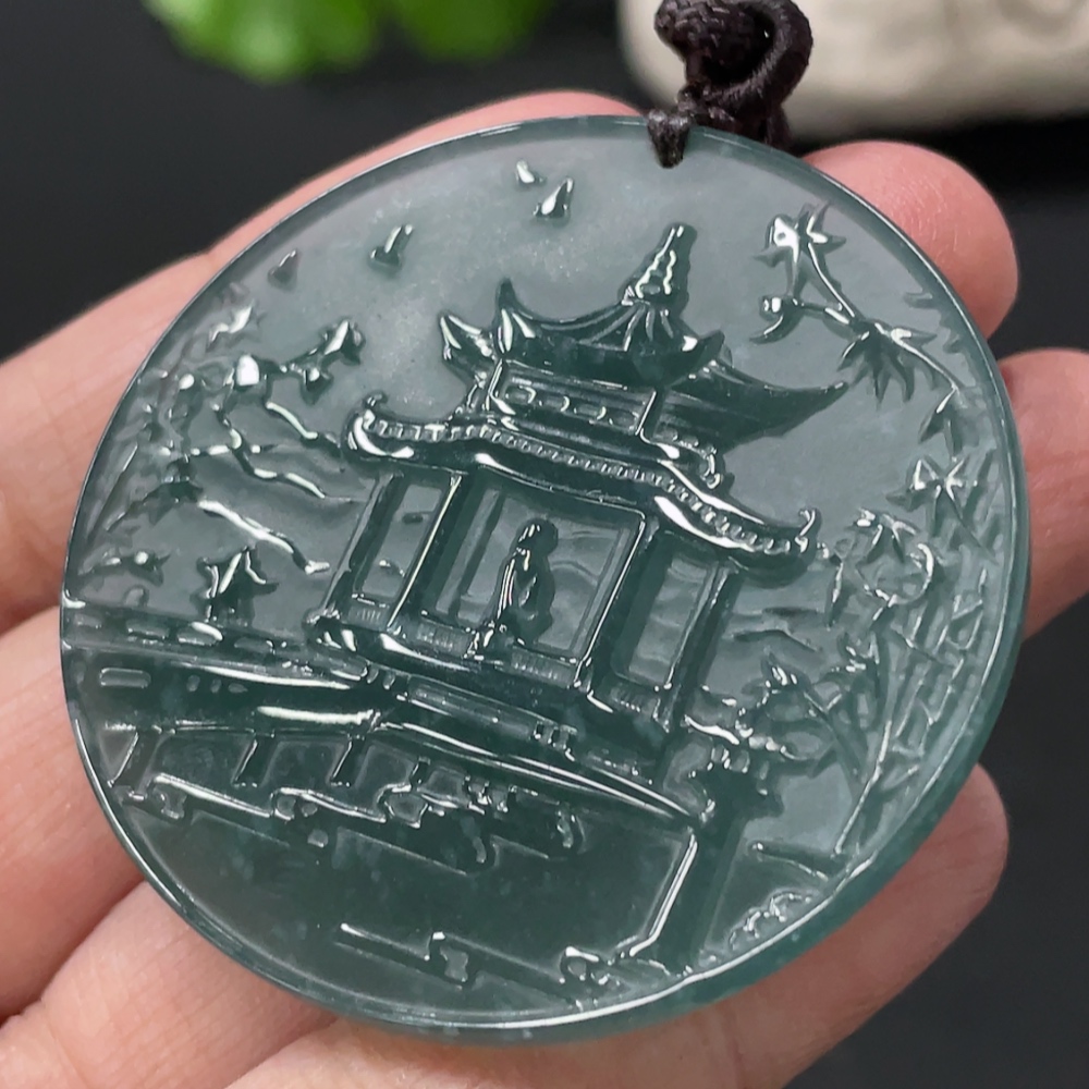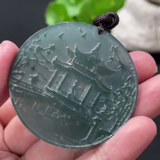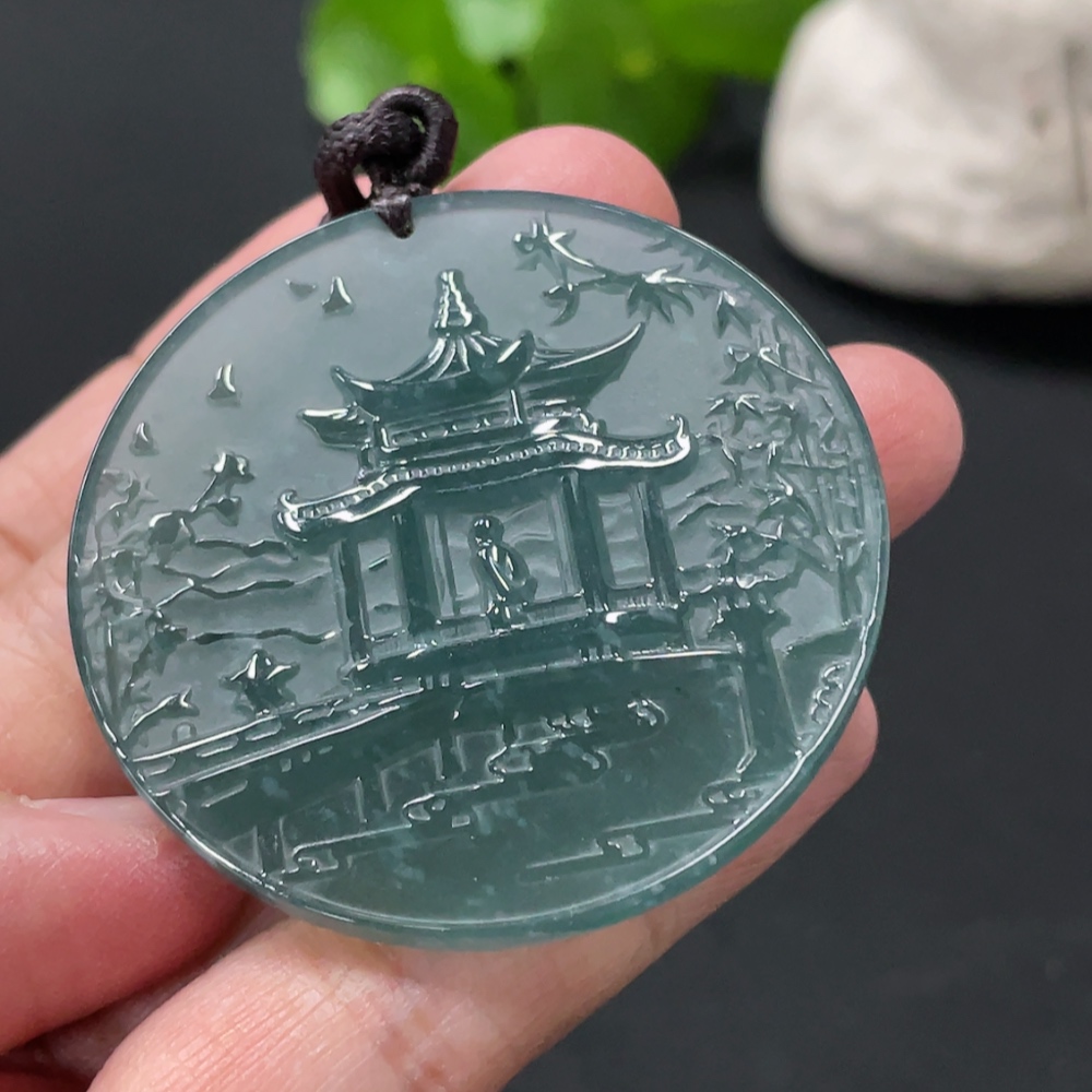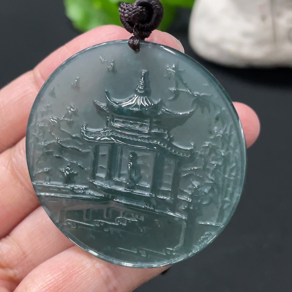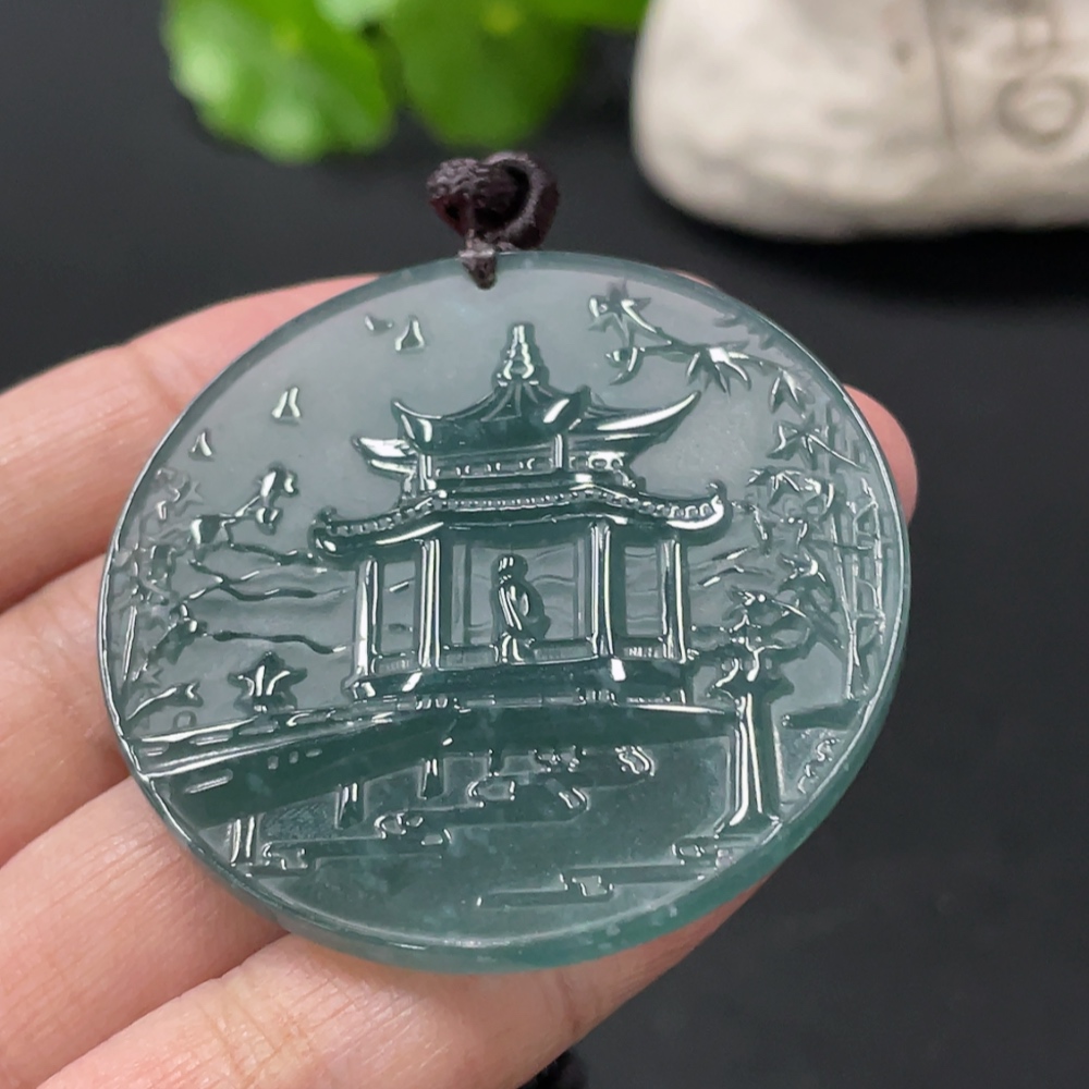 Jadeite Landscape Pendant Total weight approx. 20.71g (including rope weight)