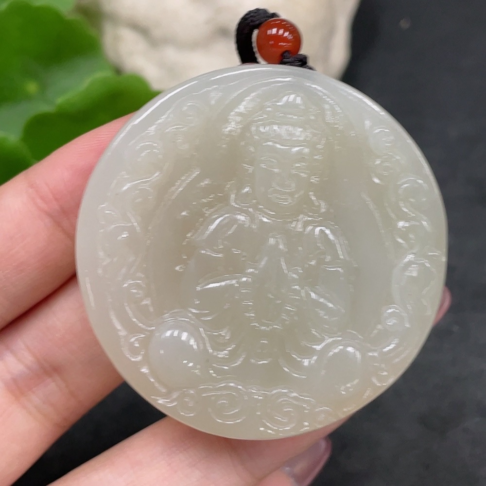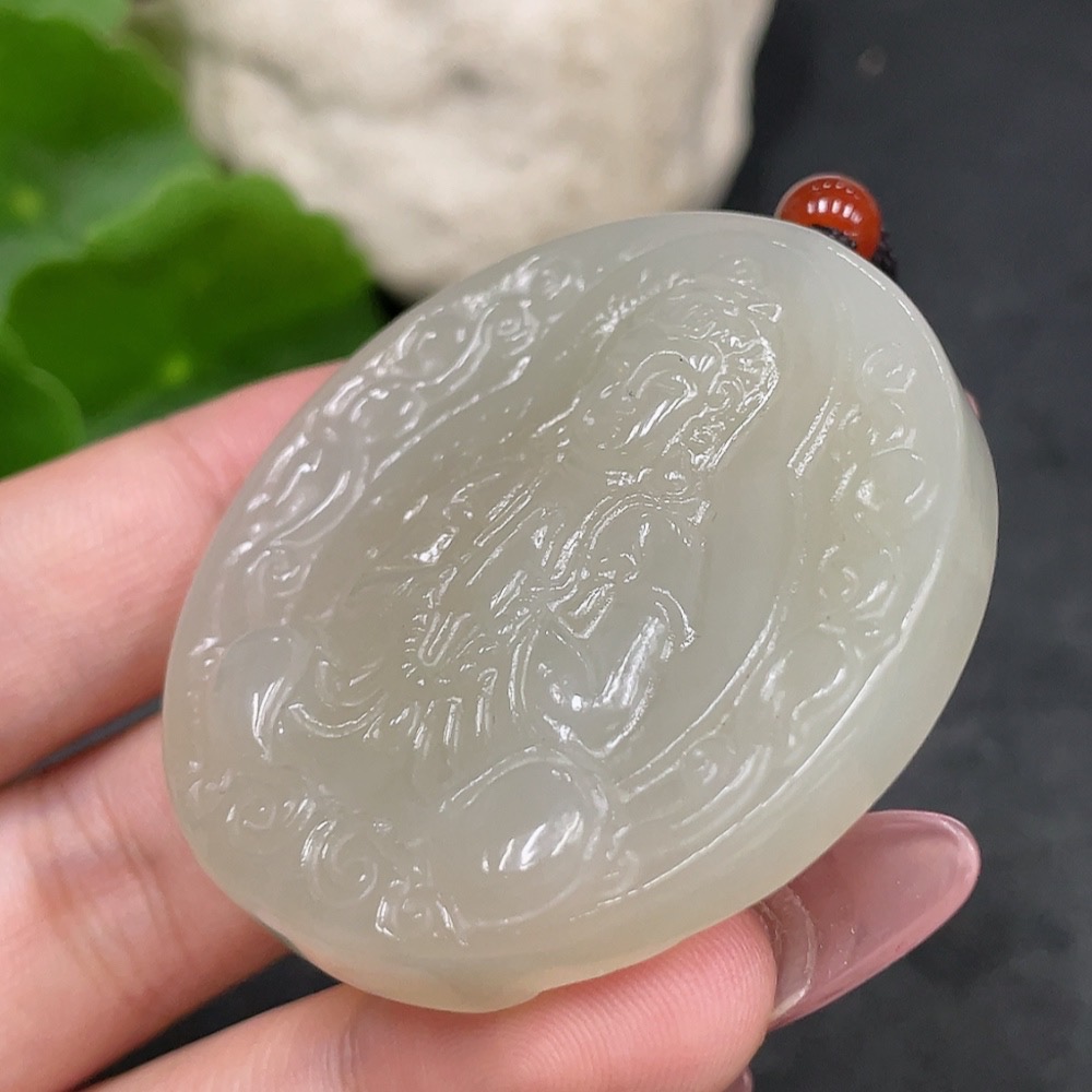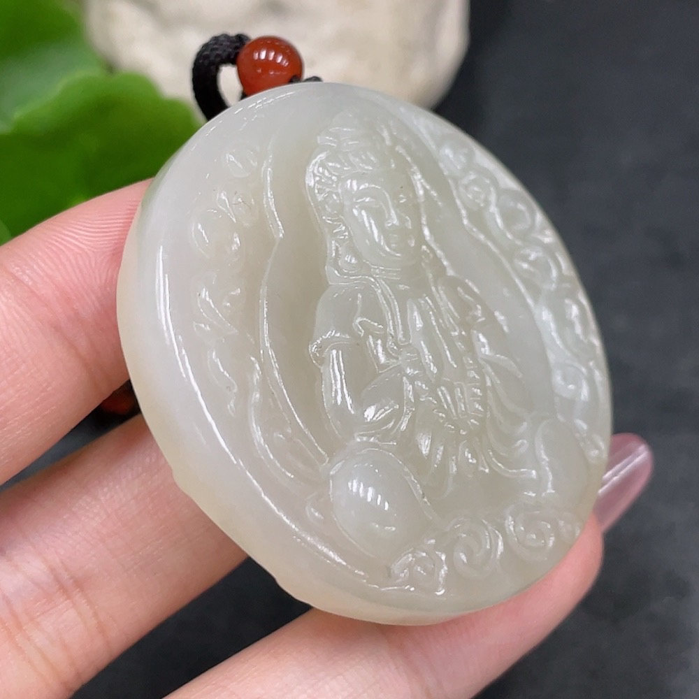 Hetian Jade Pendant Guanyin Total Weight (with rope) 41.3g