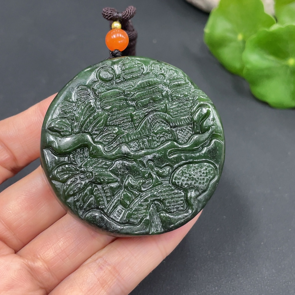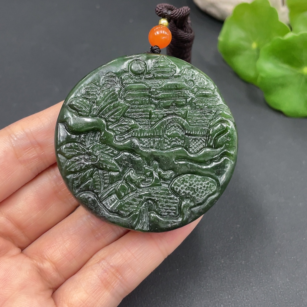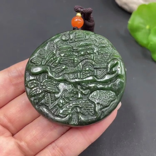 Hetian Jade Pendant Landscape Plaque with Cord, Total Weight 94.96g