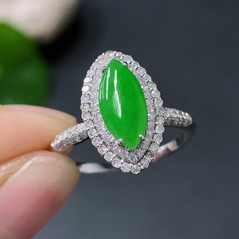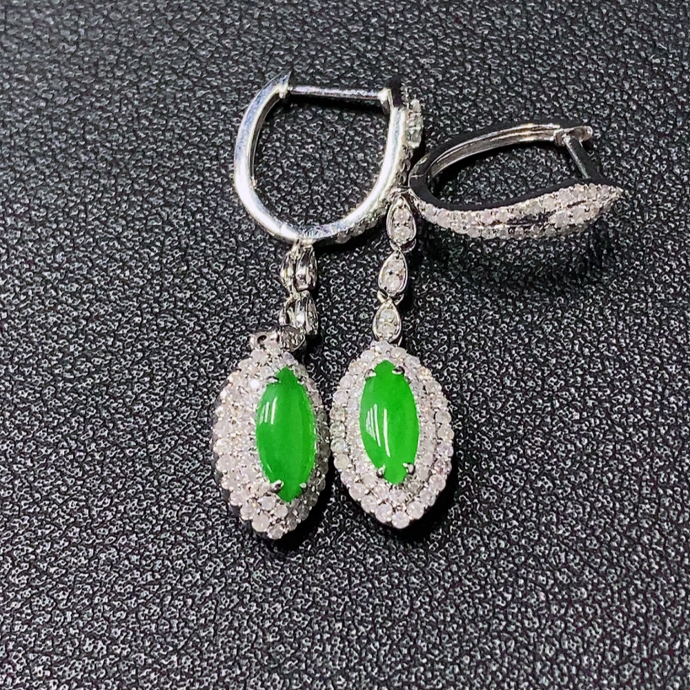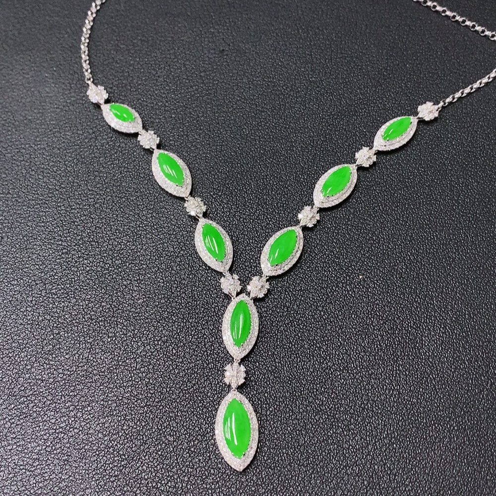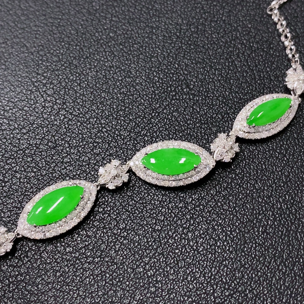 Jadeite Inlaid Jewelry Set (including necklace, bracelet, earrings, ring) 18k with diamond accents, total weight approx. 23.5g (full set)