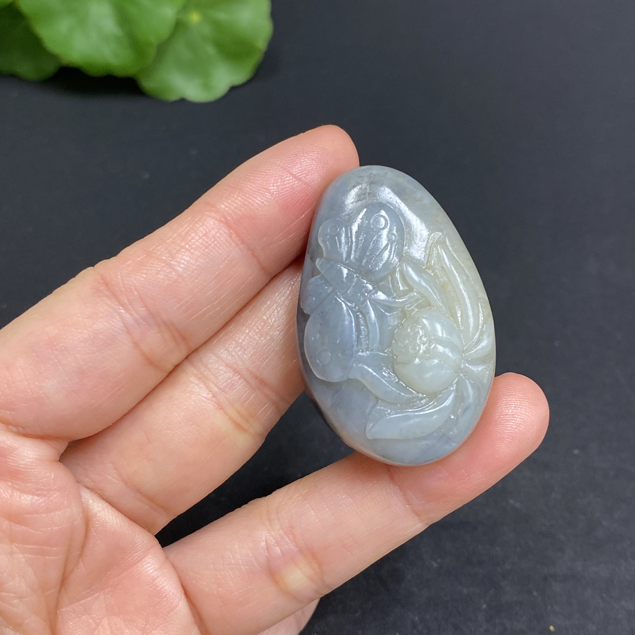 Hetian Jade Pendant Lotus Total Weight Approx. 23.9g