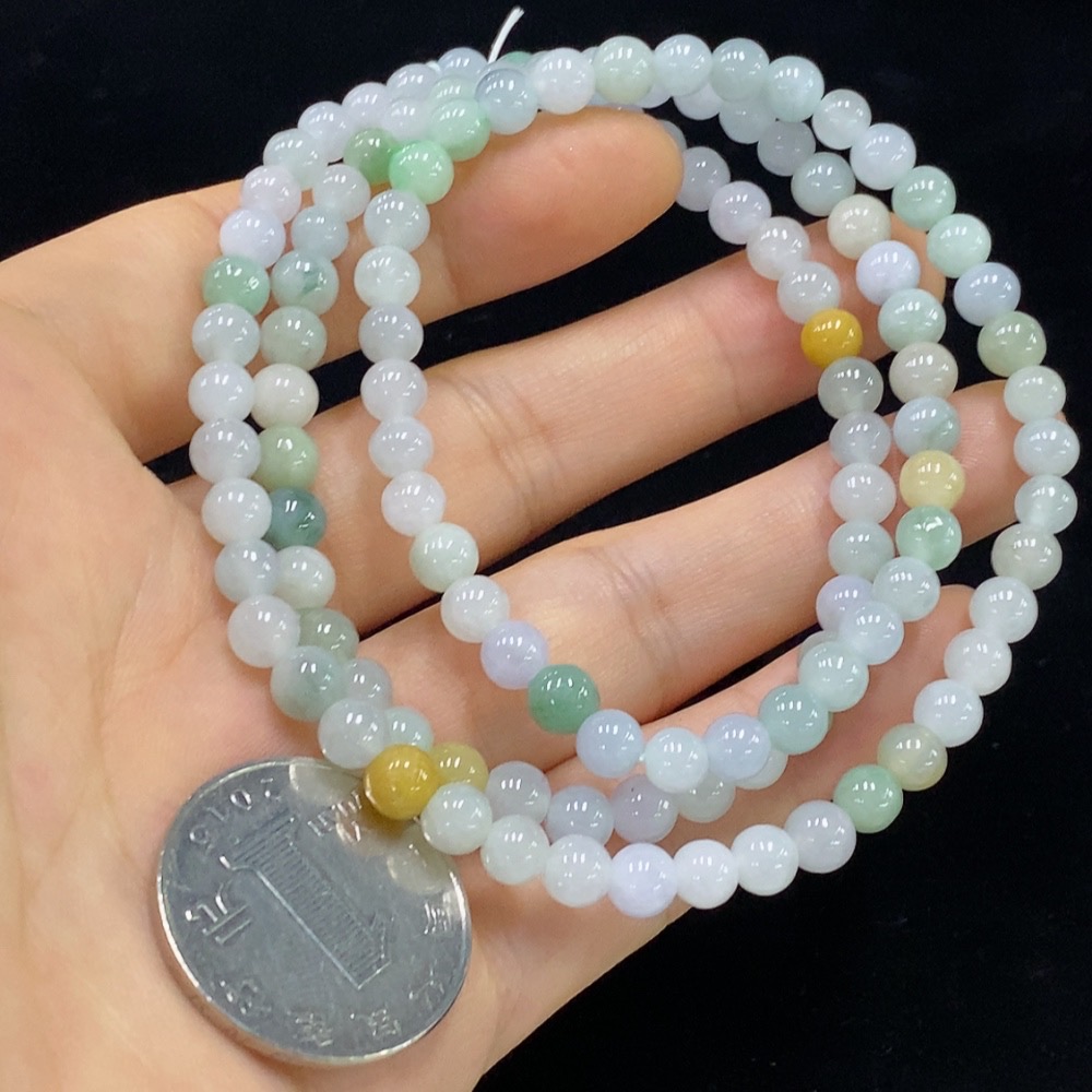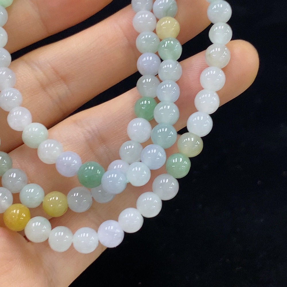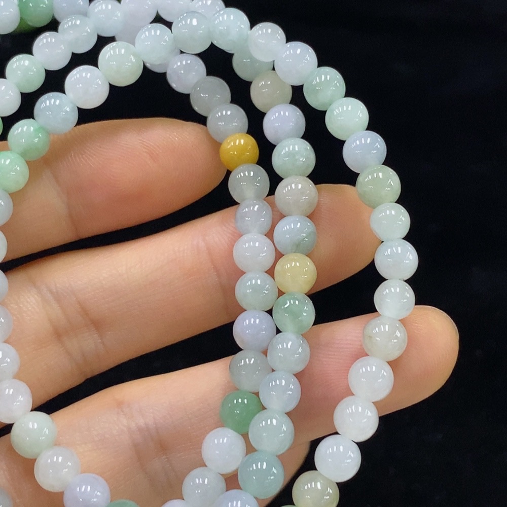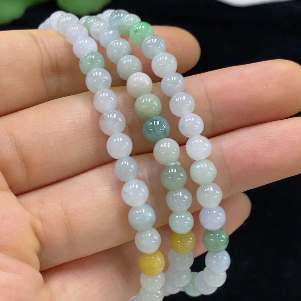 Jadeite Bead Necklace, Approx. 5.5mm, Total Weight Approx. 31.79g, Color Origin of Yellow Part Undetermined
