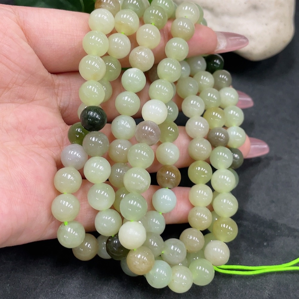 Hetian Jade Bead Necklace, Approx. 7.8mm, Total Weight Approx. 83g