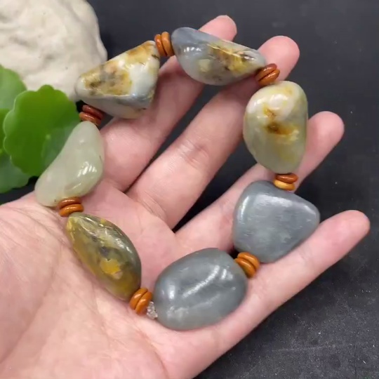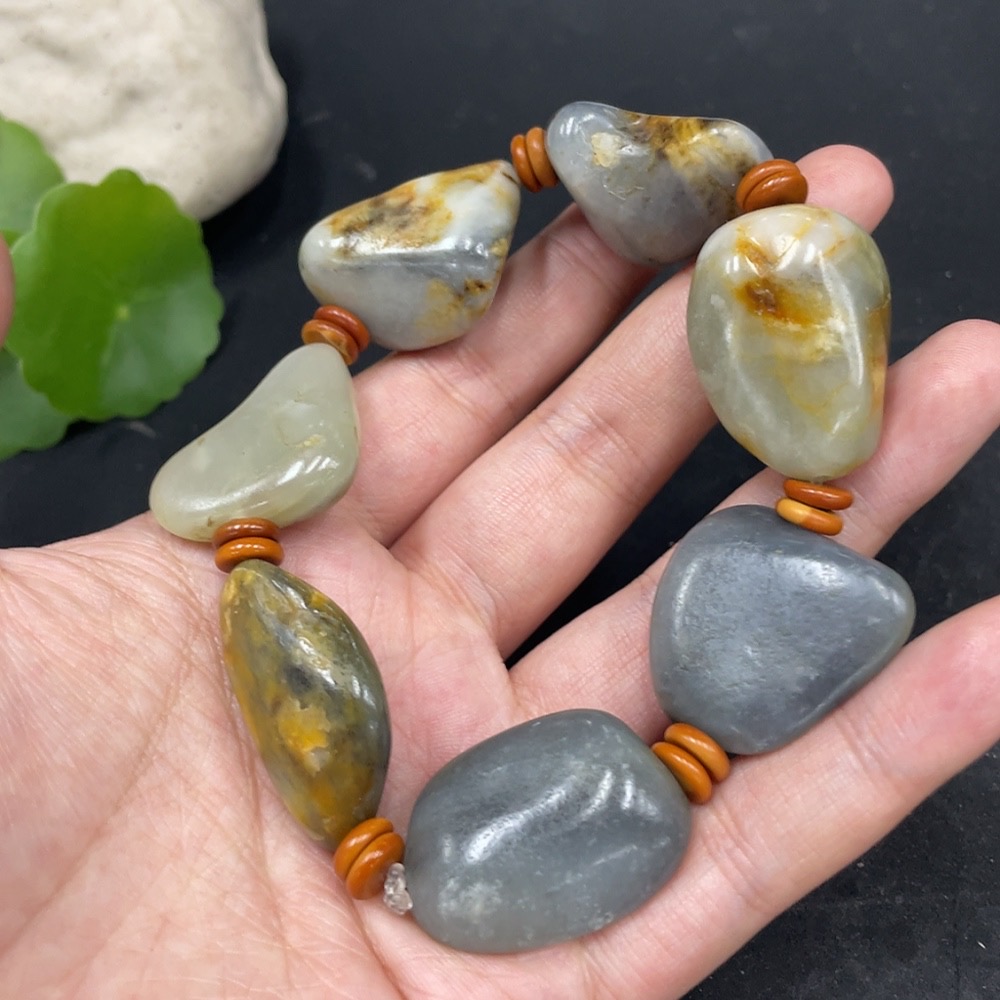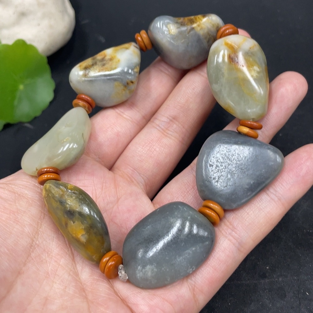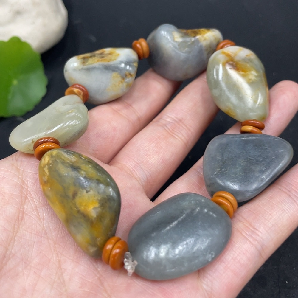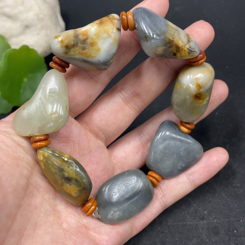 Hetian Jade Bracelet with Non-Hetian Jade Beads, Undetermined Skin Color Origin, Total Weight Approx. 85.6g