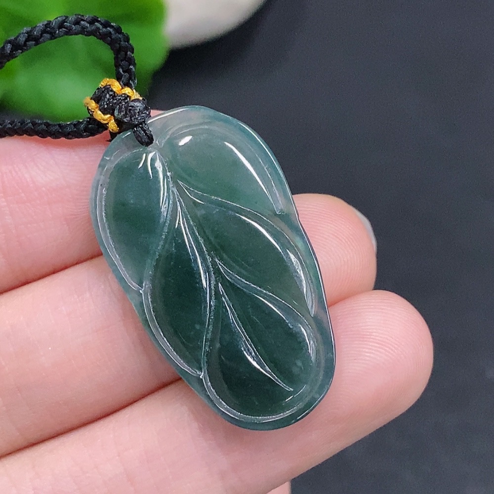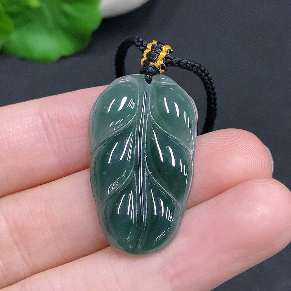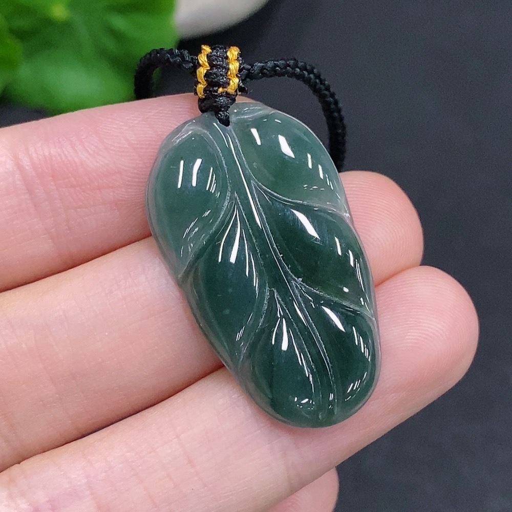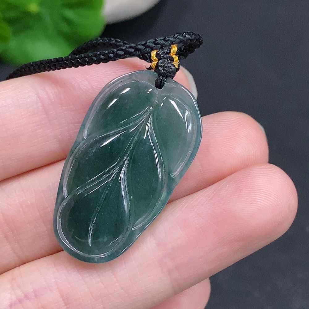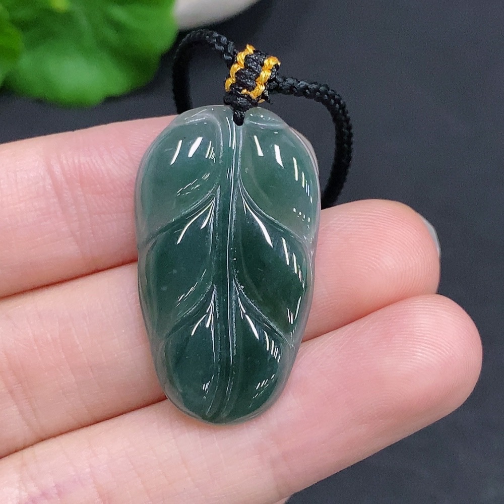 Jadeite Leaf Pendant Total Weight Approx. 5g (Incl. Rope)