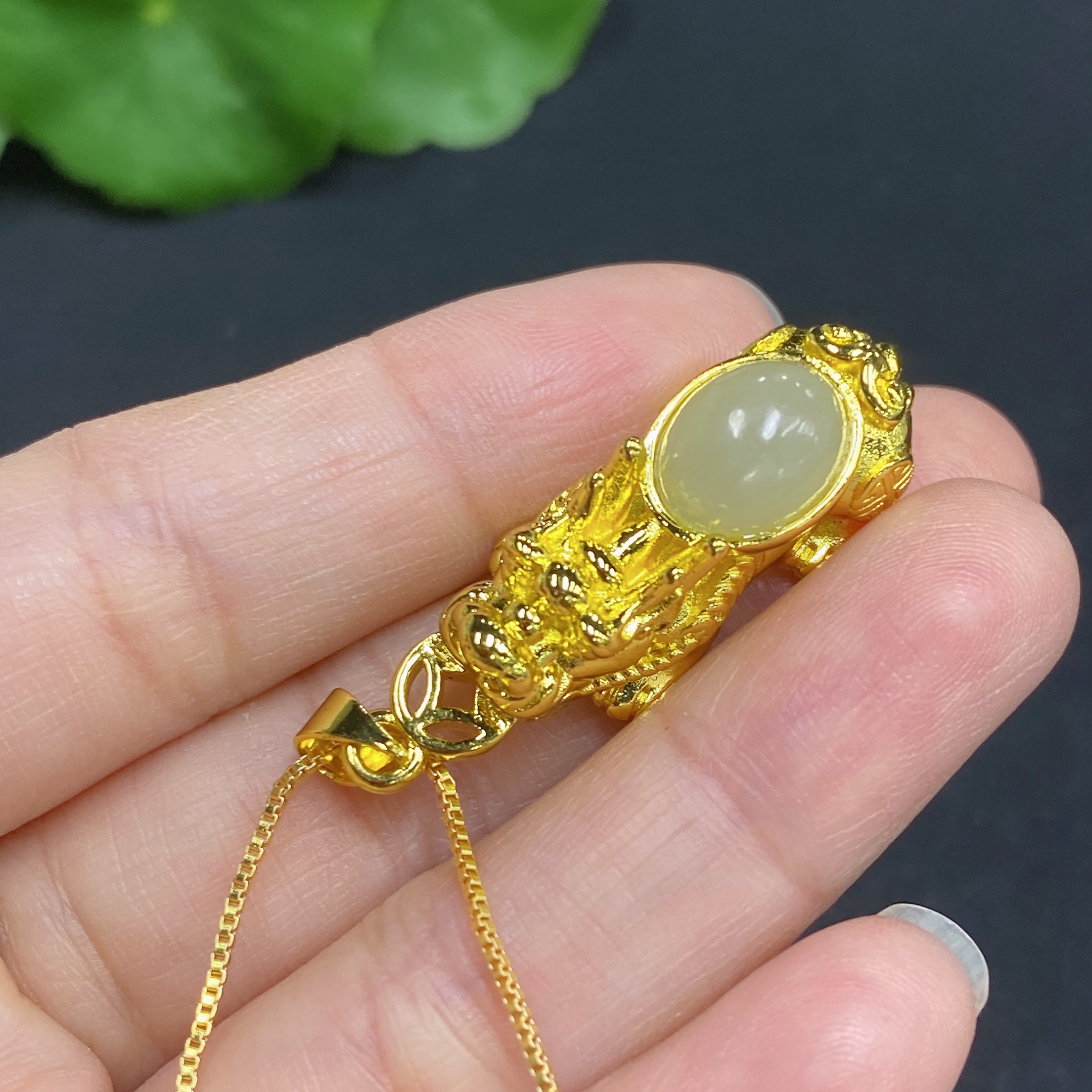 Hetian Jade Inlaid Pendant (Non-gold Inlaid, Non-gold Chain, Total Weight Approx. 11.5g Including Chain)