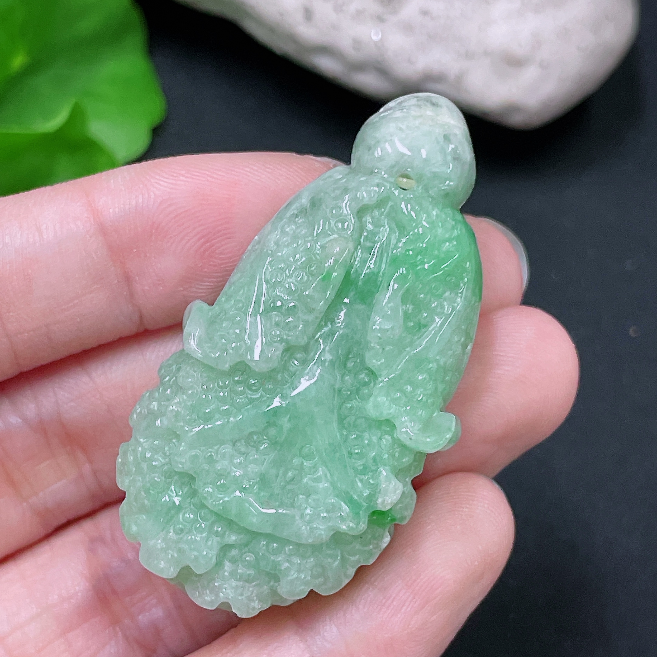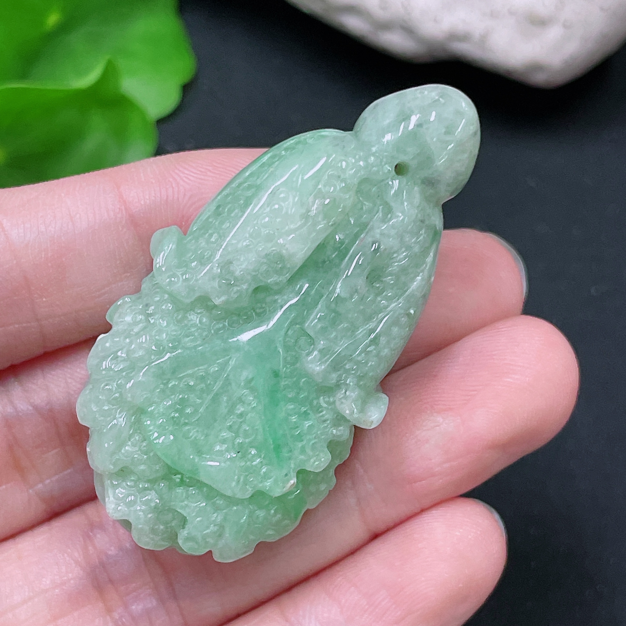 Jadeite cabbage pendant with a total weight of approximately 32.4 grams