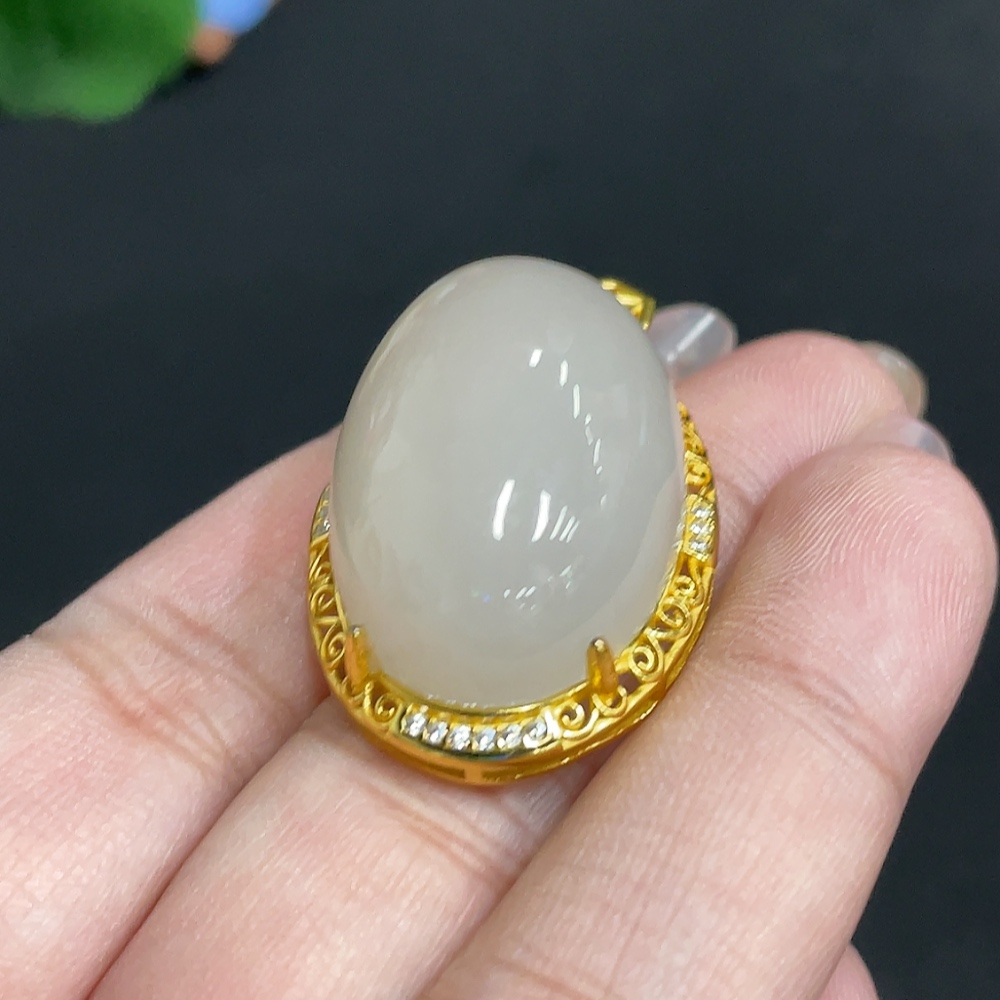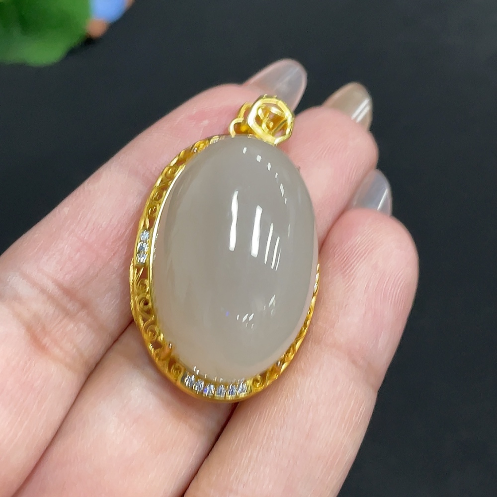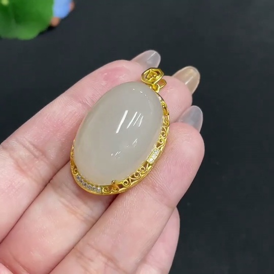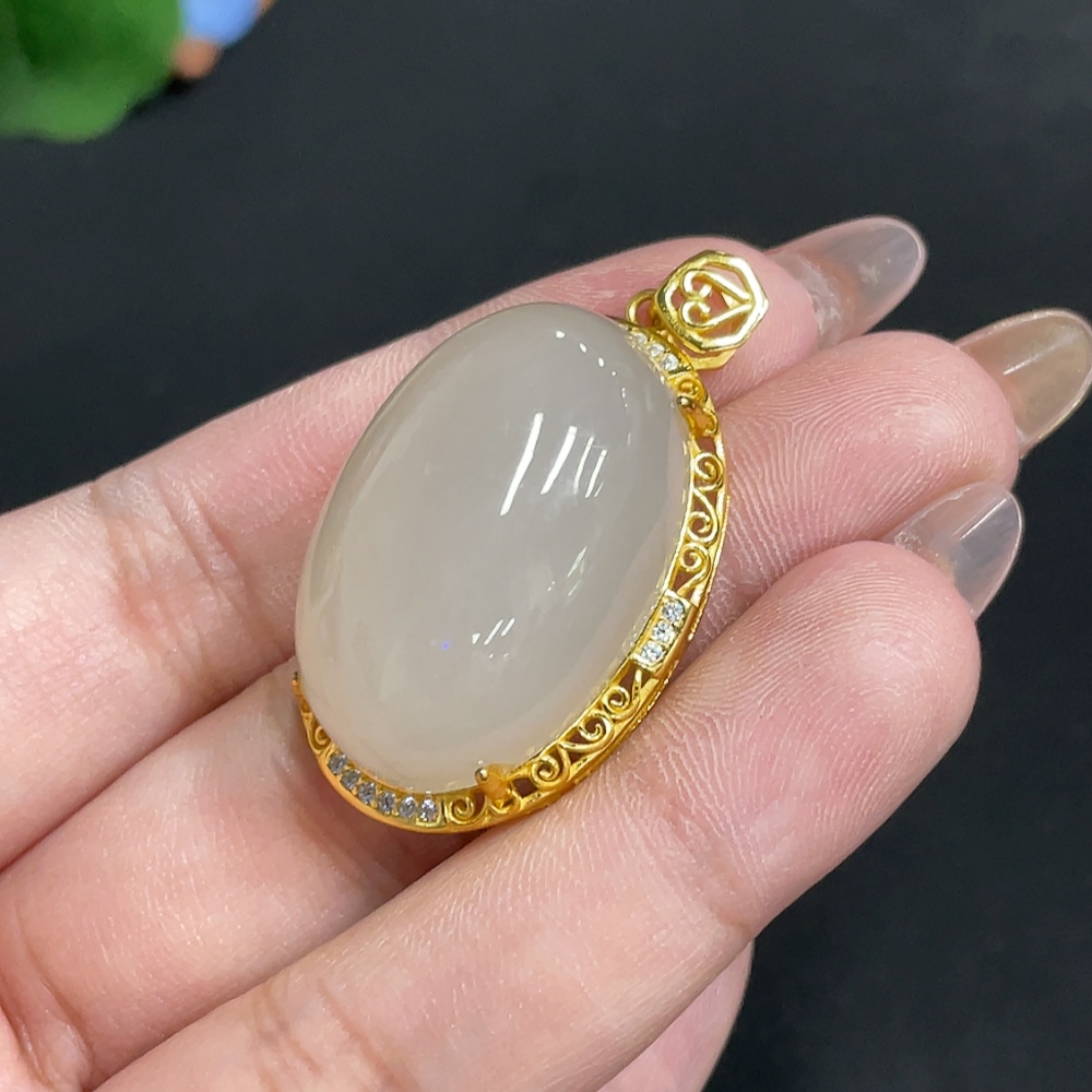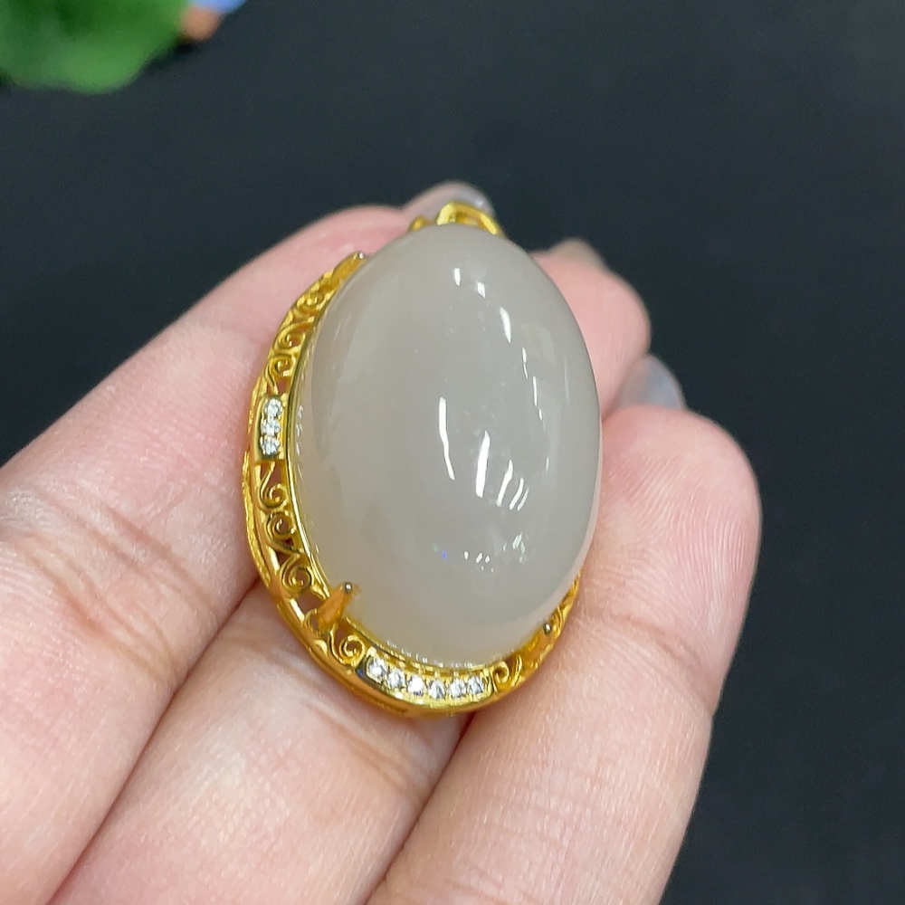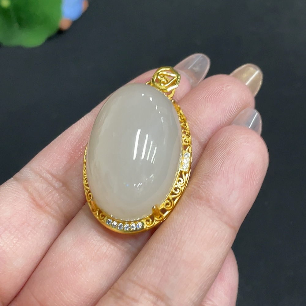 Hetian Jade Inlaid Pendant Total Weight Approx. 15.7g Non-Diamond Non-Gold