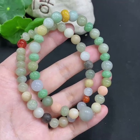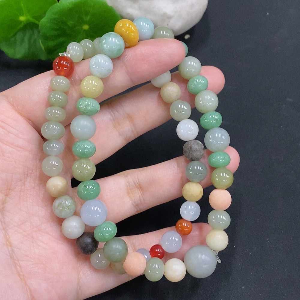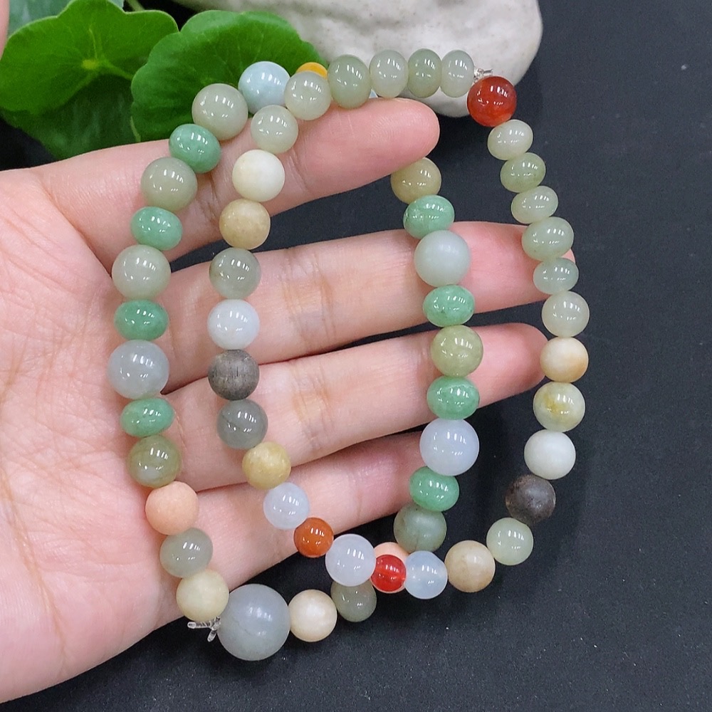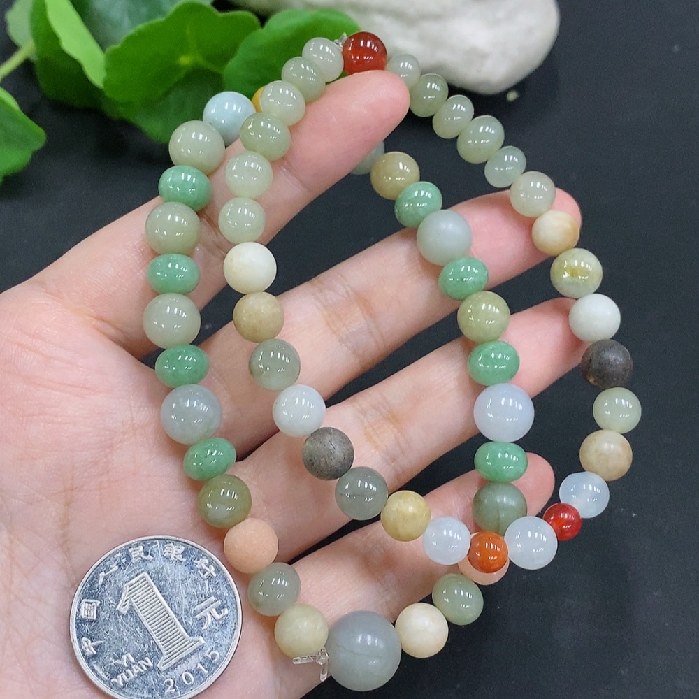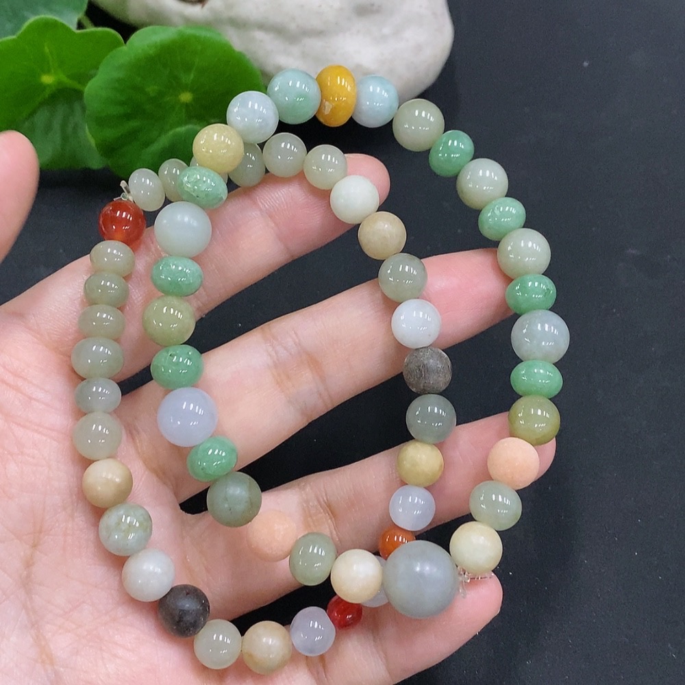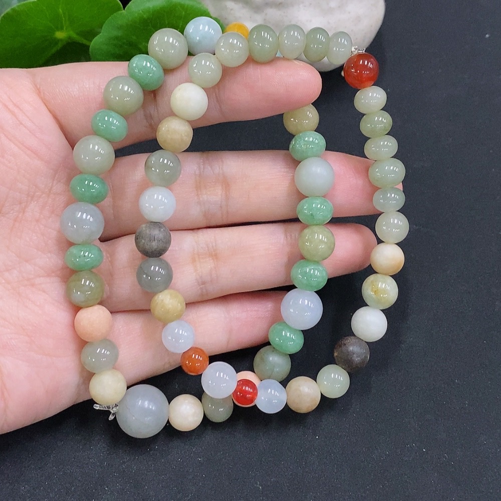 Jadeite Bracelet Sell as a Lot (Some Beads Are Unpolished) Yellow Beads Color Origin Undetermined Red Beads Non-Jadeite