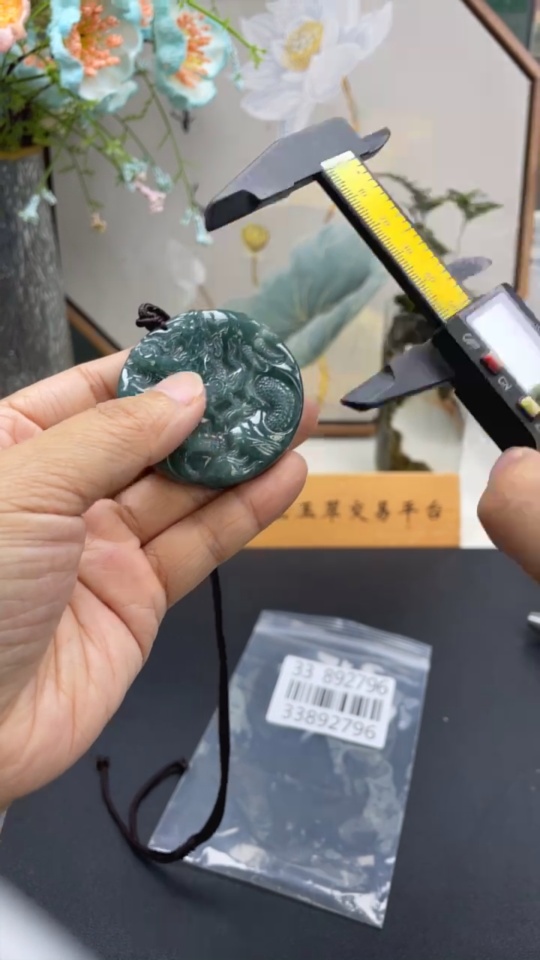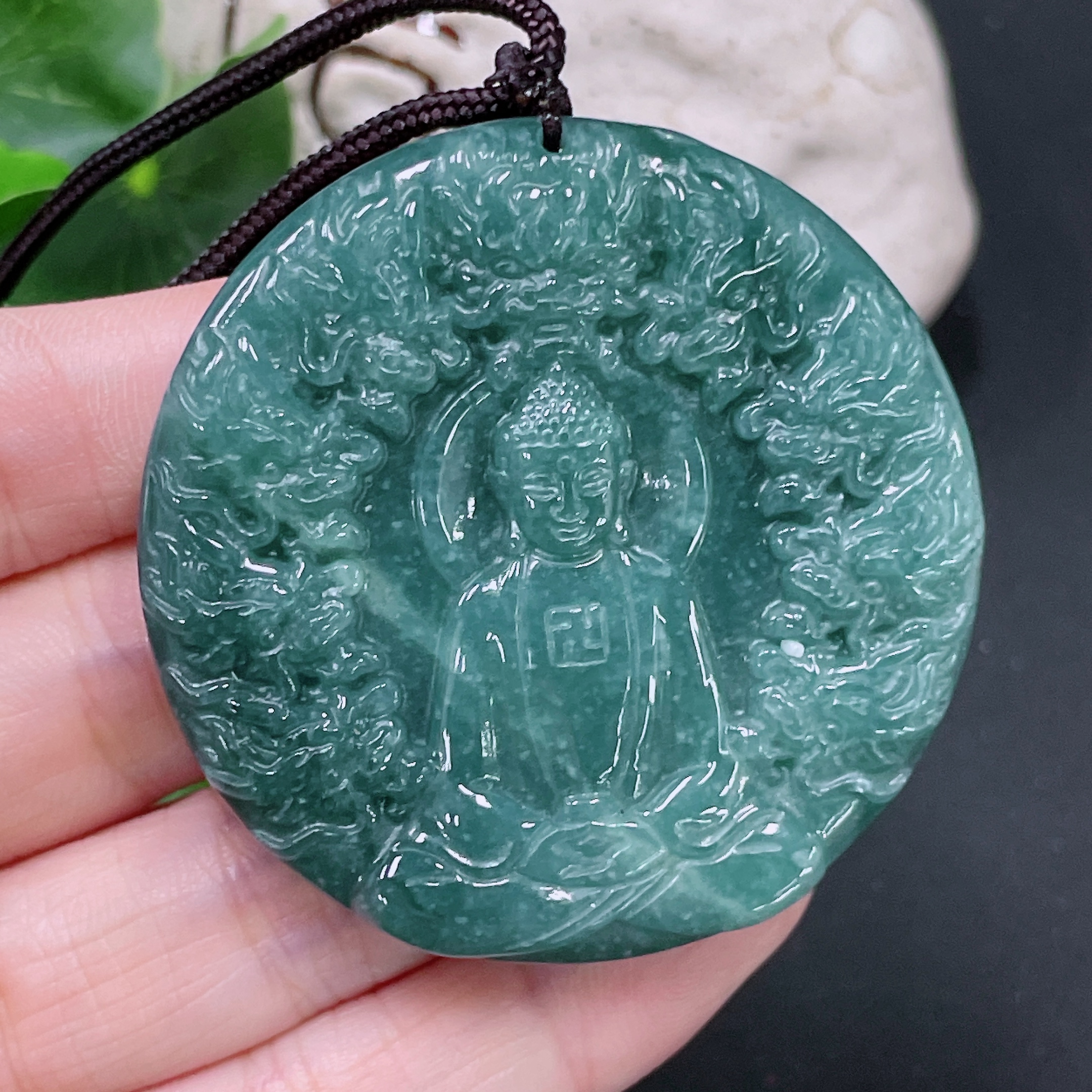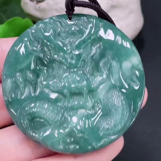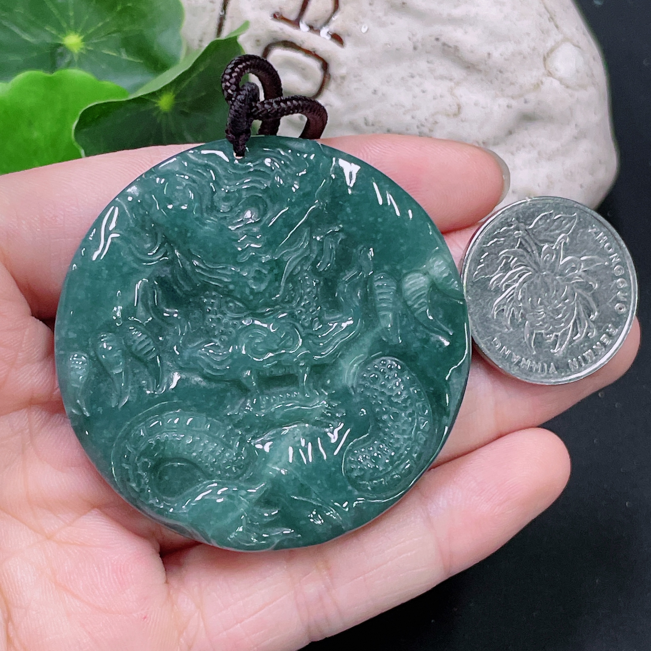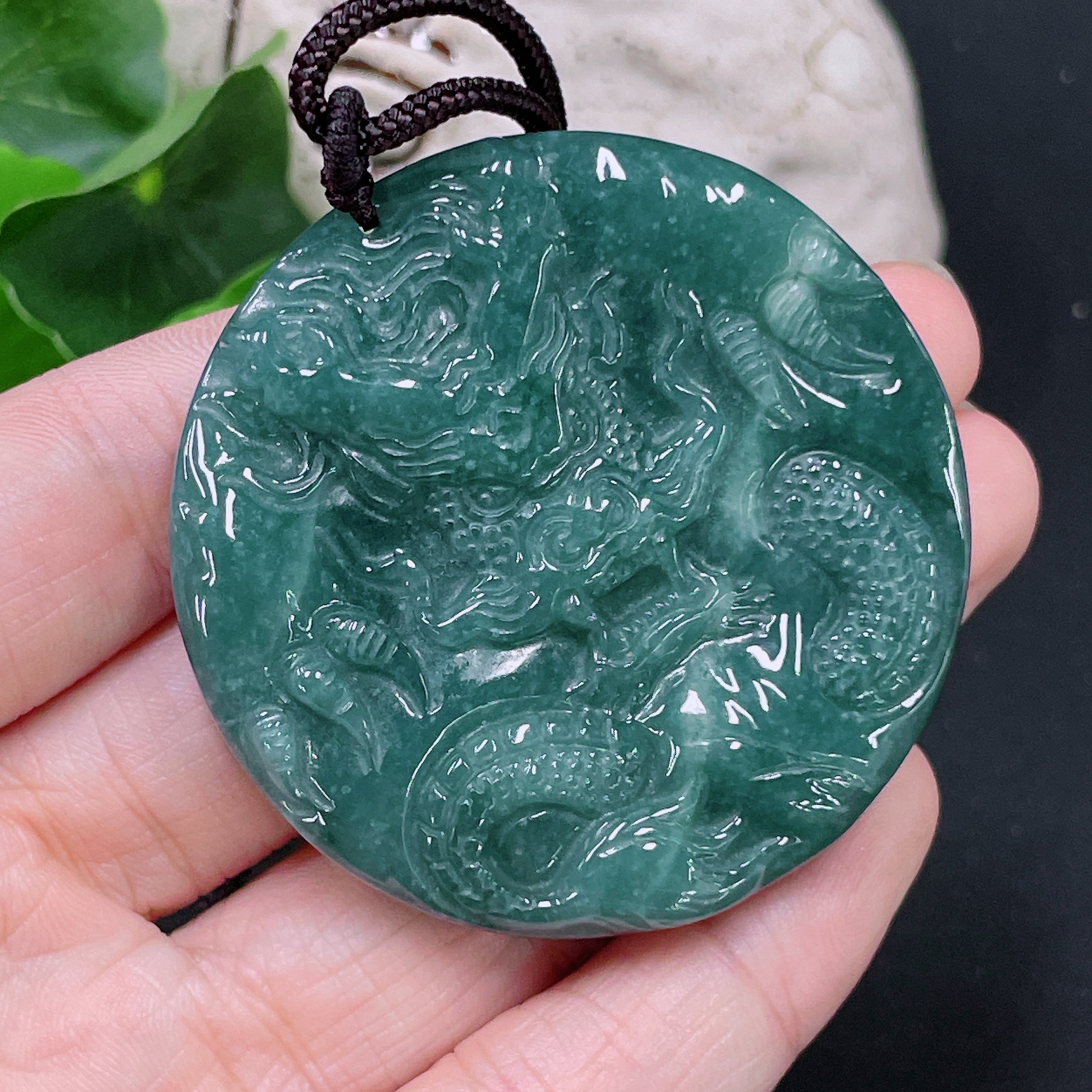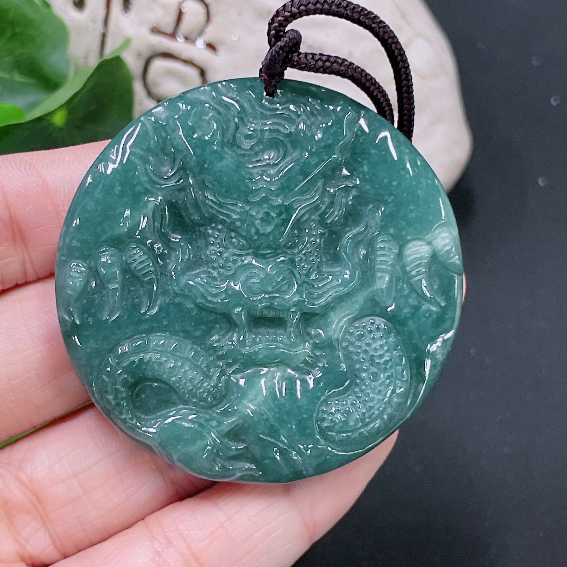 Jadeite Nine Dragons Protecting the Master Pendant, Total Weight 55.6g (including rope weight)