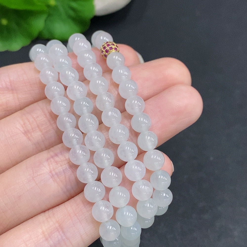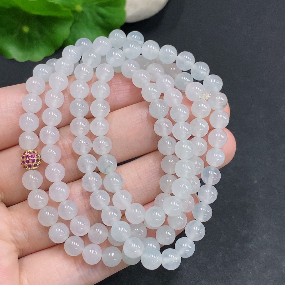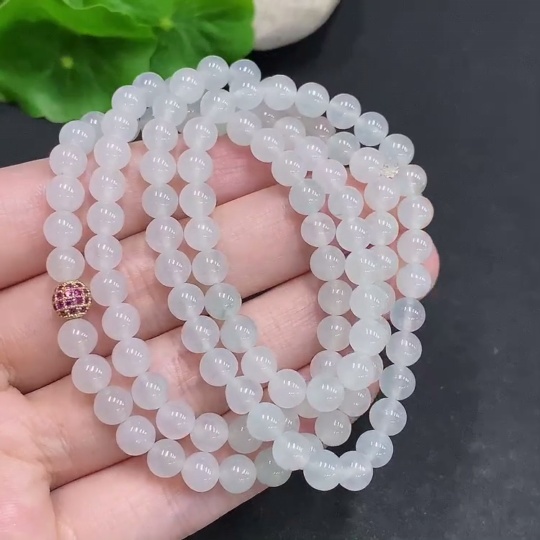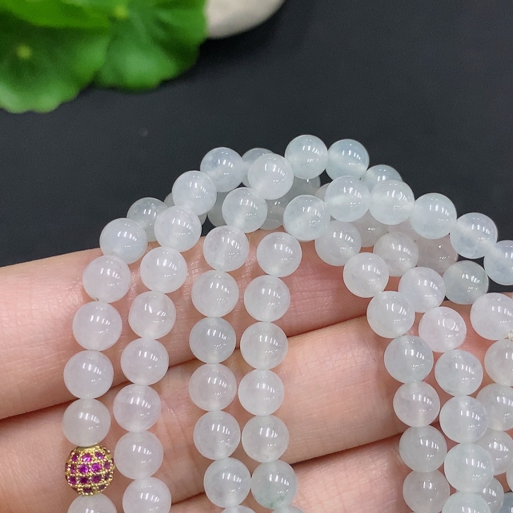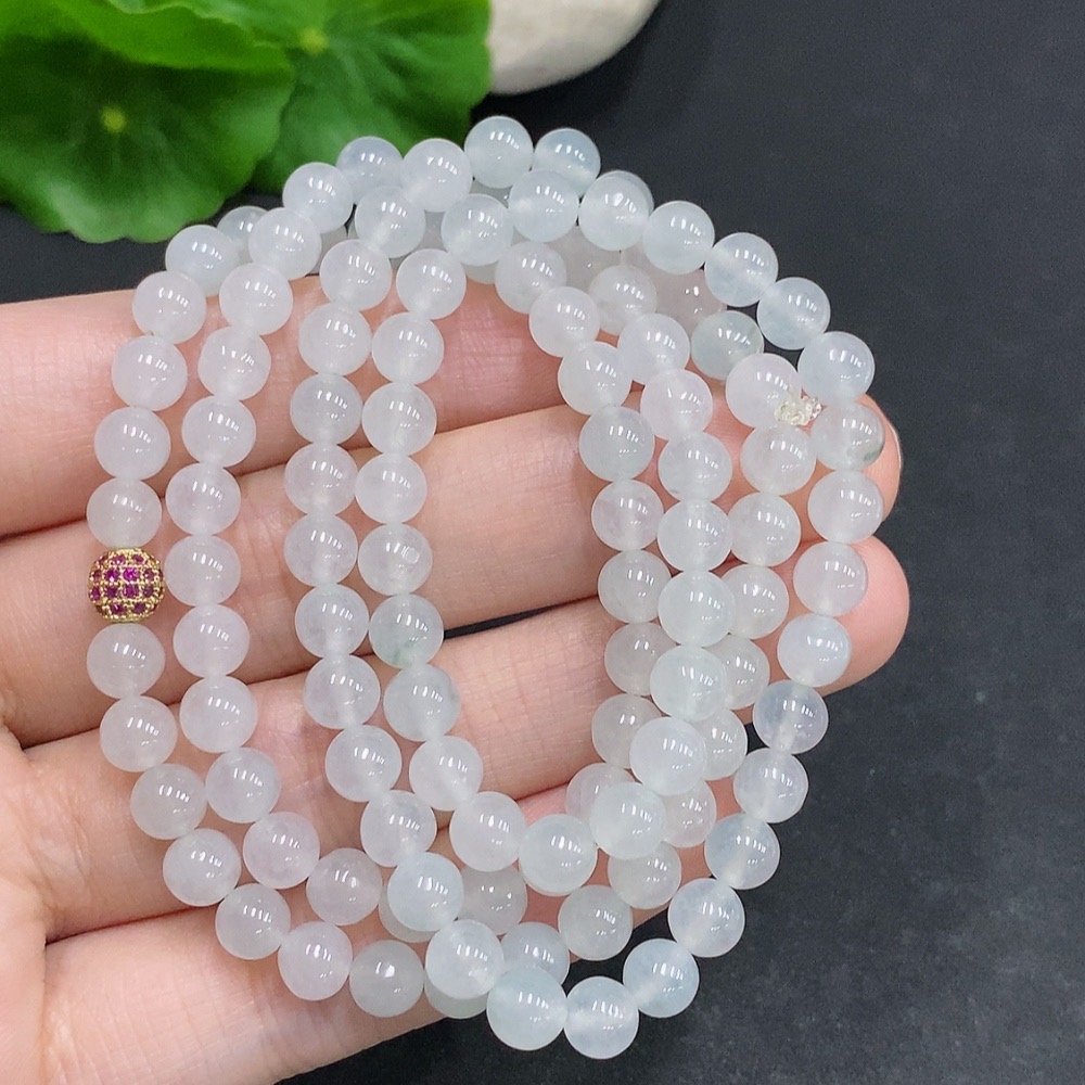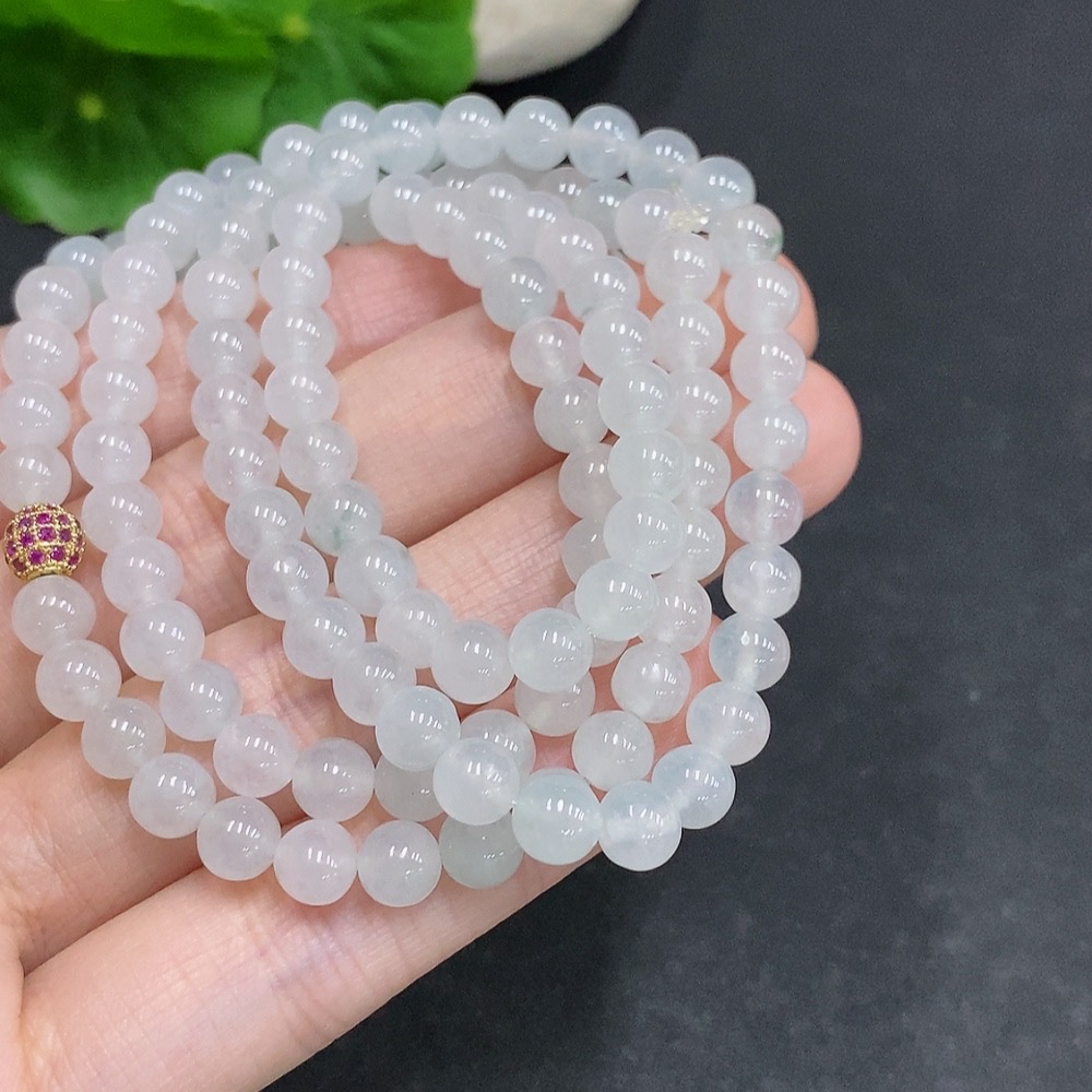 Jadeite Bead Necklace Non-Gold Inlaid Total Weight Approx. 36.4g Size About 5.5mm