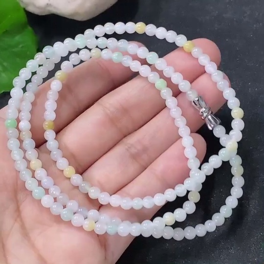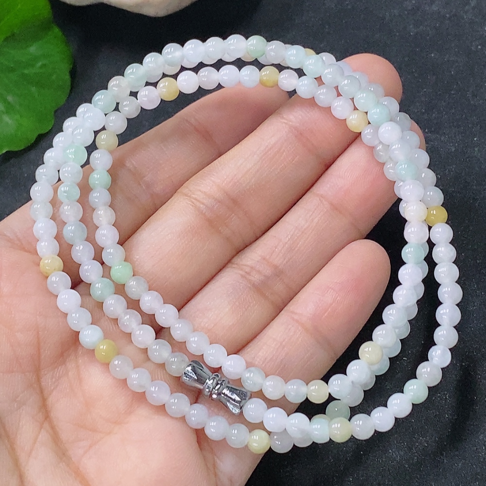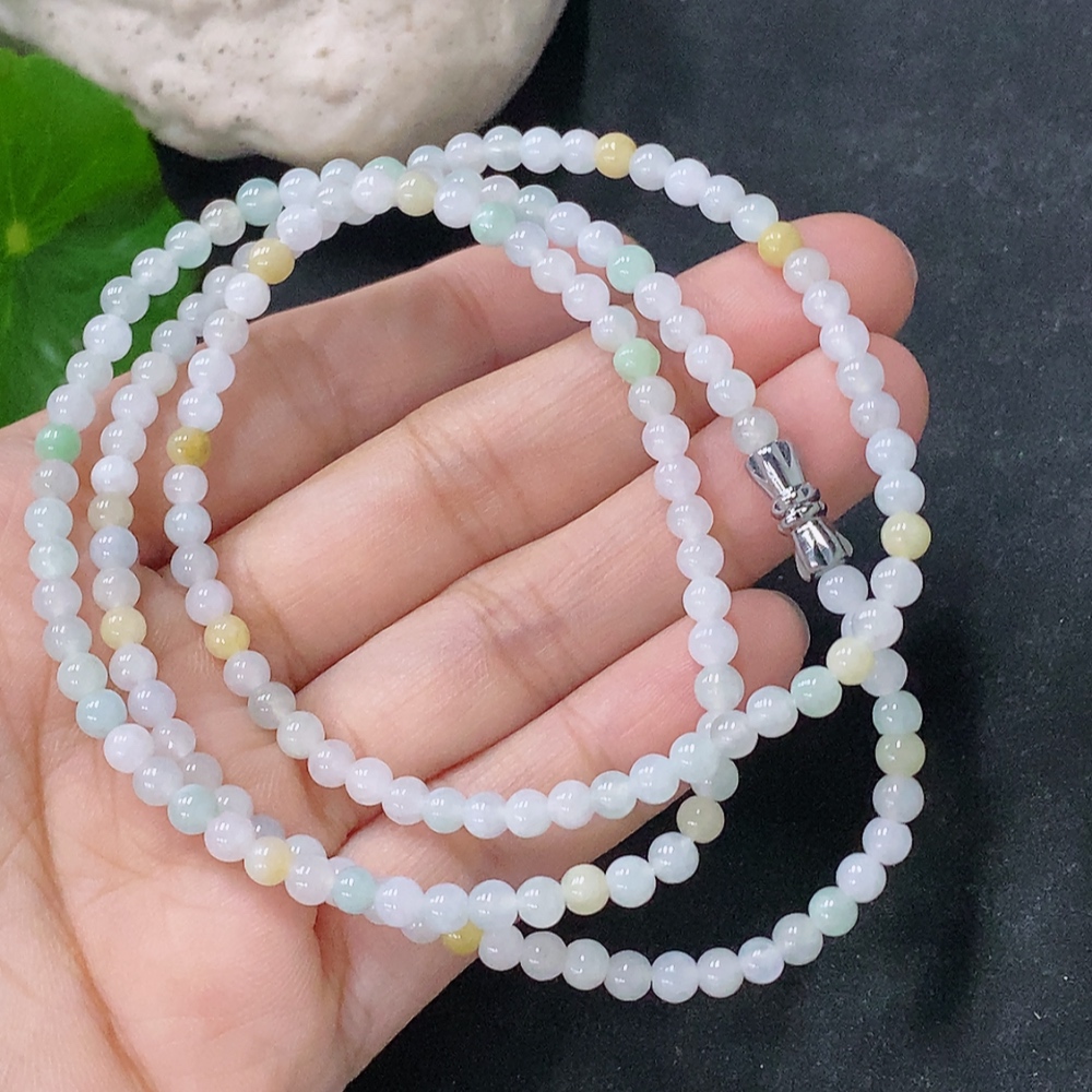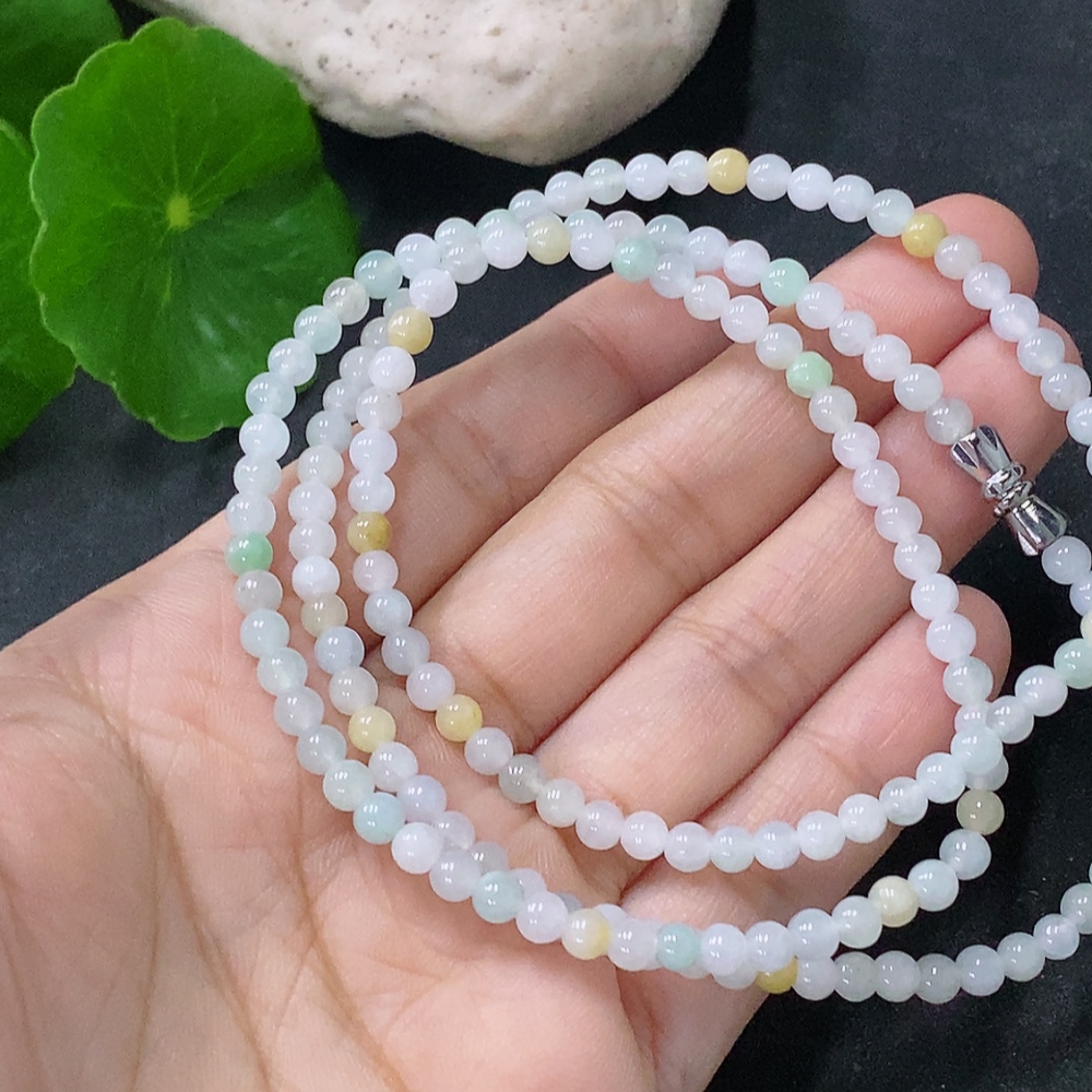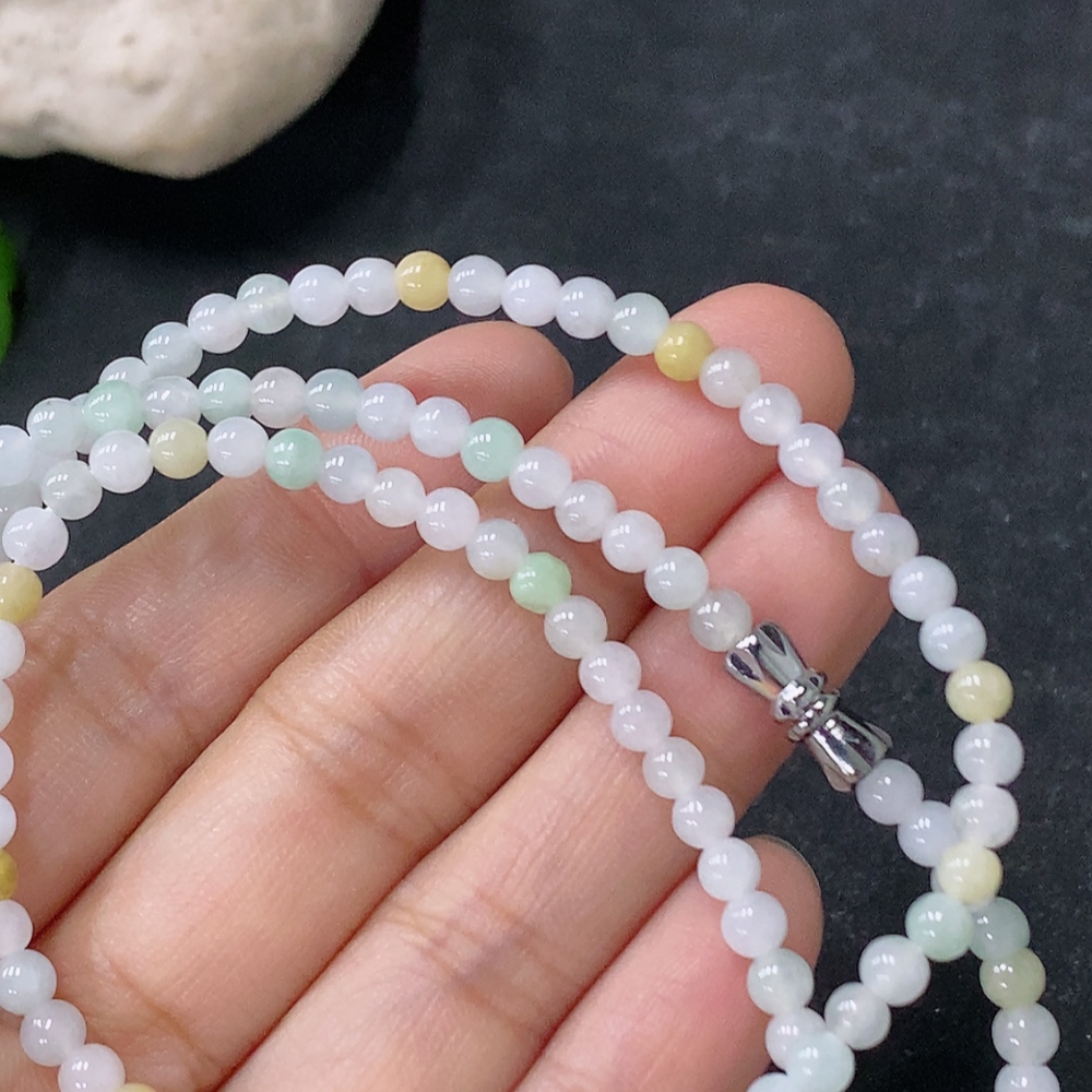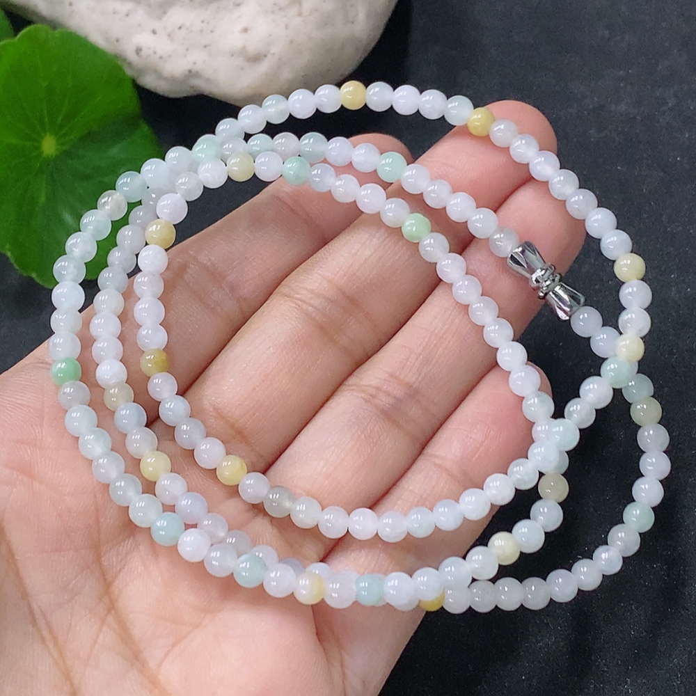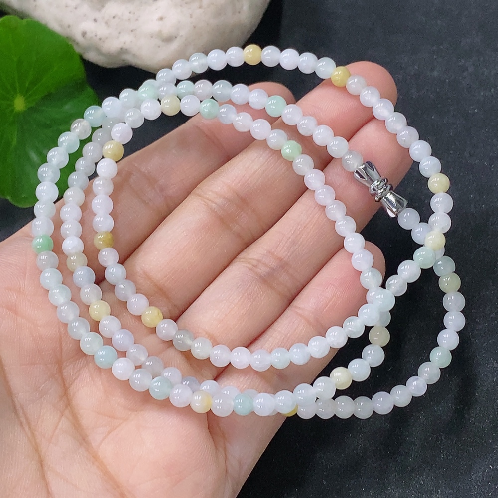 Jadeite Bead Necklace Approx. 4mm Non-Gold Total Weight Approx. 15.78g Yellow Part Color Origin Undetermined