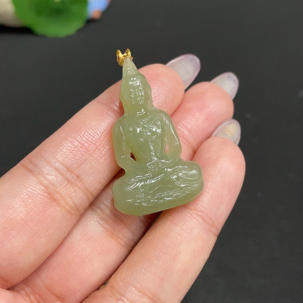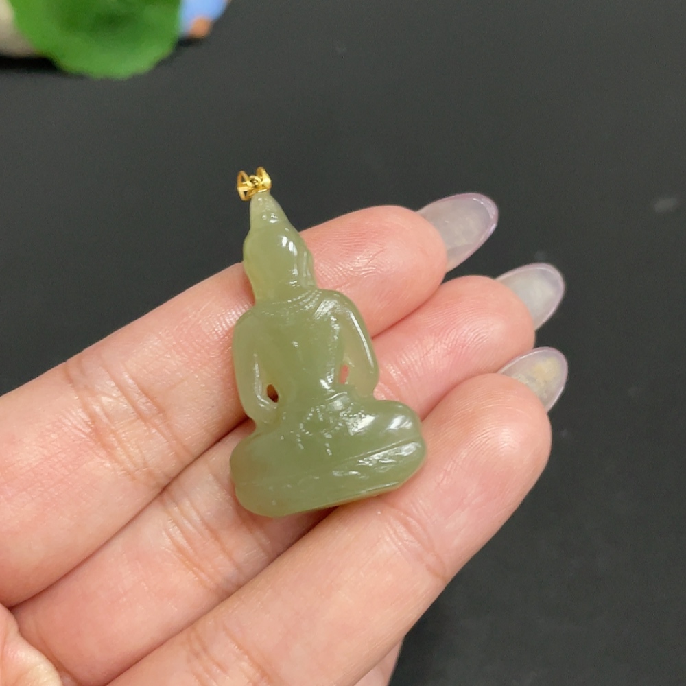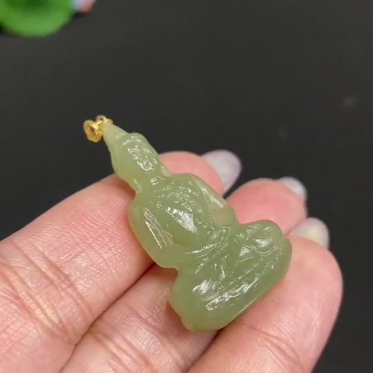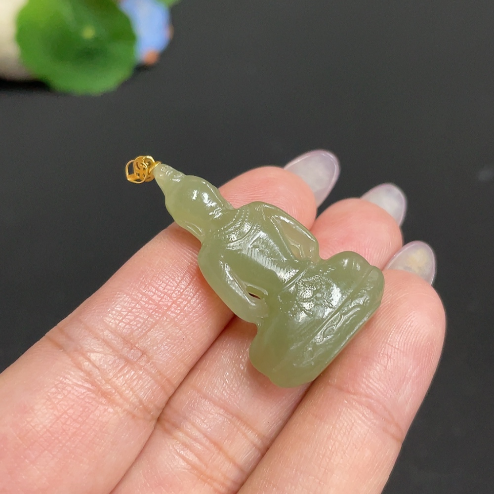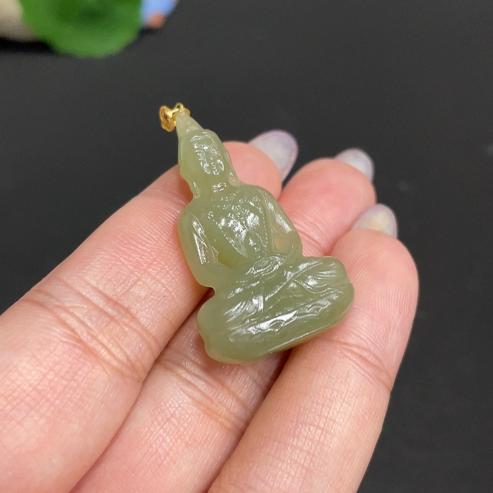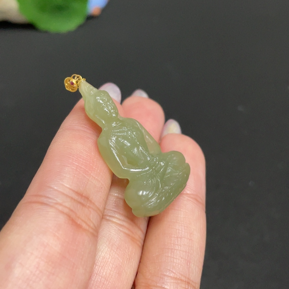 Hetian Jade Inlaid Pendant Guanyin Total Weight About 7.9g 18k