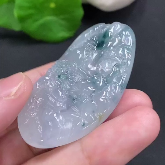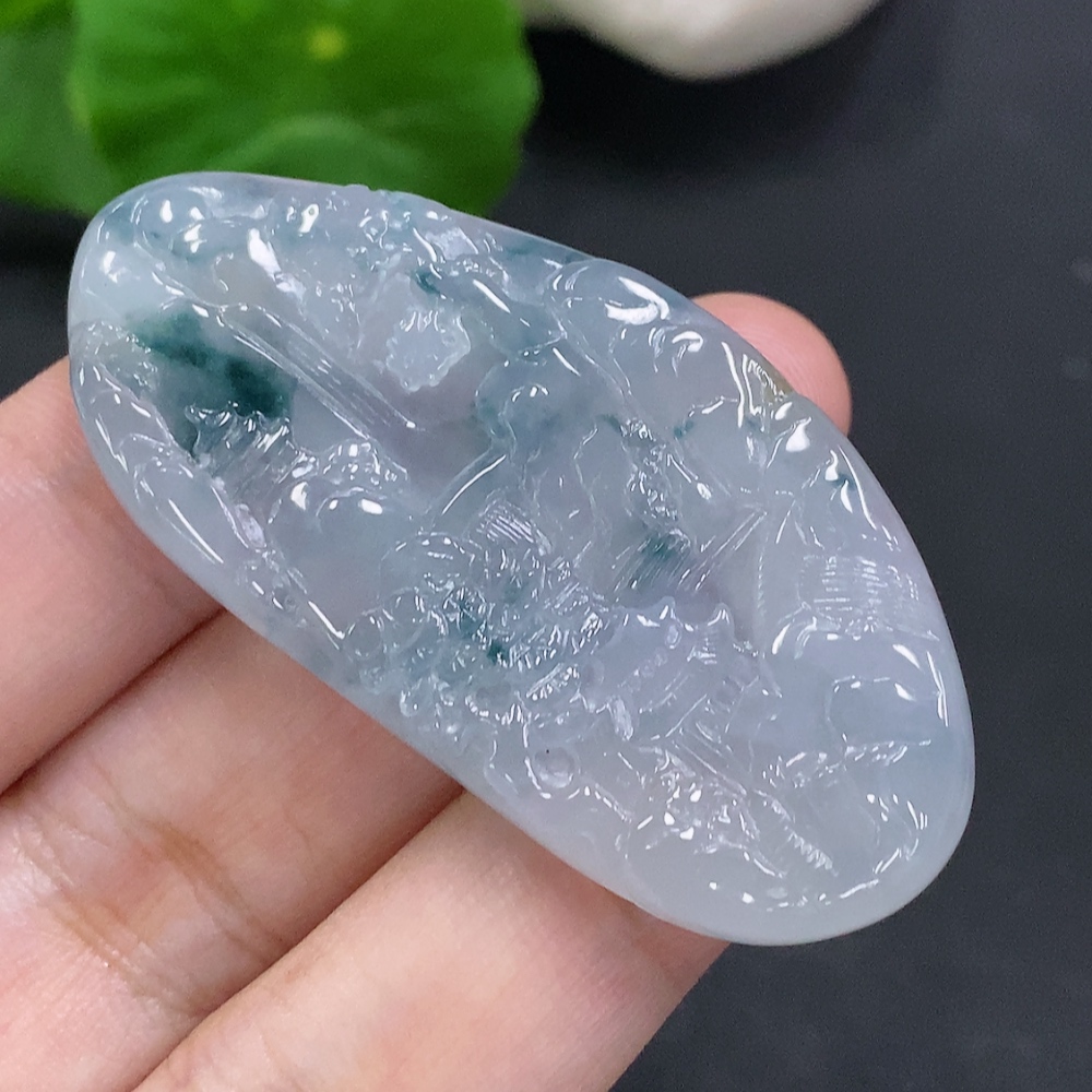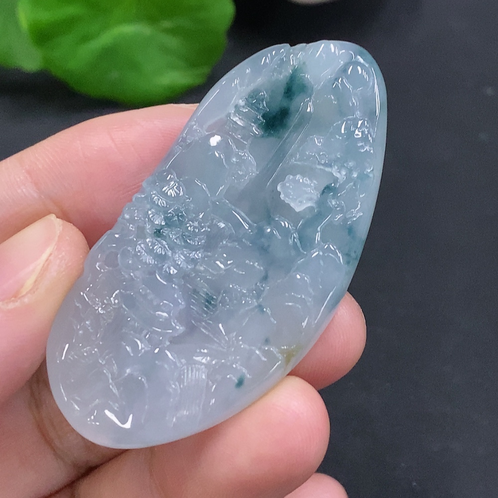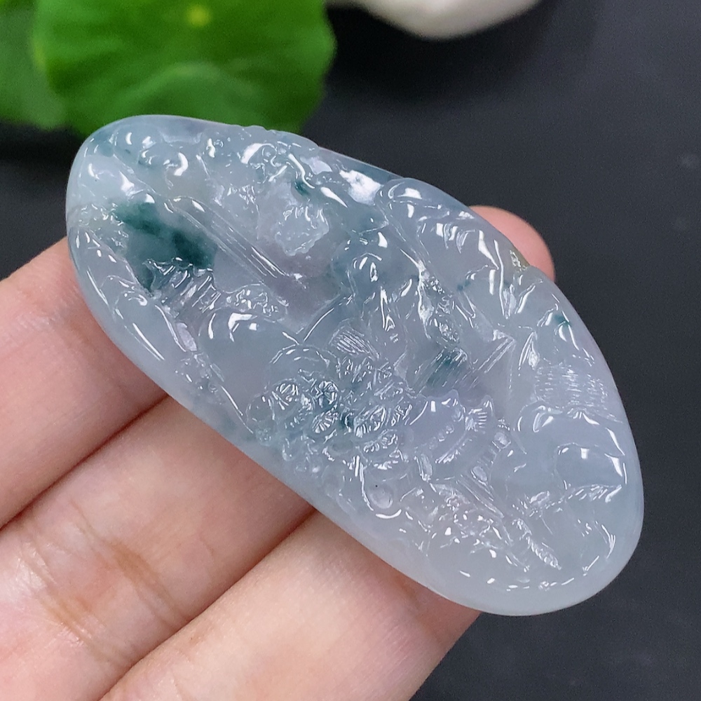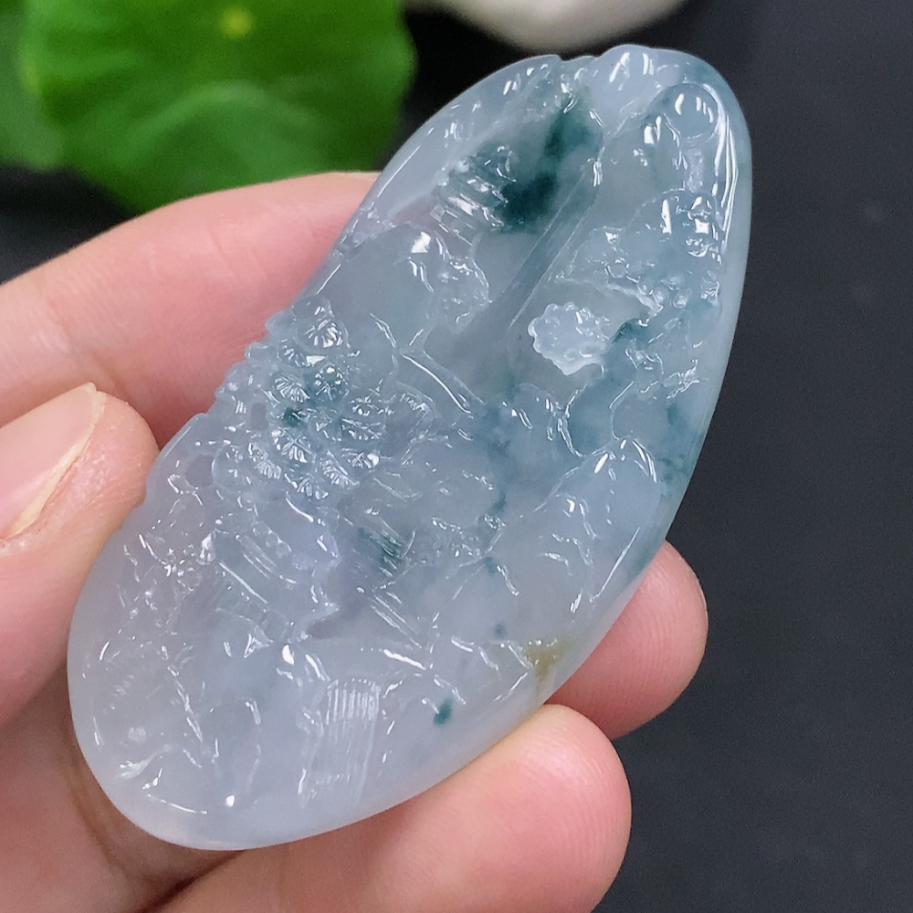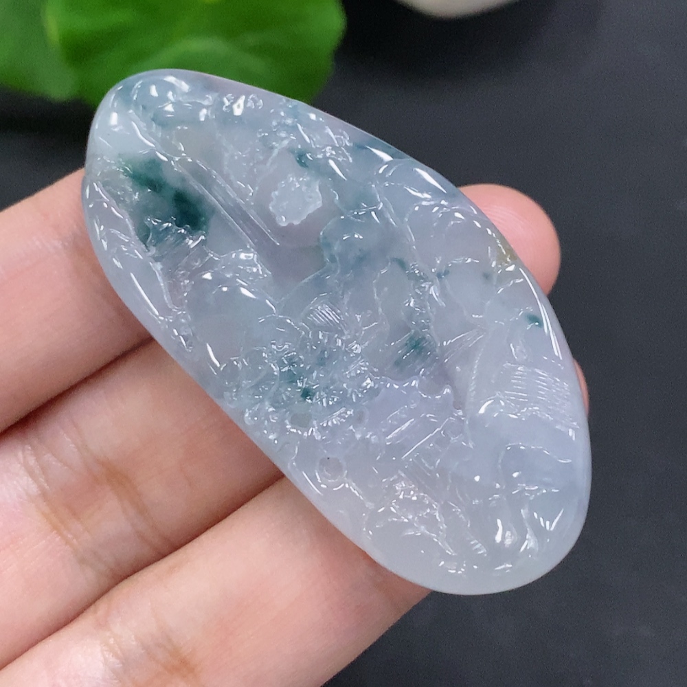 Jadeite Landscape Pendant, Total Weight Approximately 17.1g