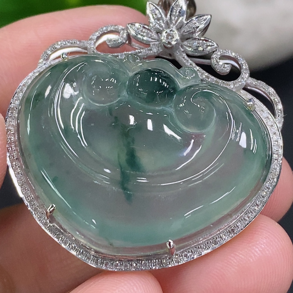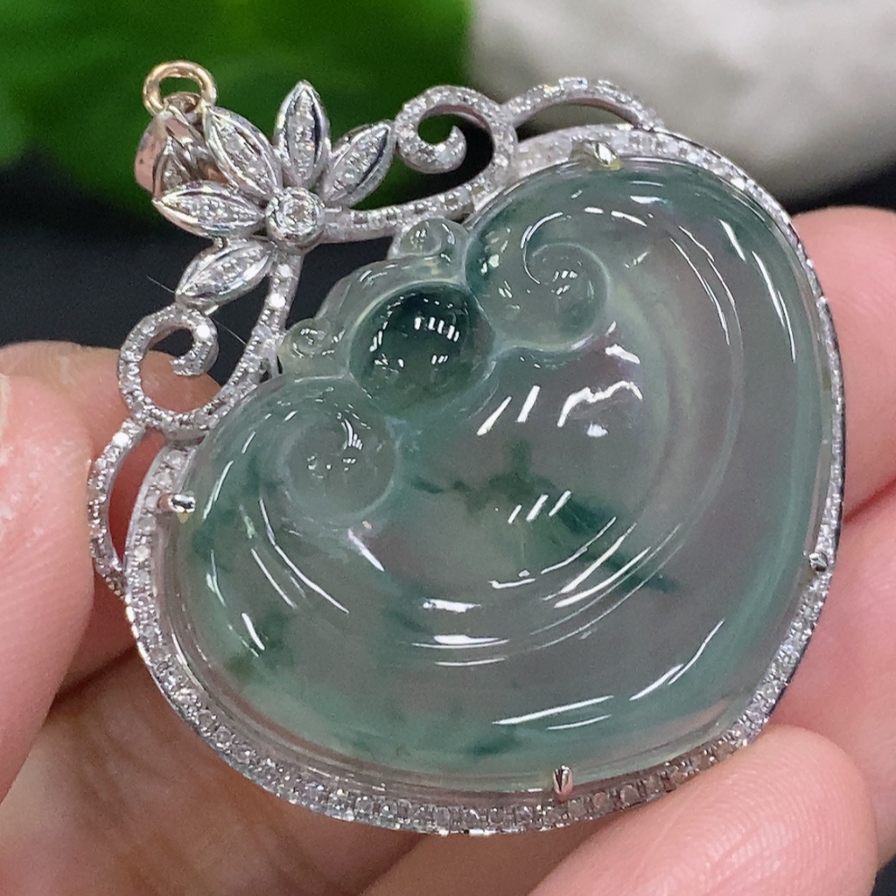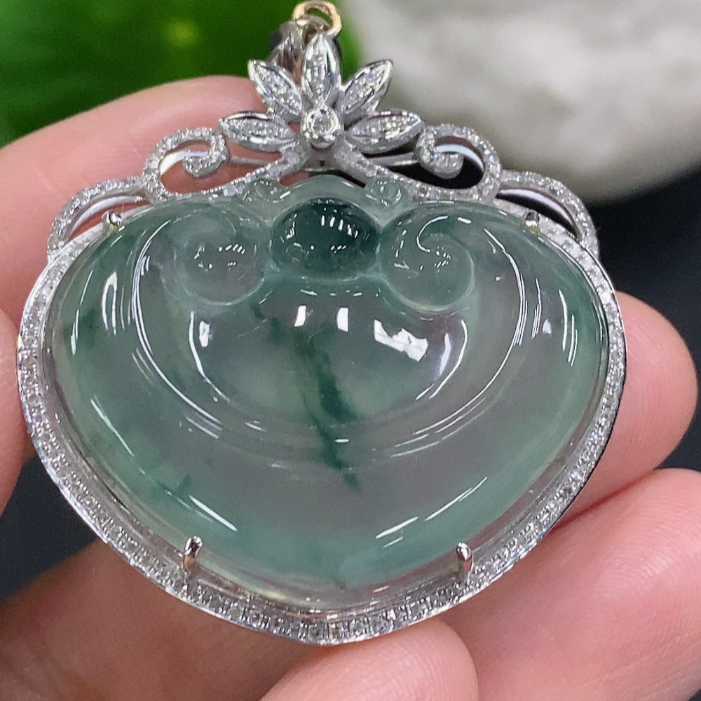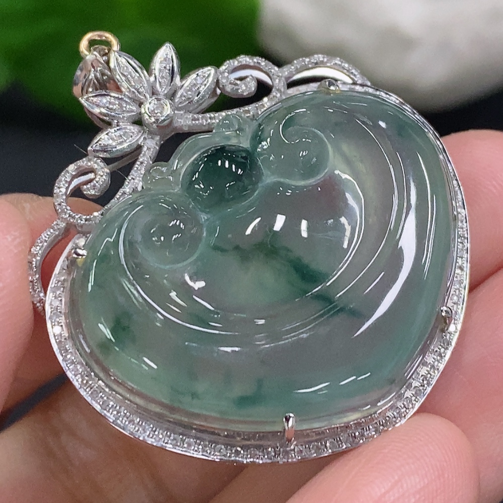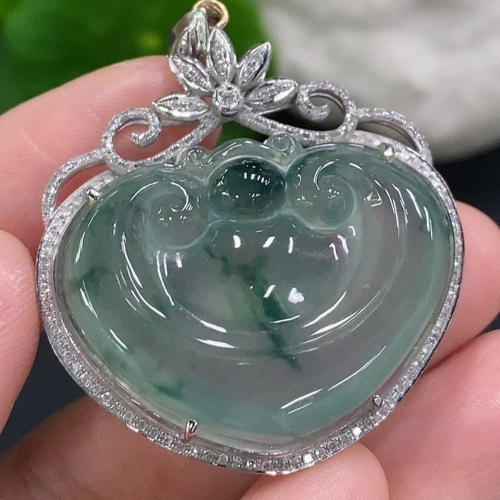 Jadeite Ruyi Inlaid Pendant 18K Gold Total Weight Approx. 10.8g (With Diamond Accents)