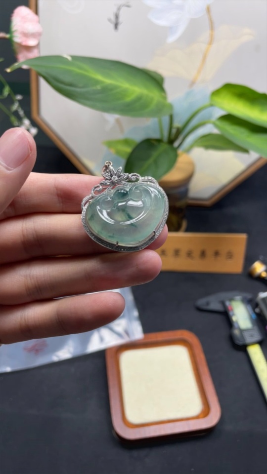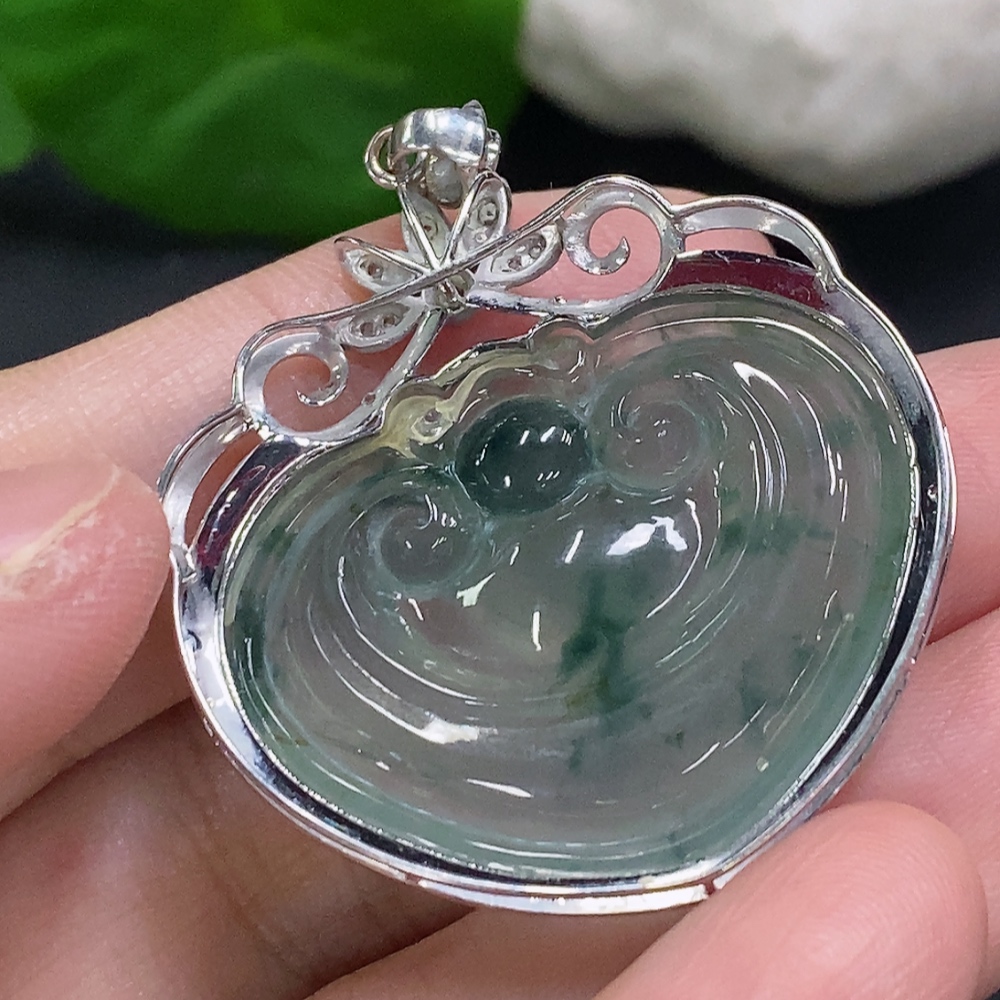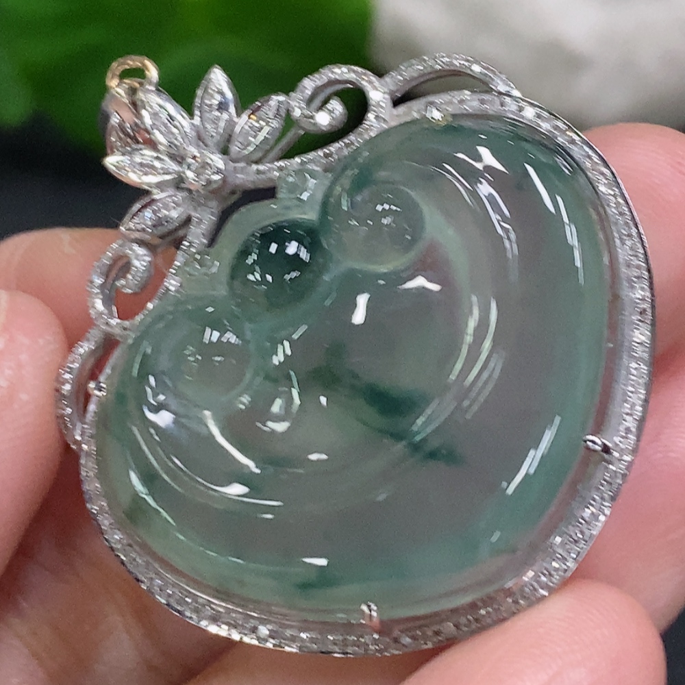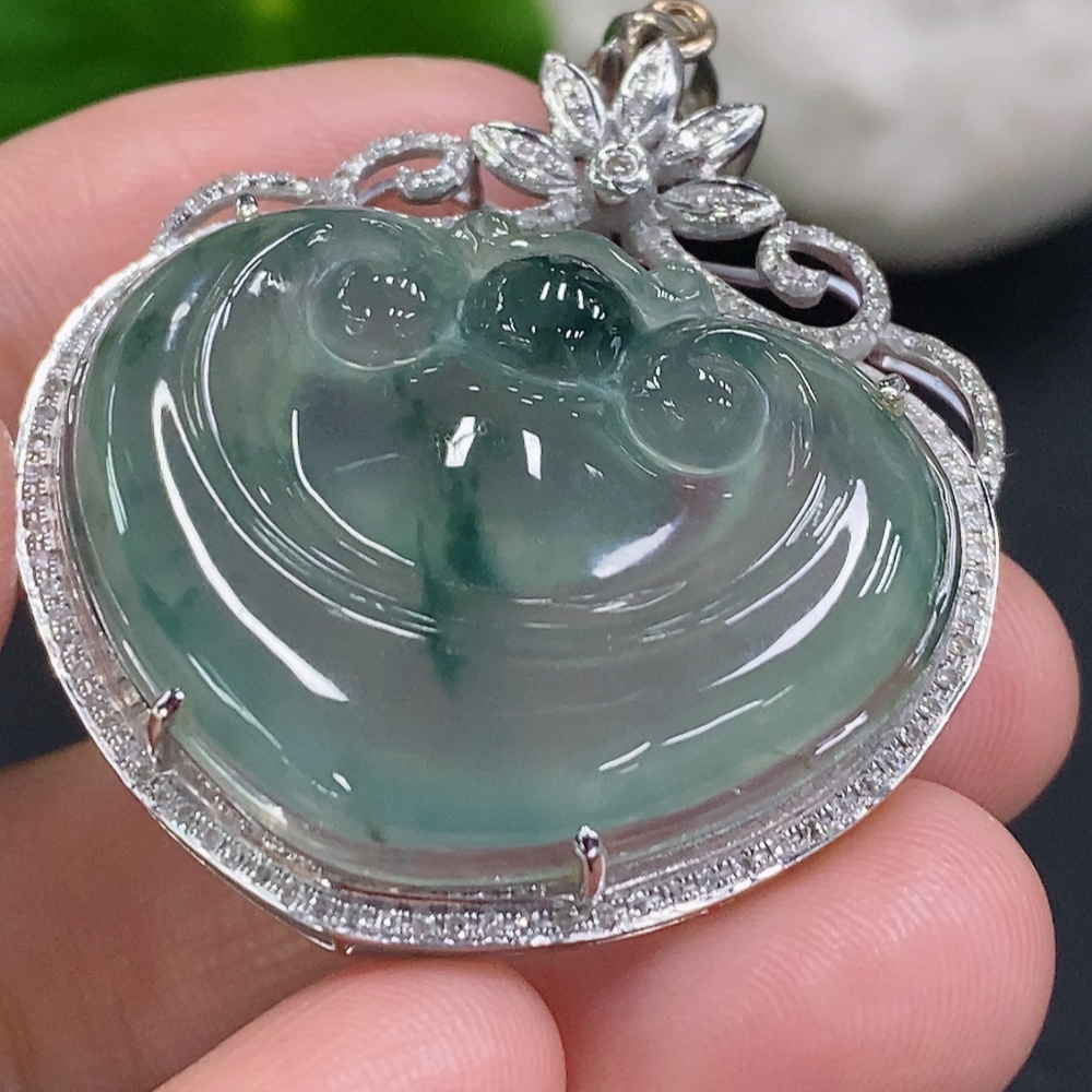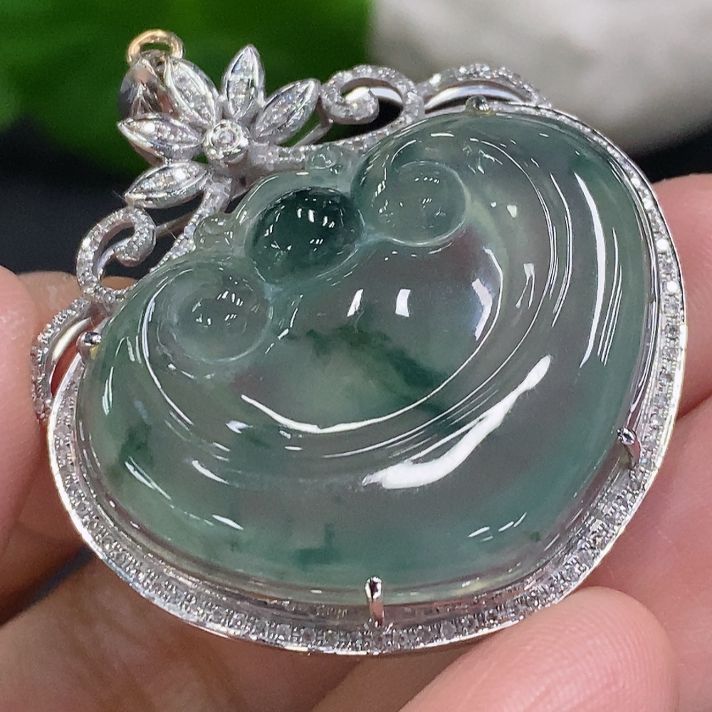 Jadeite Ruyi Inlaid Pendant 18K Gold Total Weight Approx. 10.8g (With Diamond Accents)
