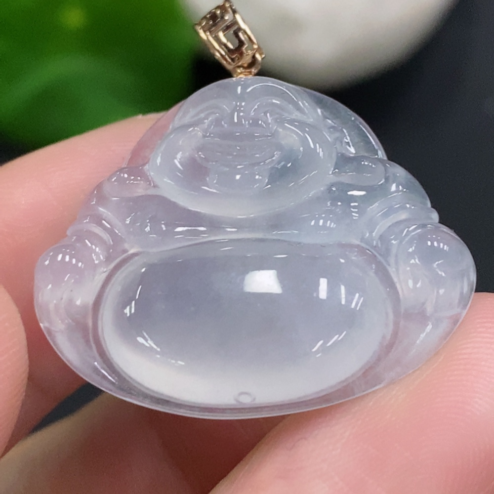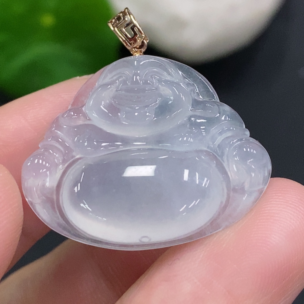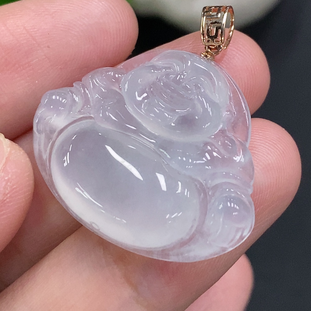 Jadeite Buddha Pendant with 18K Gold Clasp, Total Weight Approximately 5.9g