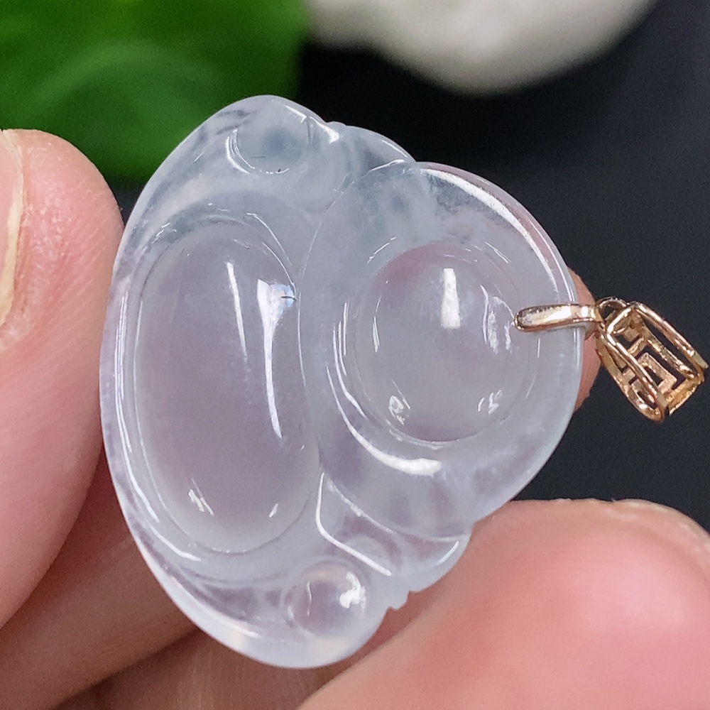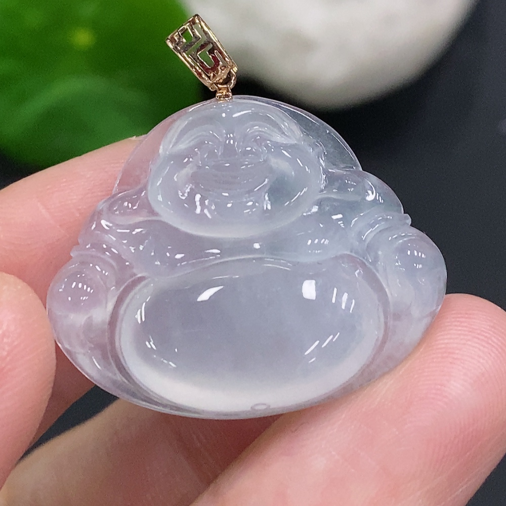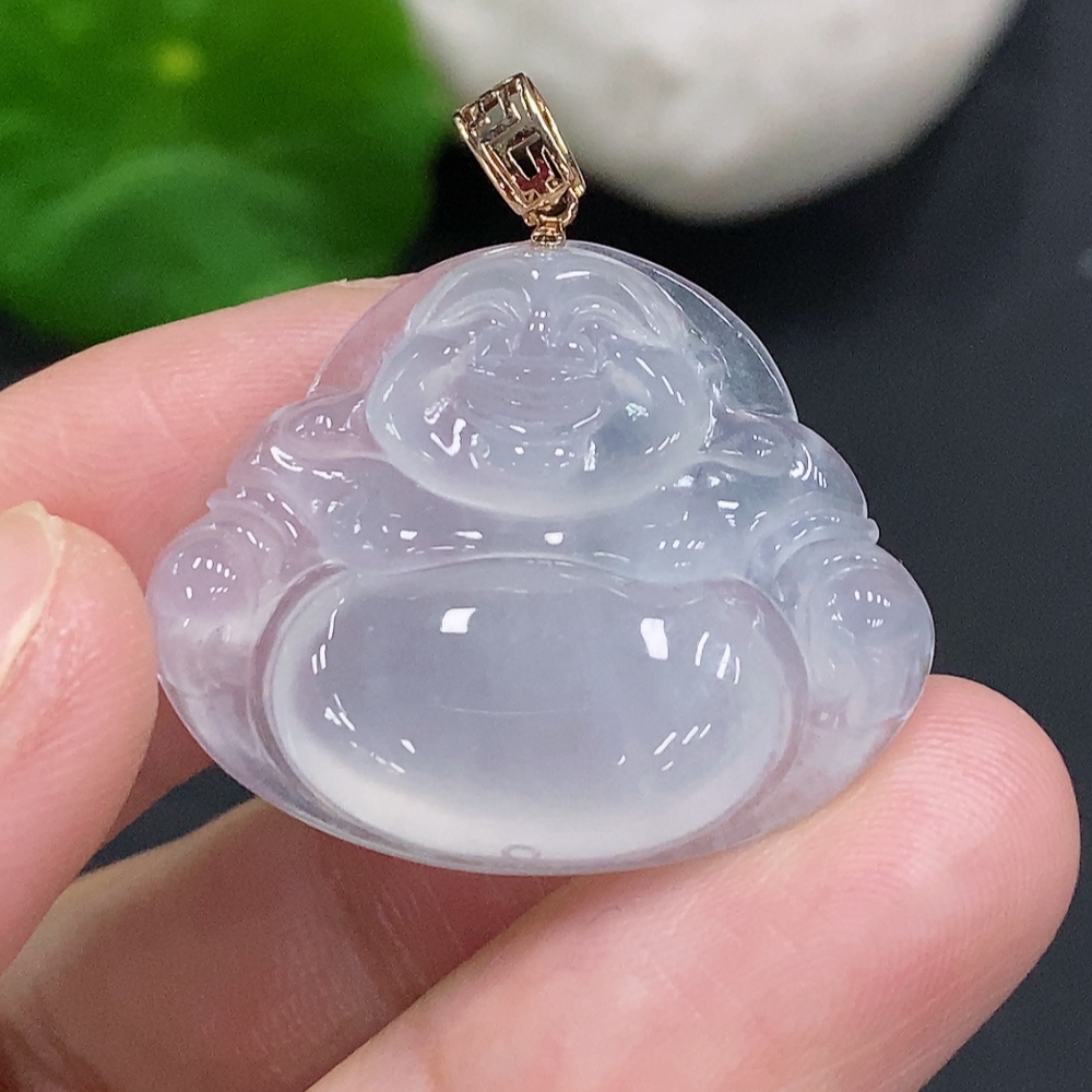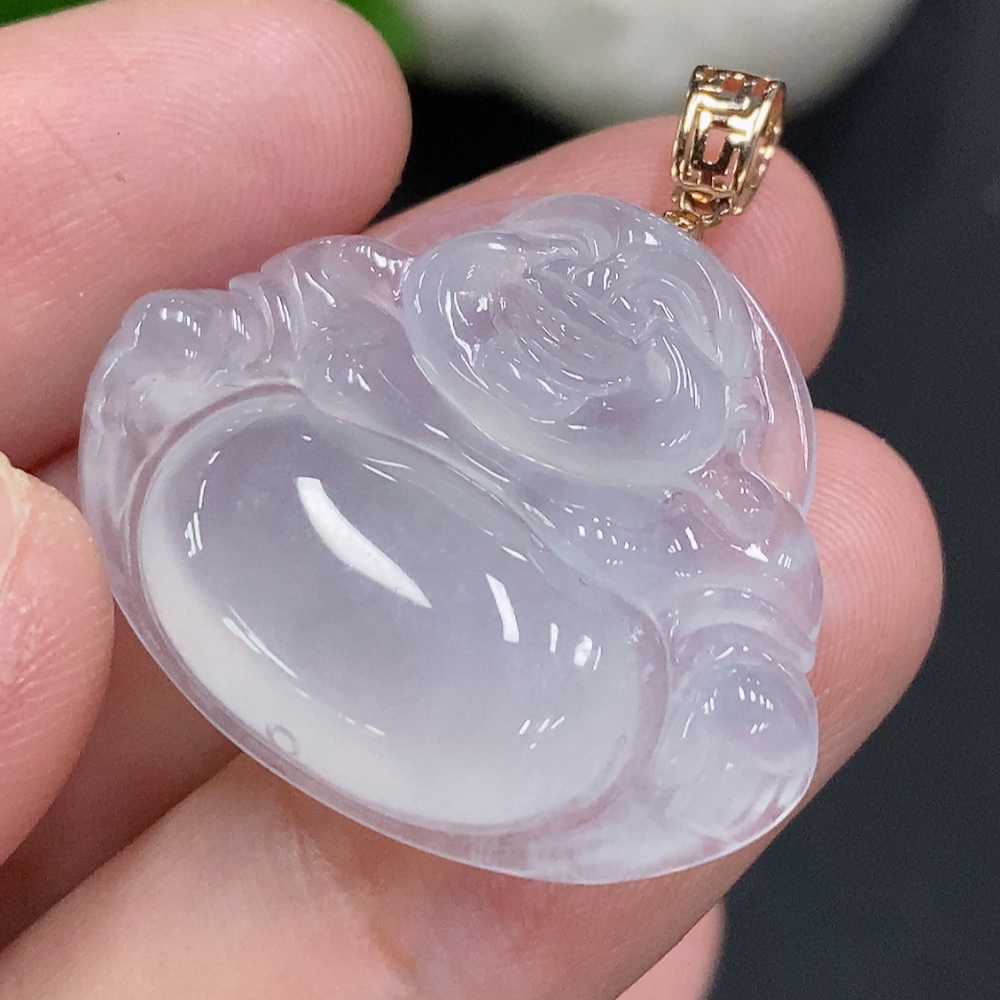 Jadeite Buddha Pendant with 18K Gold Clasp, Total Weight Approximately 5.9g