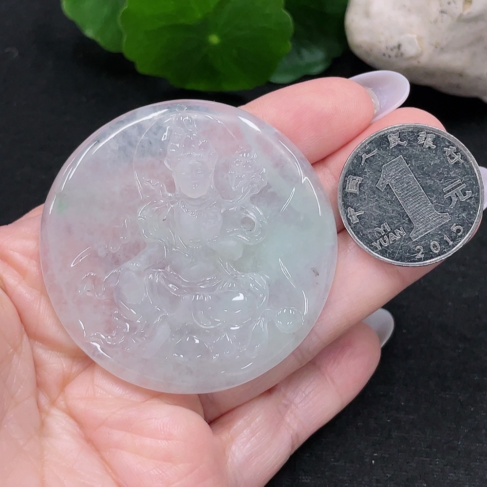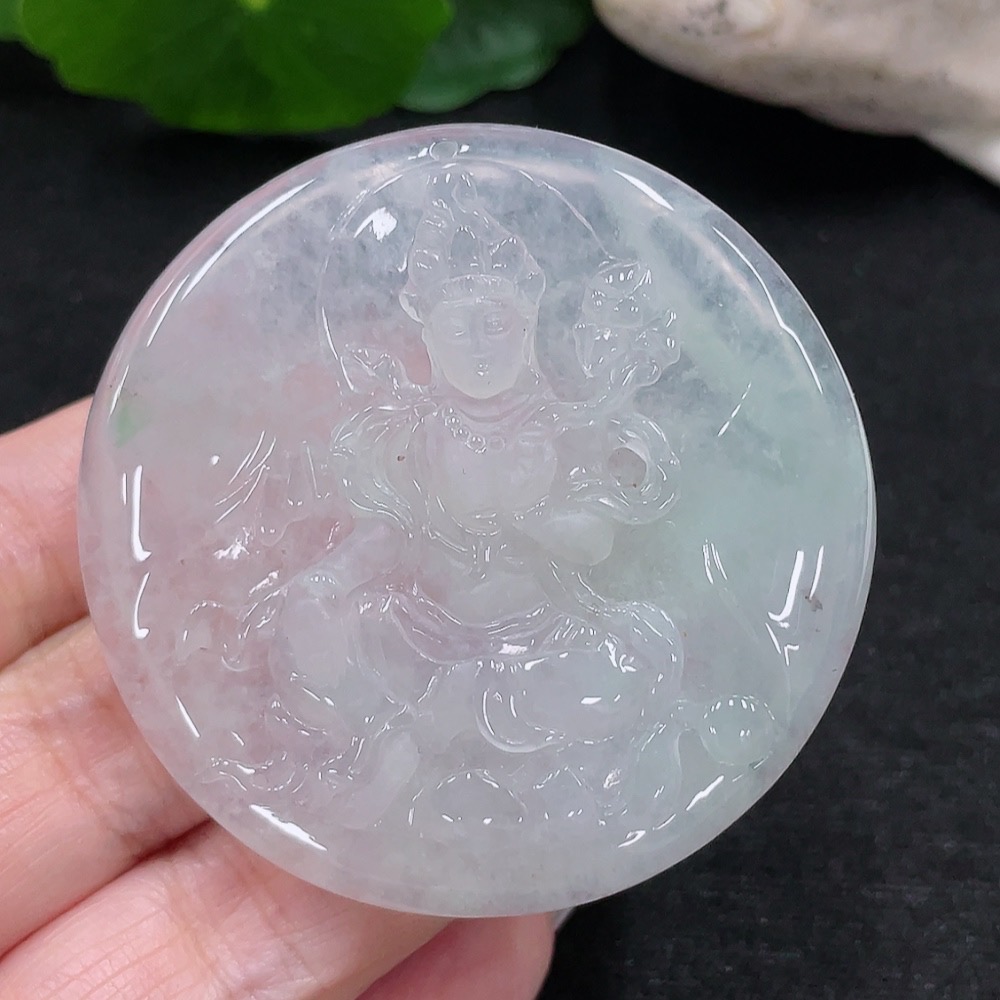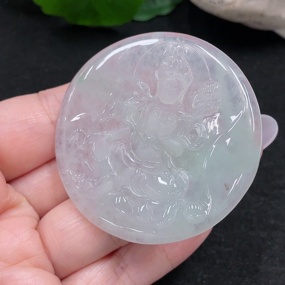 Jadeite Guanyin Pendant, Total Weight Approximately 26.2g
