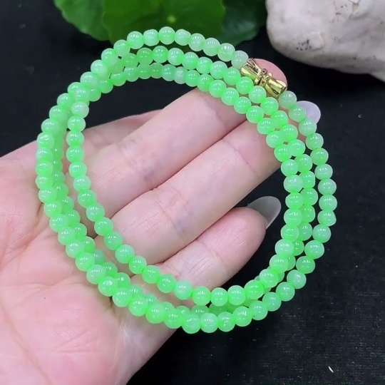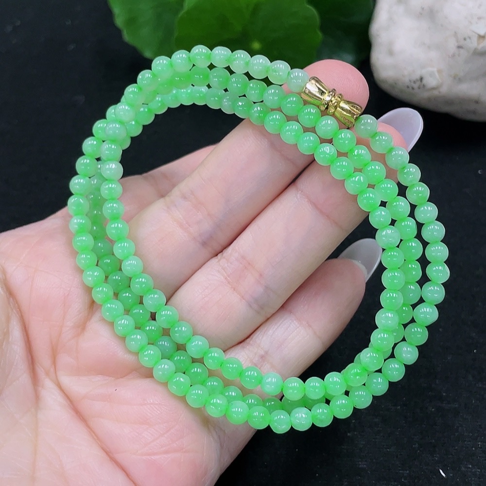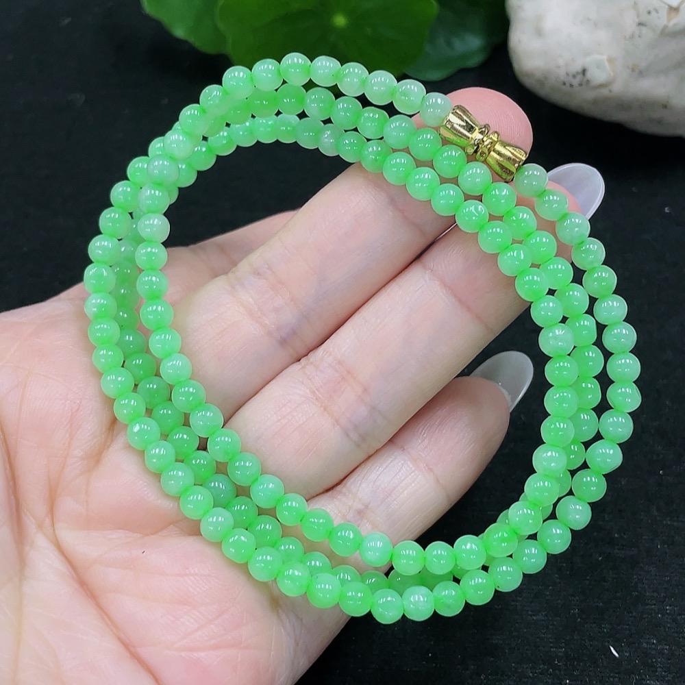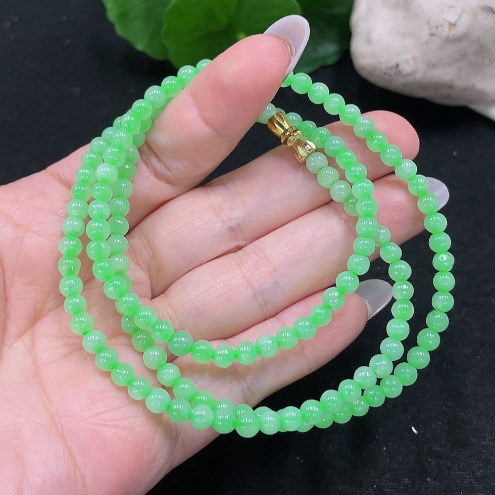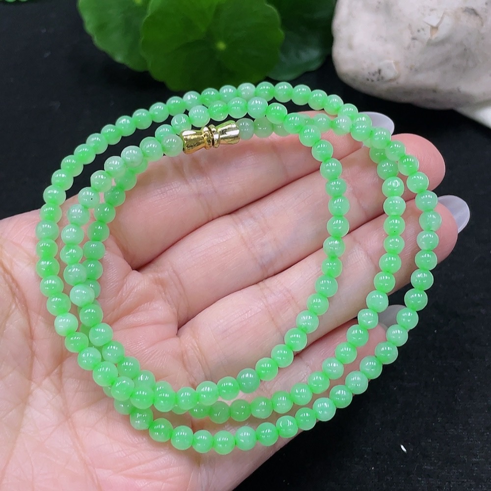 Jadeite Bead Necklace Approx. 4mm Total Weight 18.9g (Non-Gold Inlaid)