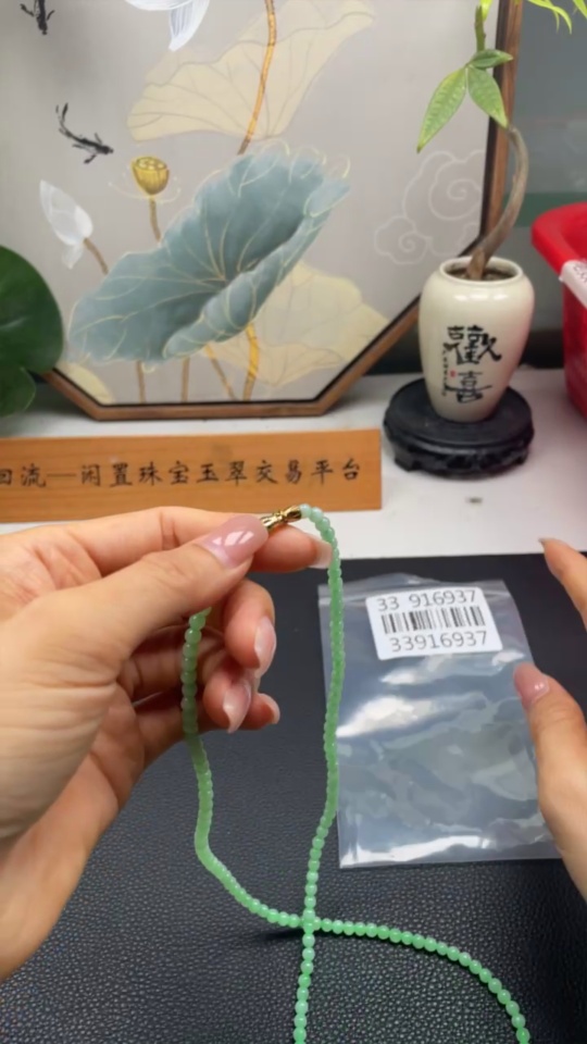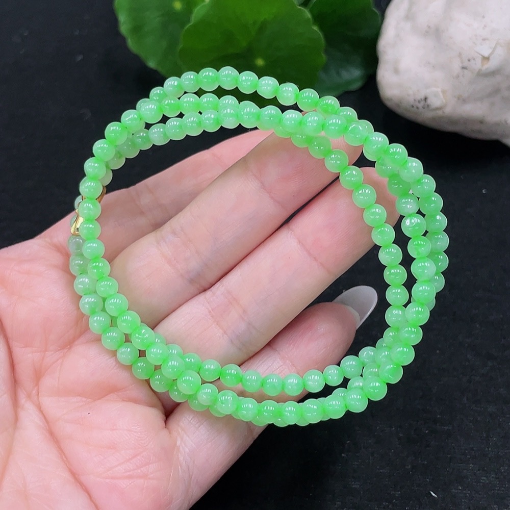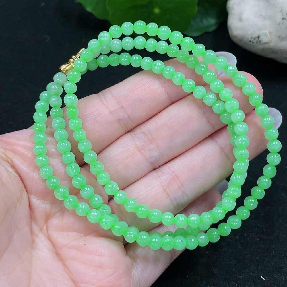 Jadeite Bead Necklace Approx. 4.3mm Total Weight 19.2g (Non-gold Inlaid)