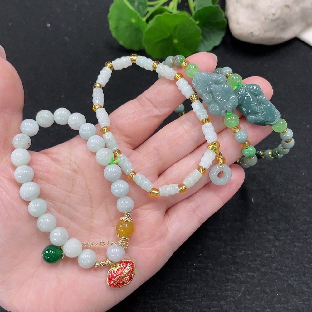 Jadeite Bracelet Sell as a Lot (Non-Gold Inlaid) (Beads Non-Grade A)
