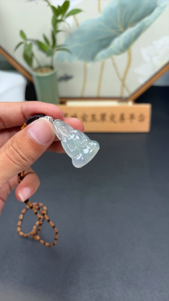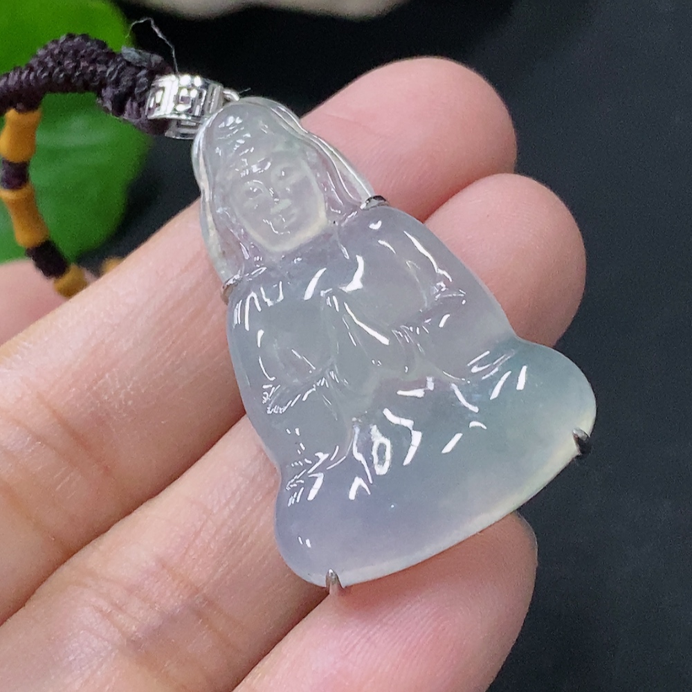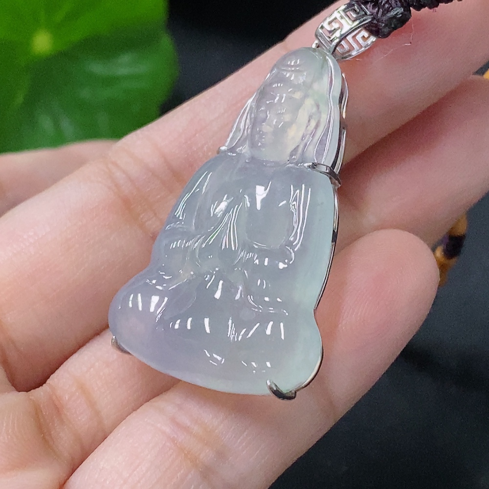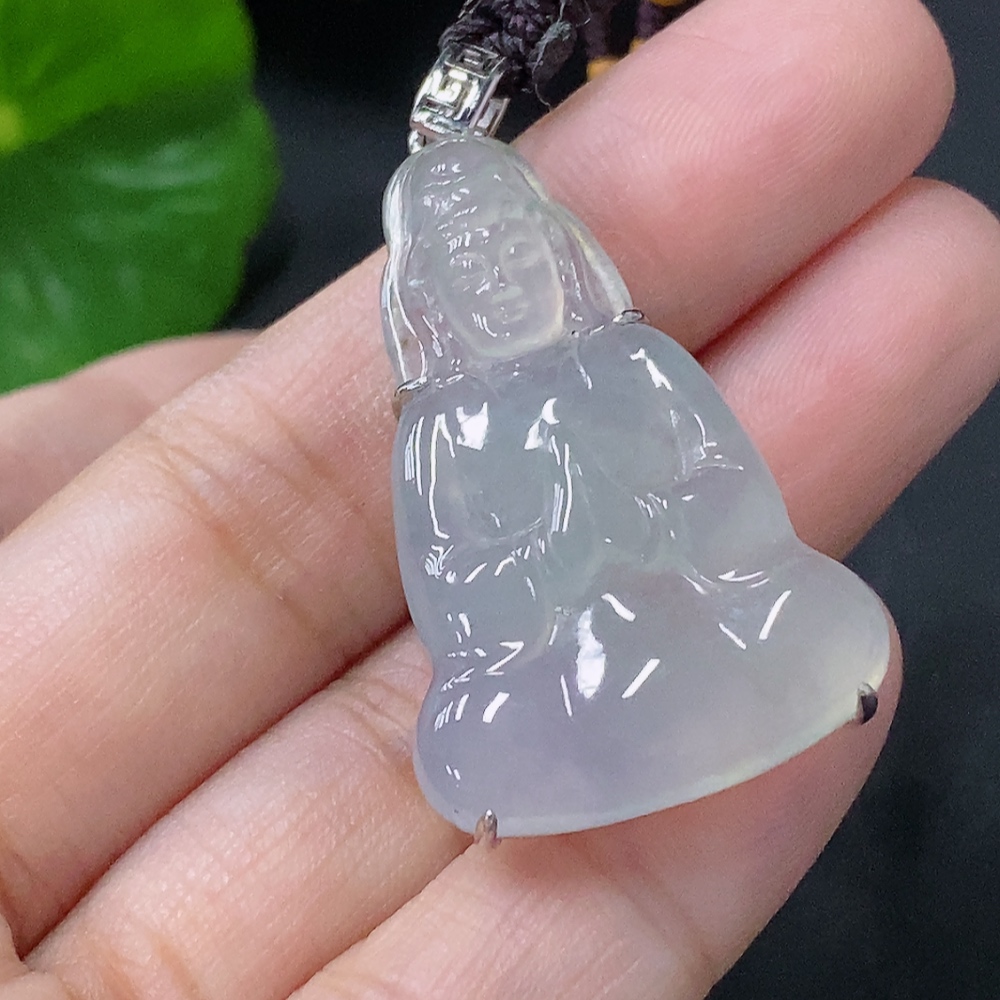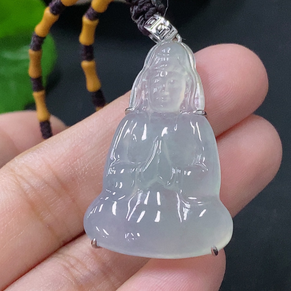 Jadeite Inlaid Guanyin Pendant 18k Total Weight Approx. 9.19g with String