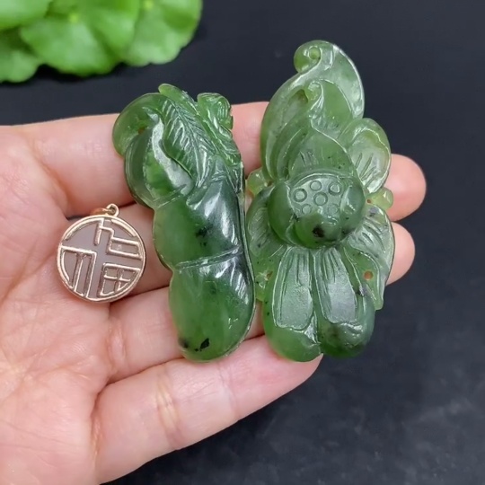 Hetian Jade Pendant Non-Gold Inlaid Total Weight Approx. 34.2g