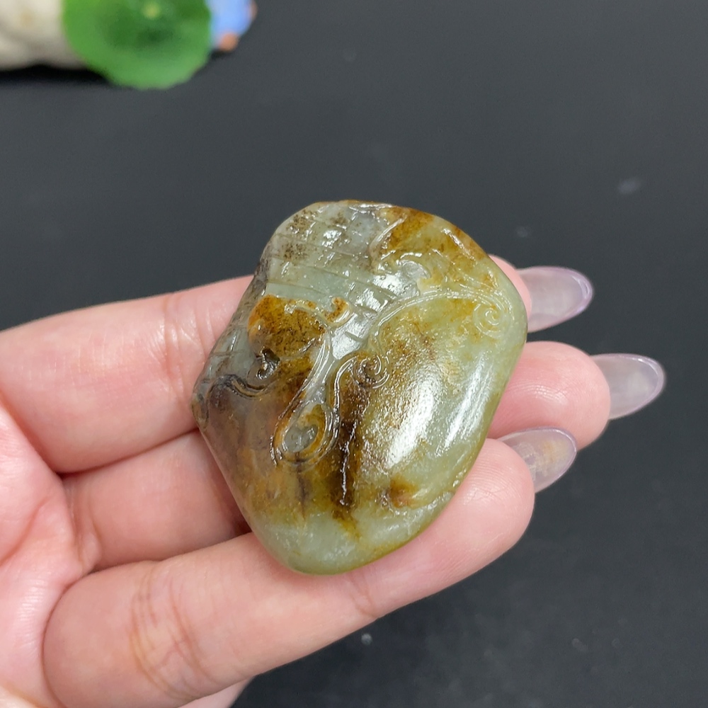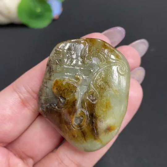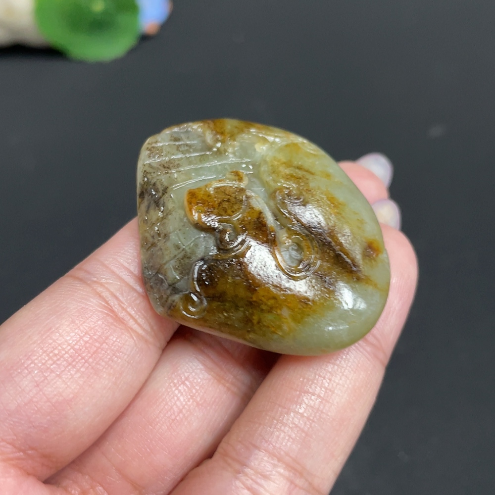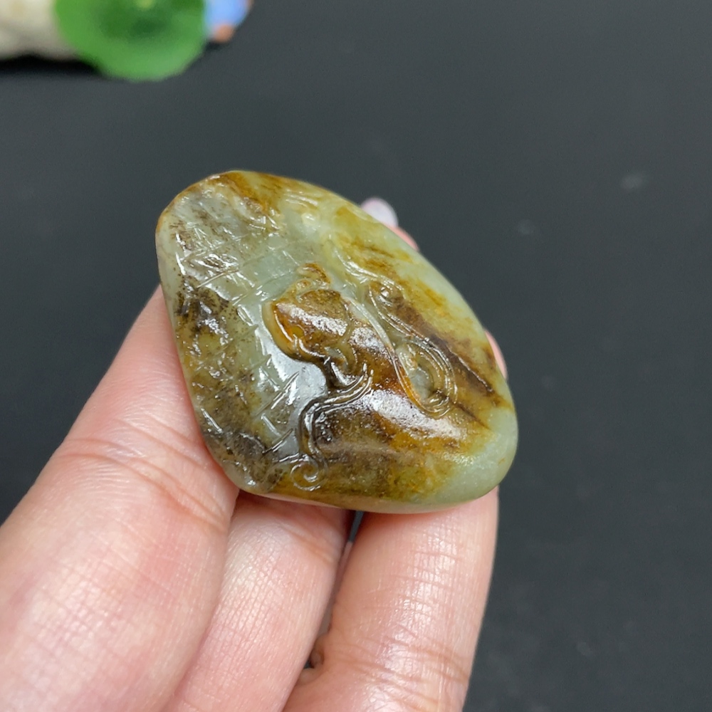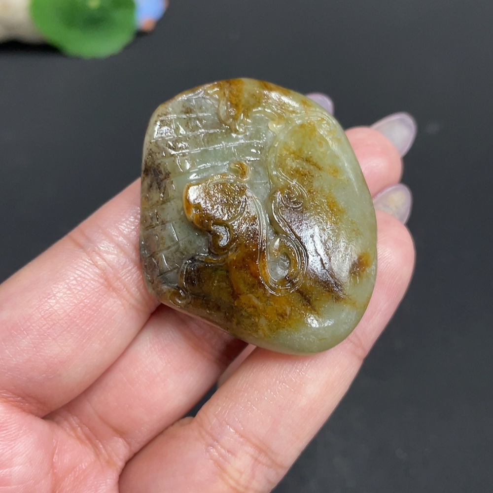 Hetian Jade Pendant, Antique-style Piece, Undetermined Skin Color Origin, Containing Other Mineral Components, Total Weight Approximately 35.2g