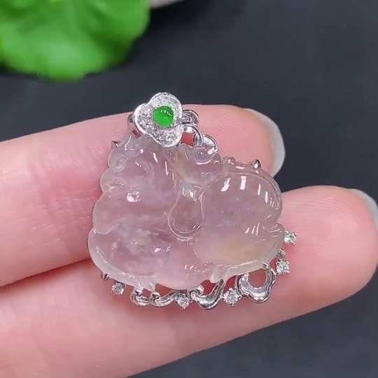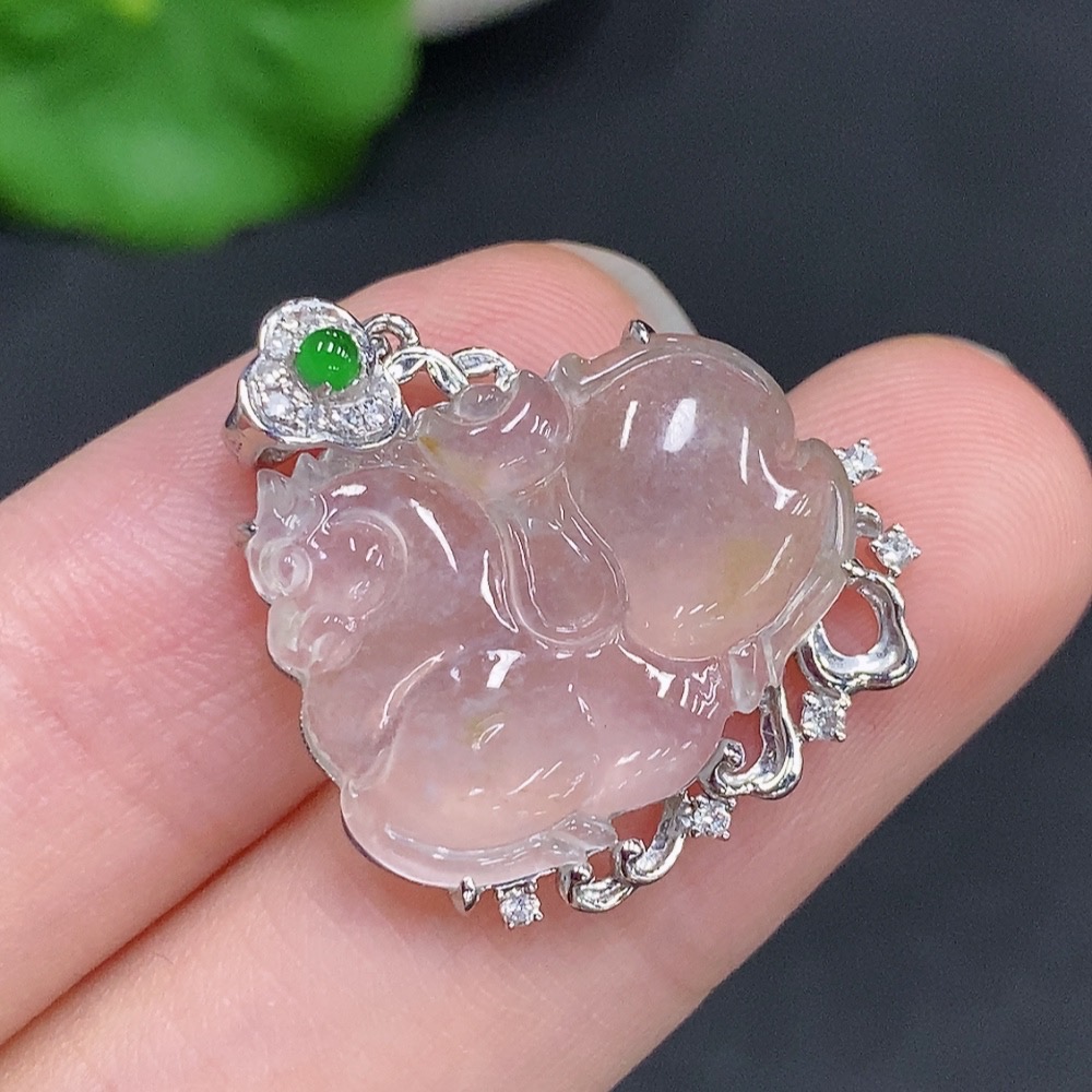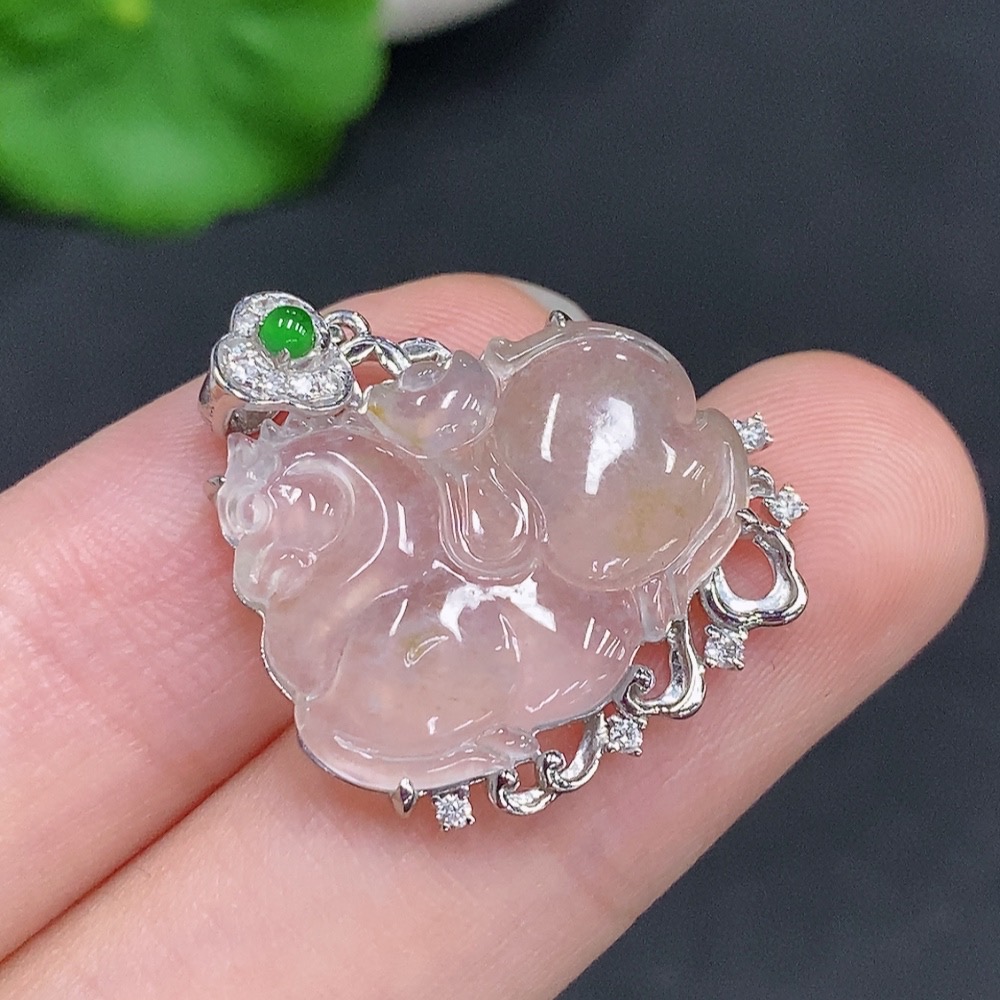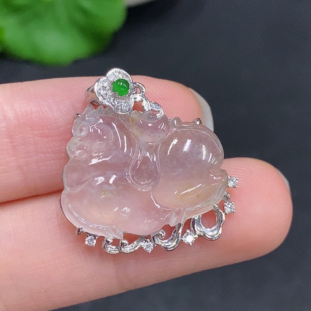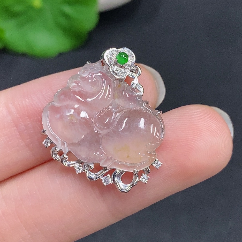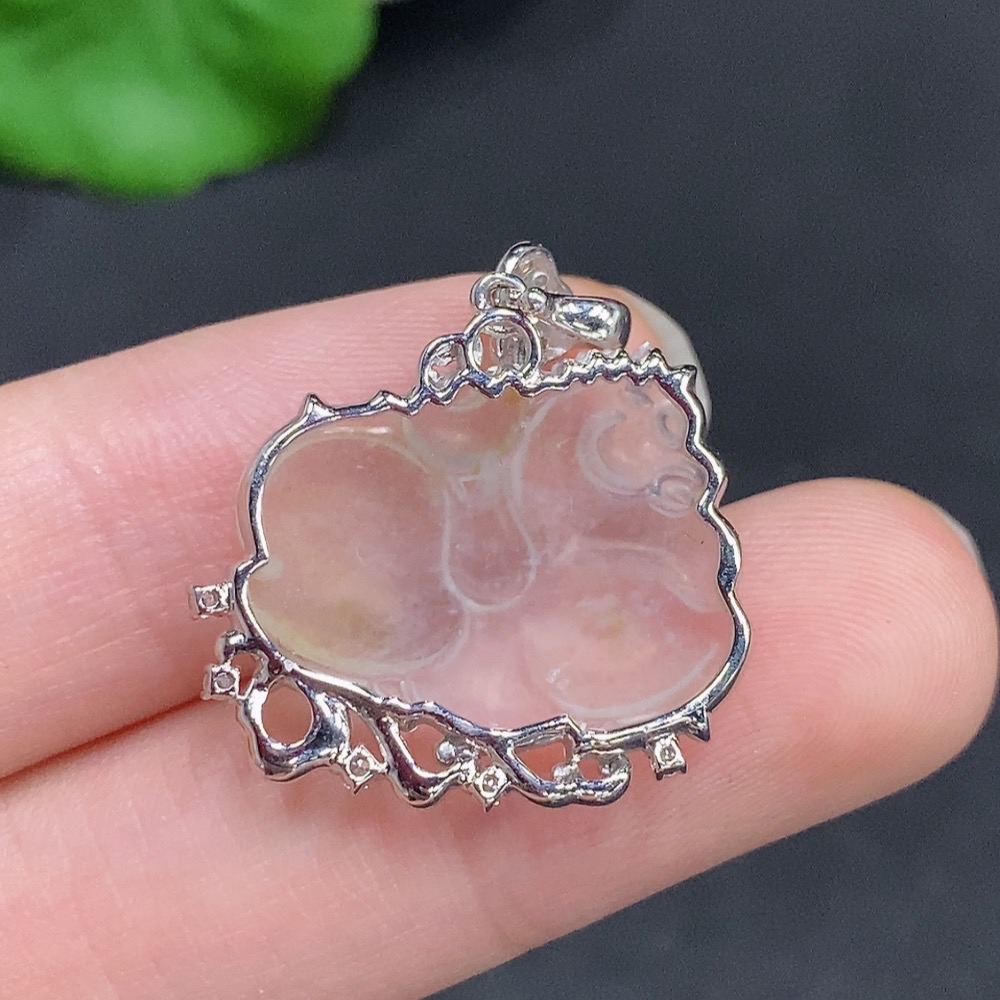 Jadeite Horse with Money Inlaid Pendant 18k Gold Total Weight Approx. 3g Diamond Accents