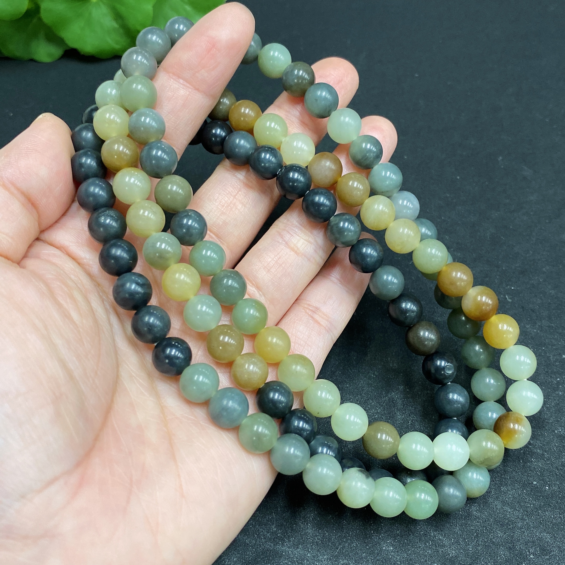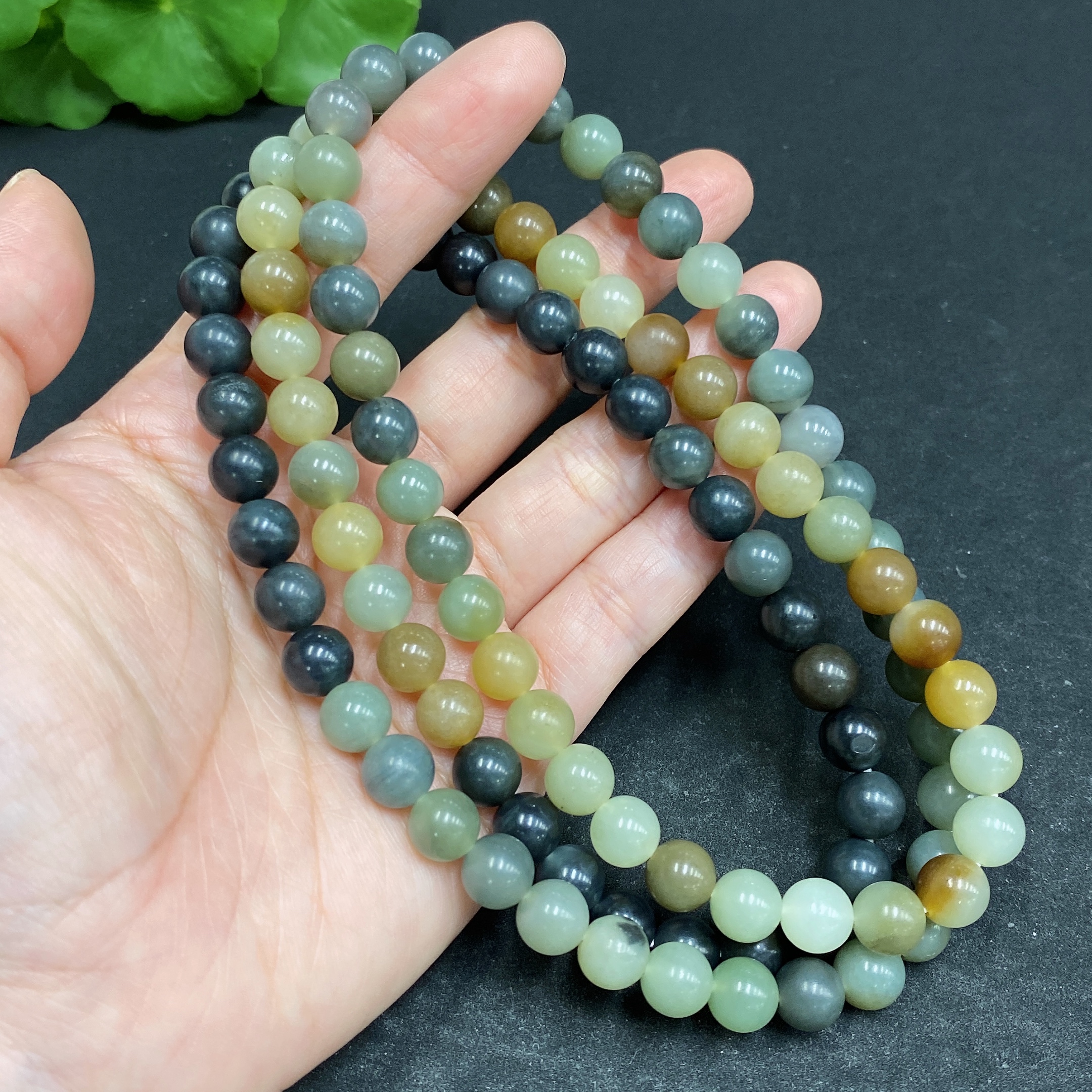 Hetian Jade Bead Necklace Approx.7.8mm Total Weight Approx.84.6g