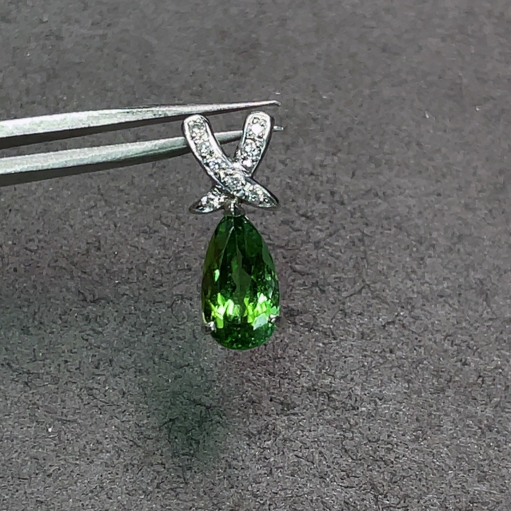 Tourmaline Pendant with Pt900 and Diamond Accents, Total Weight Approx. 2.39g, GIC Certificate: Lemon Color Vb Luster Vivid Yellowish Green 2.72ct (by Hallmark)