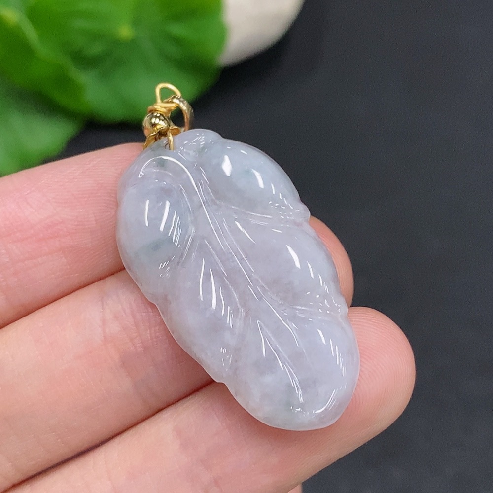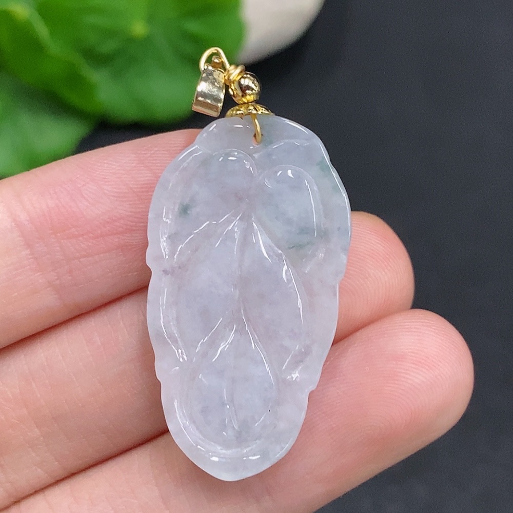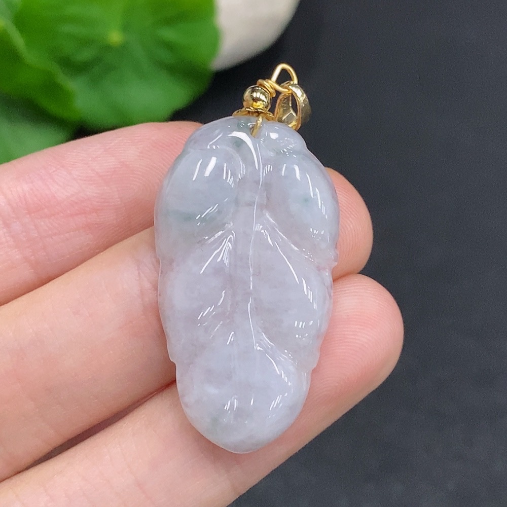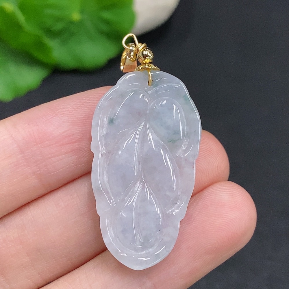 Jadeite Leaf Pendant Non-Gold Inlaid Total Weight About 5.2g