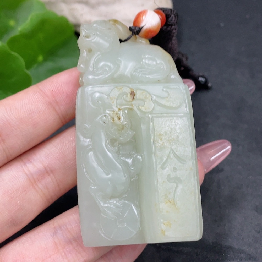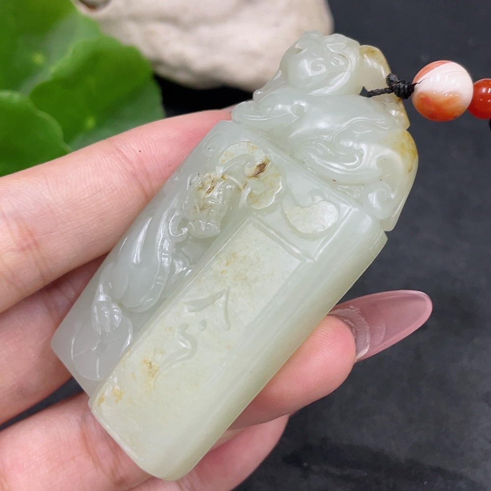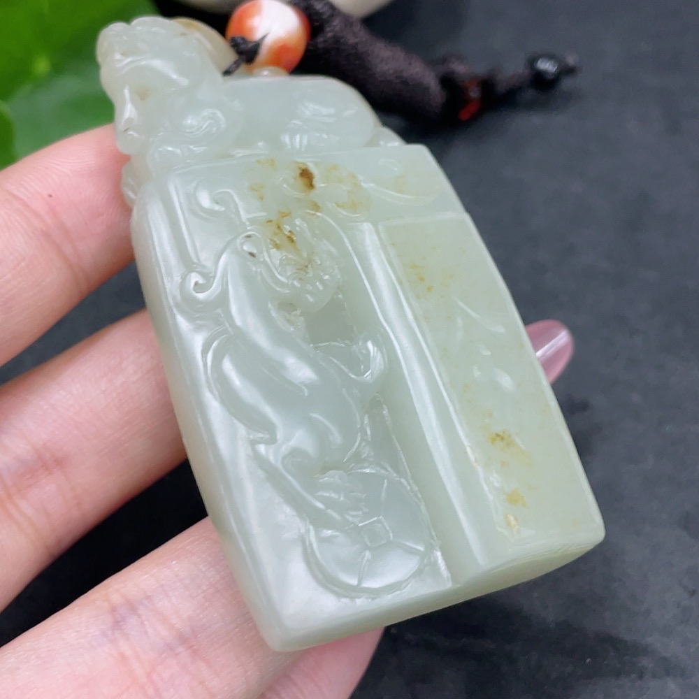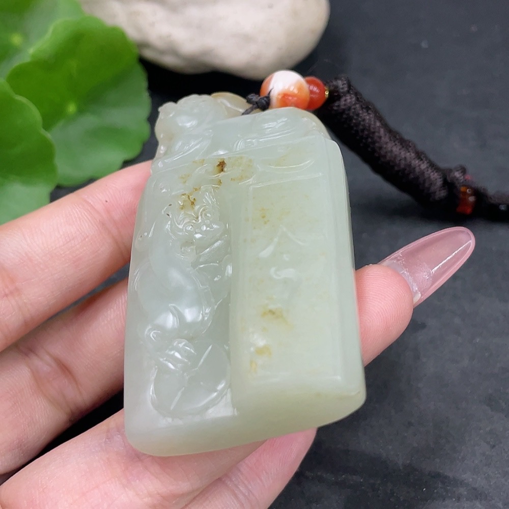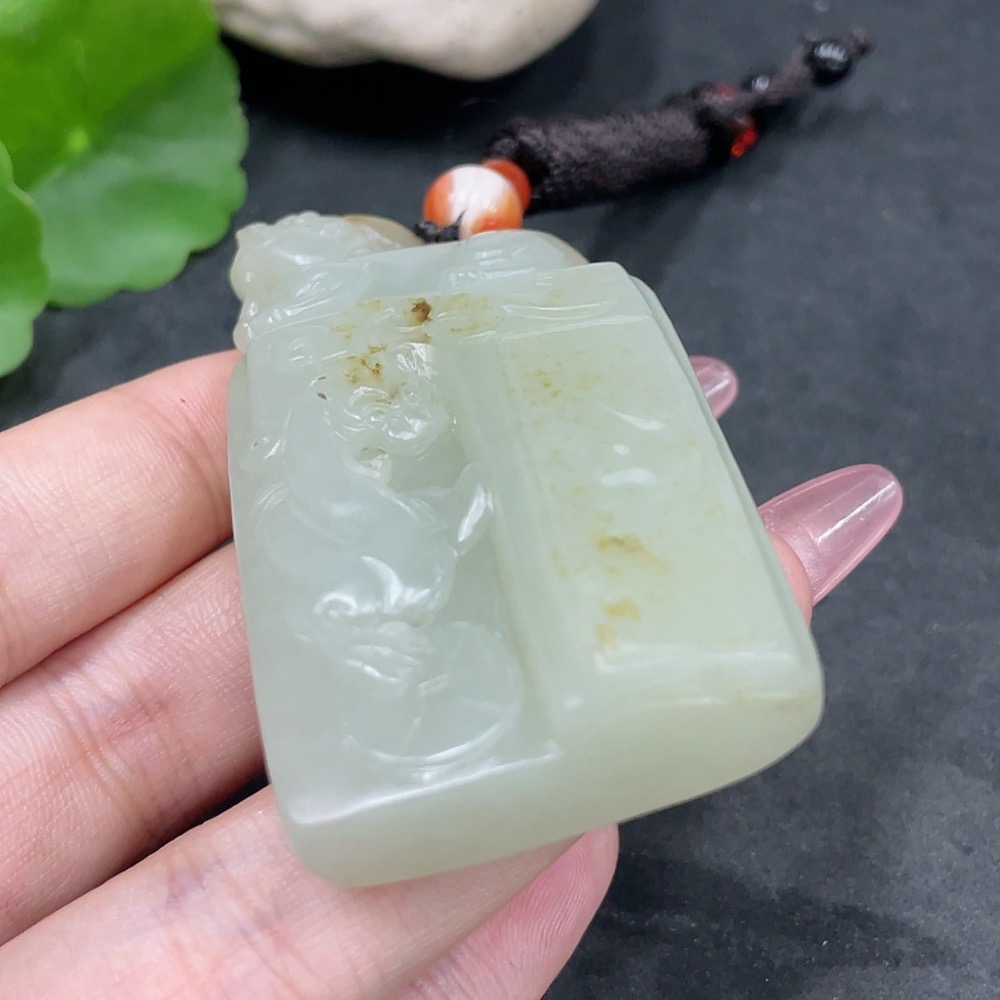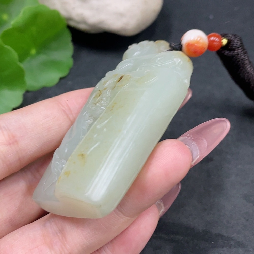 Hetian Jade Pendant Antique Style Undetermined Skin Color Origin Total Weight (including rope) Approx. 74.3g