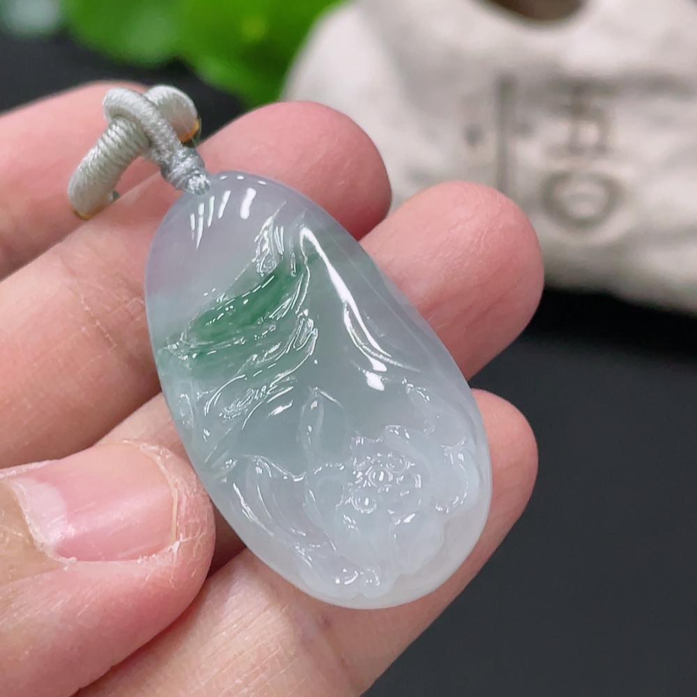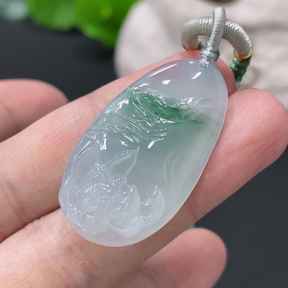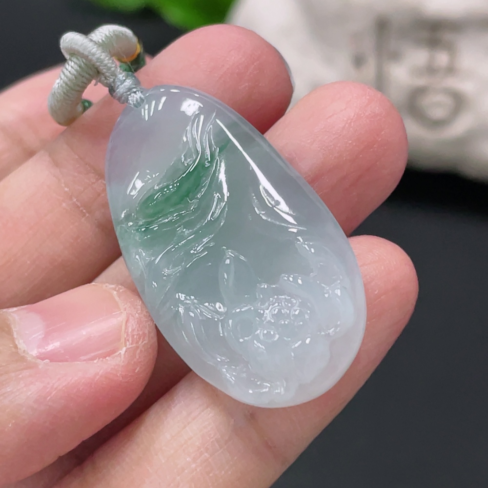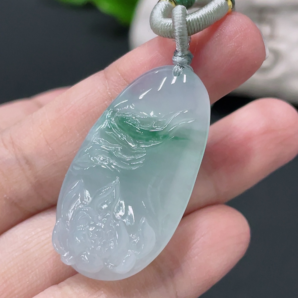 Jadeite Lotus and Fish Pendant, Total Weight Approx. 10.57g