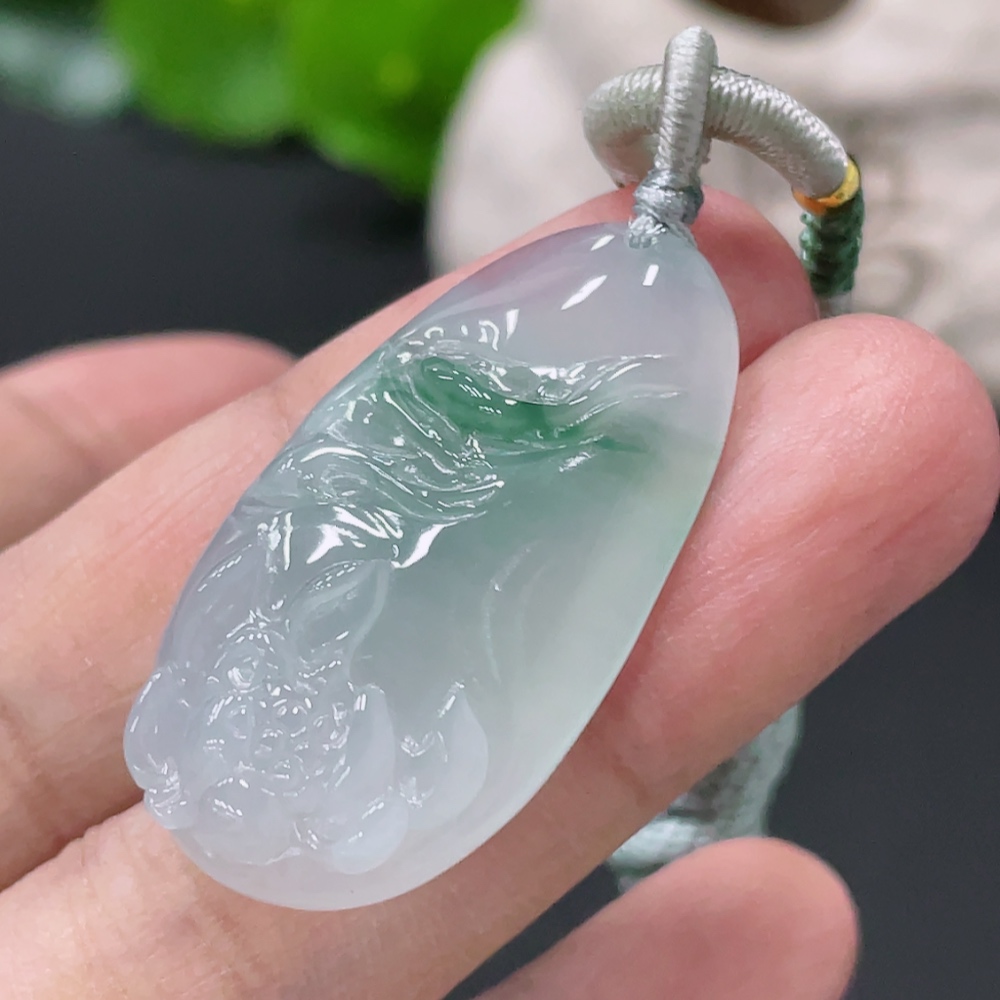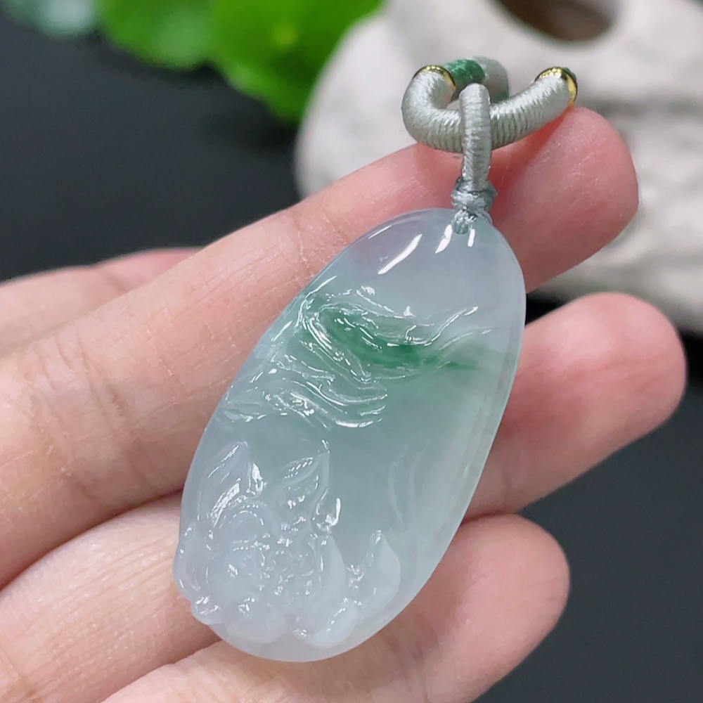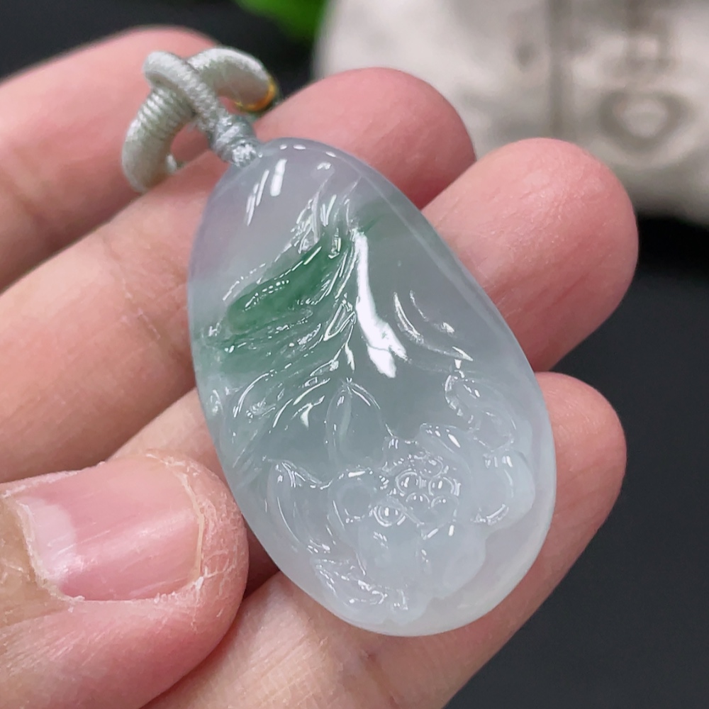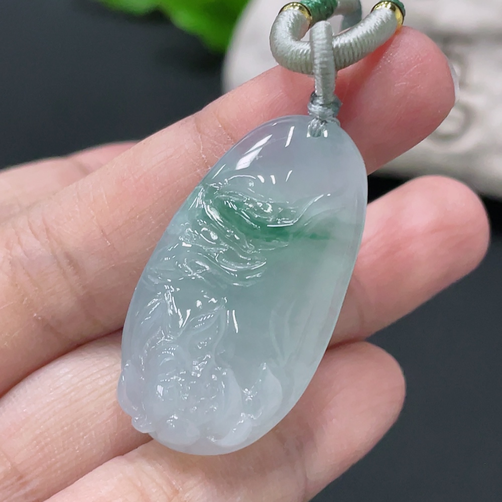 Jadeite Lotus and Fish Pendant, Total Weight Approx. 10.57g