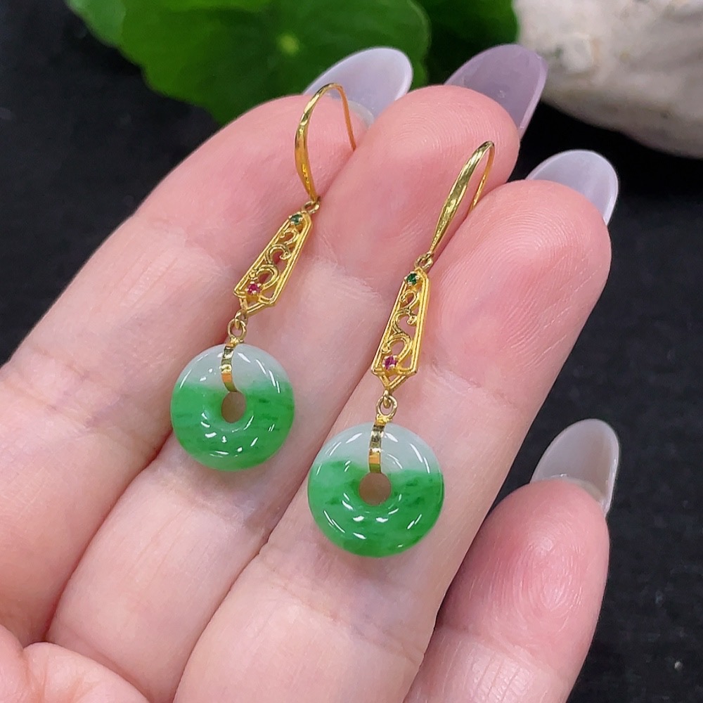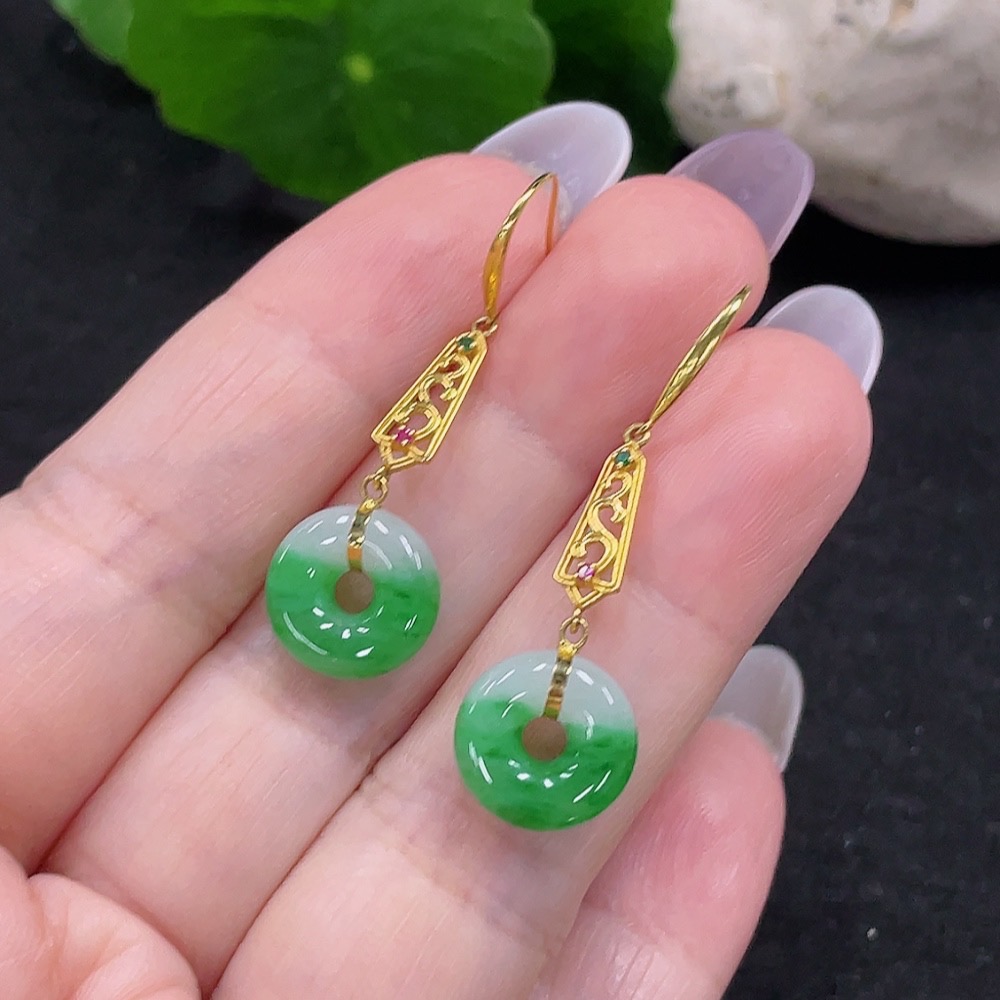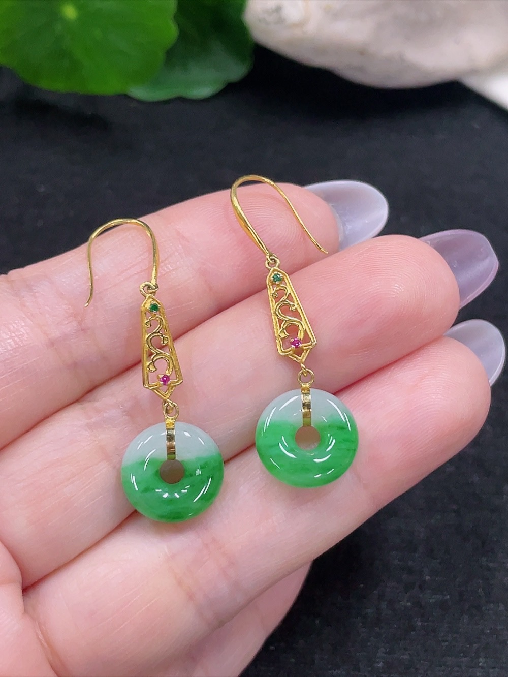 Jadeite earrings pair set in 18K gold, total weight approximately 2.8g
