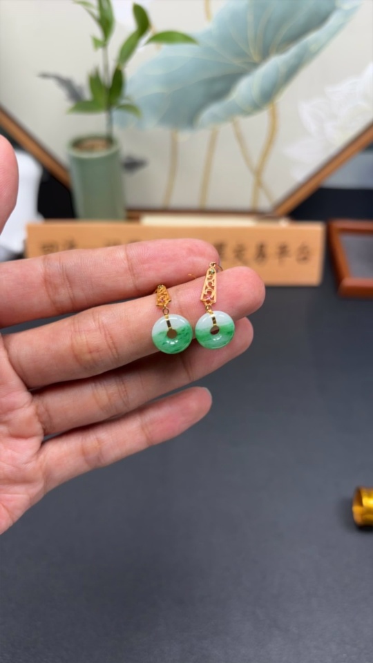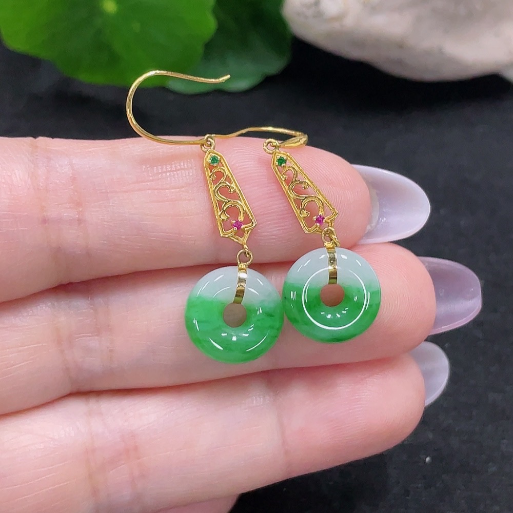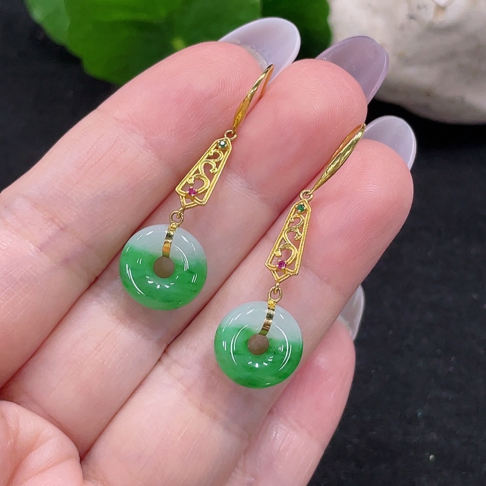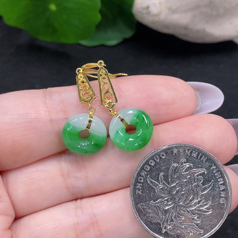 Jadeite earrings pair set in 18K gold, total weight approximately 2.8g