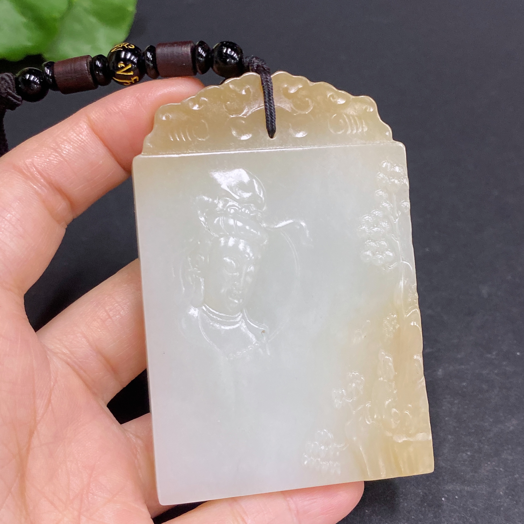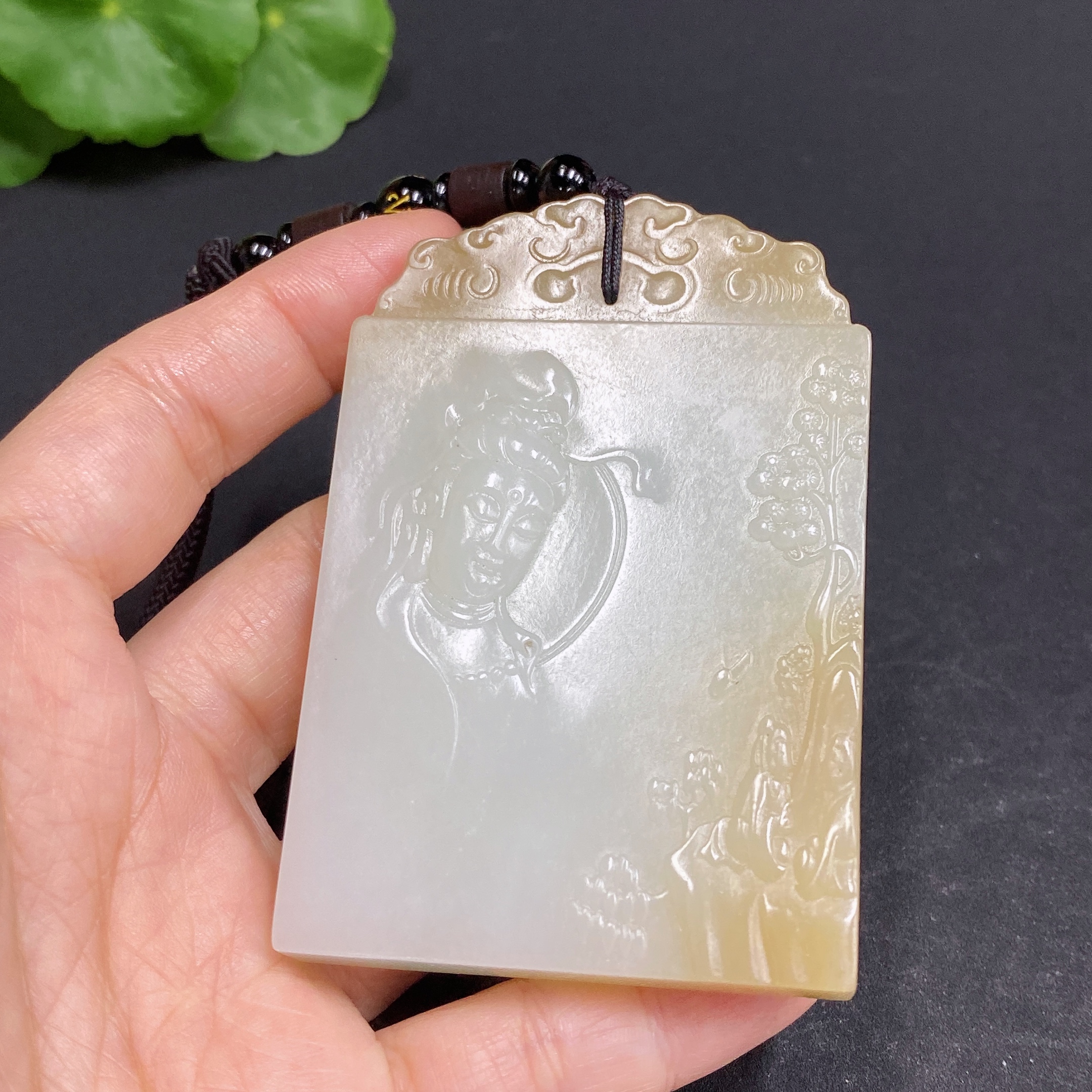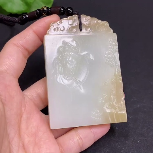 Hetian Jade Pendant Guanyin Total Weight Approx. (Including Rope) 104.5g