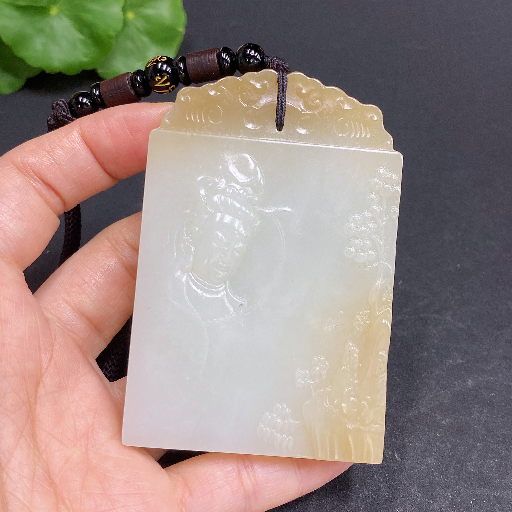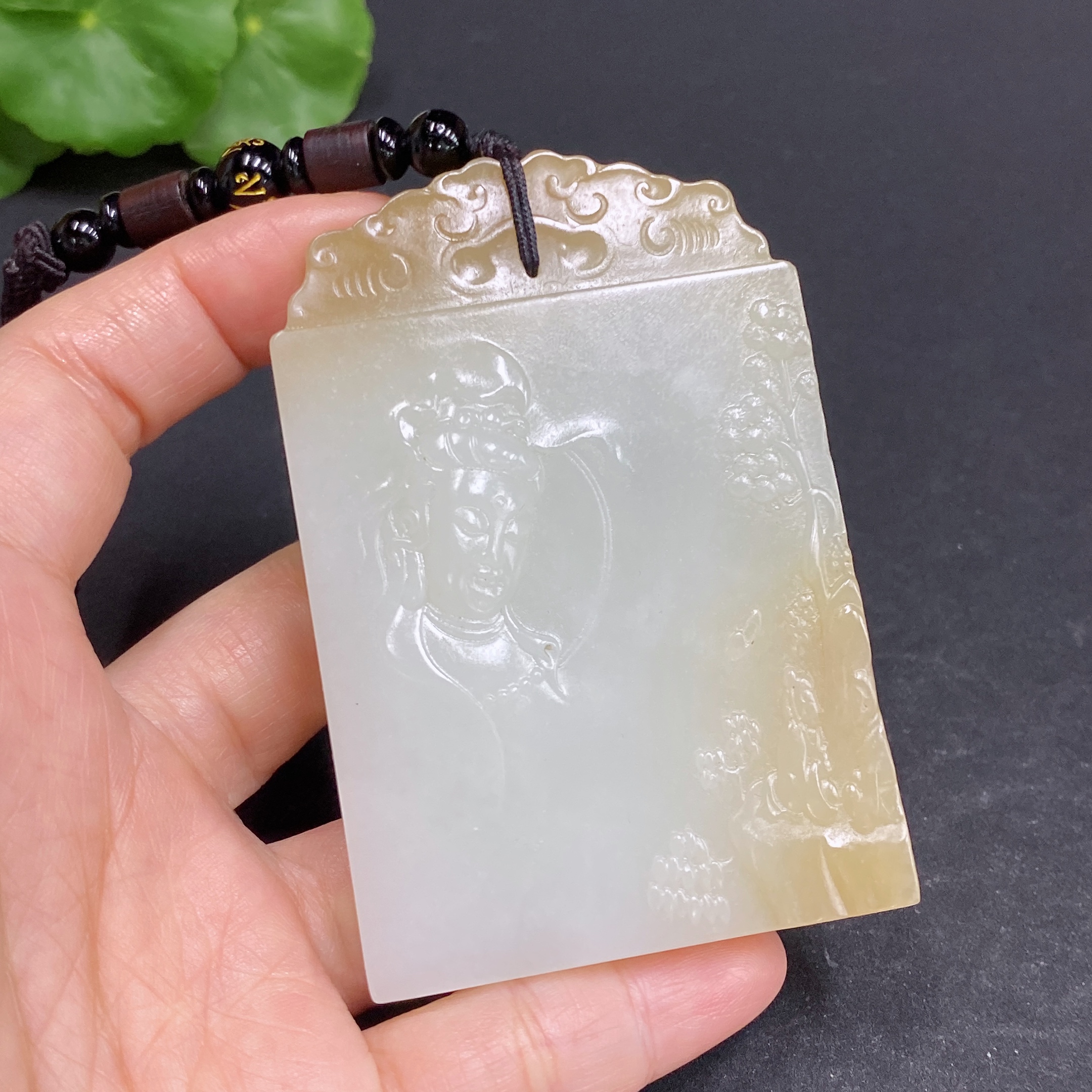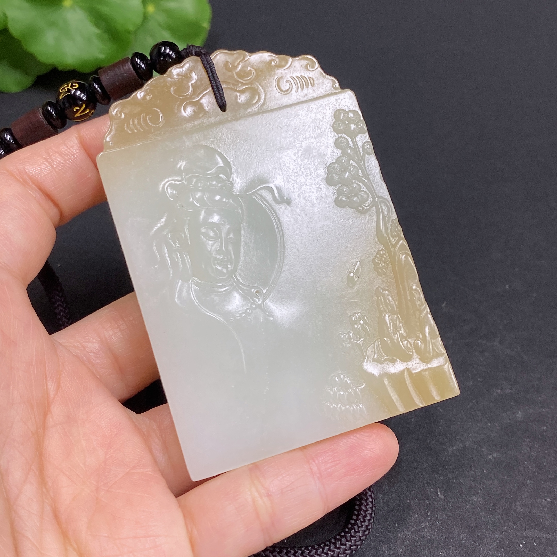 Hetian Jade Pendant Guanyin Total Weight Approx. (Including Rope) 104.5g